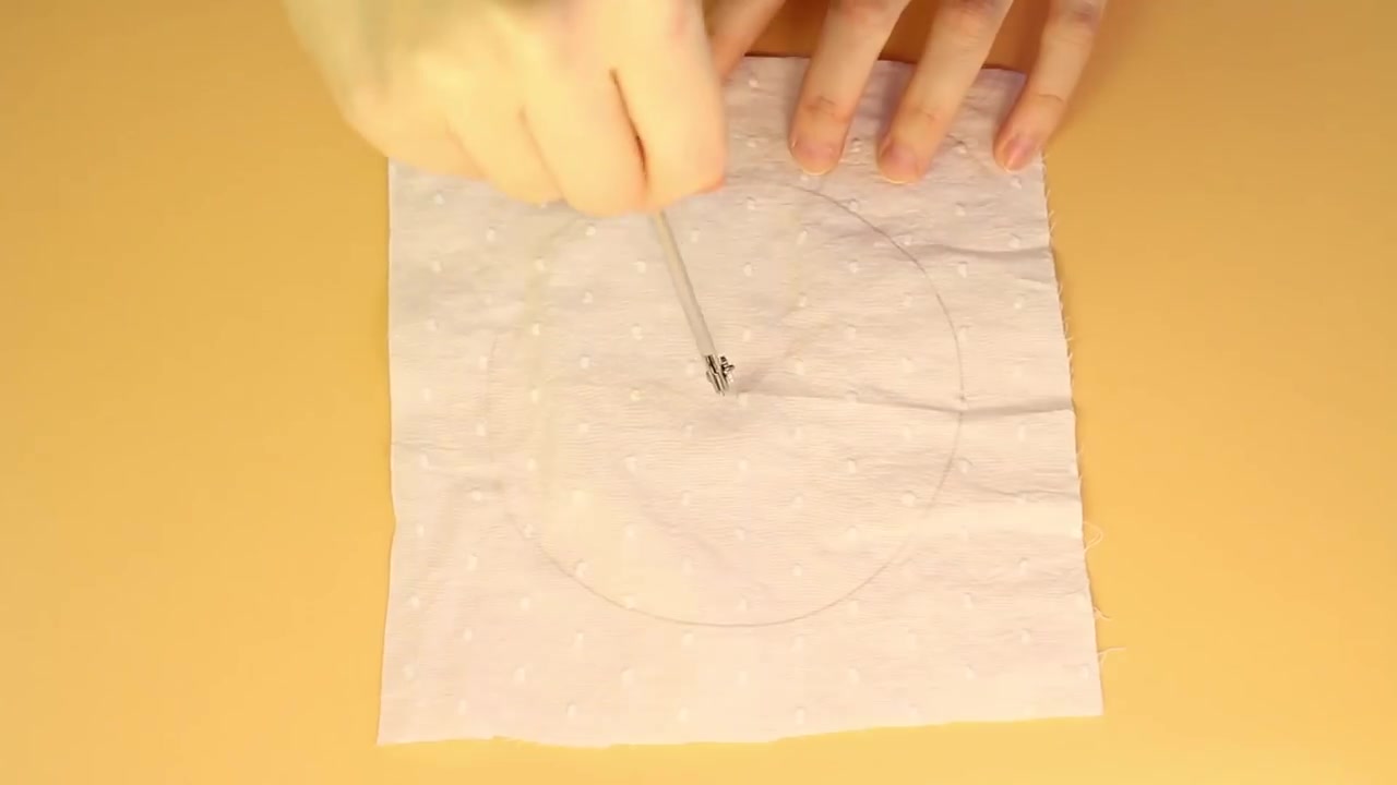Usando uma bússola, desenhe nas abas de 5 círculos de diferentes diâmetros. Corte a circunferência com uma tesoura.