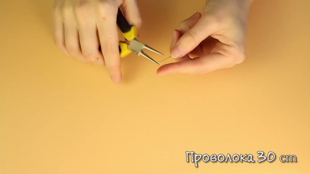 Agora pegue o arame, vamos precisar de 30 cm, na ponta do fio, torça o anel para que os espaços vazios não escorreguem.