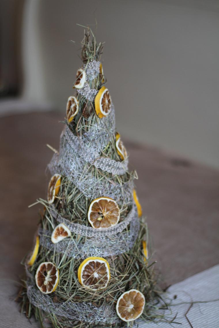 Pau de canela é envolvido com fio no centro várias vezes. Amarre um pequeno arco, cola na árvore de Natal. Nós também agimos com anis estrela e limão seco.