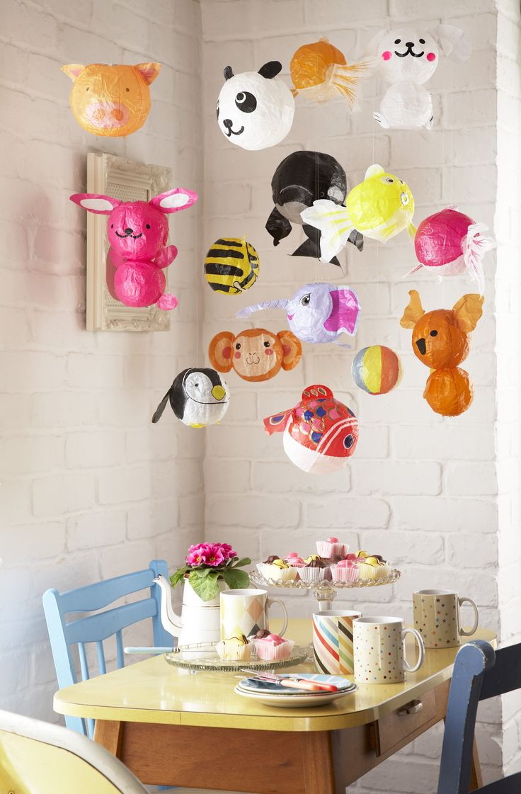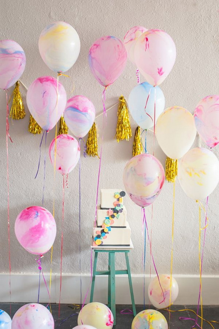 - Use balões inflados com hélio, ou fixe os usuais sob o teto, caso contrário, espalhados pela sala, eles ocuparão muito espaço.