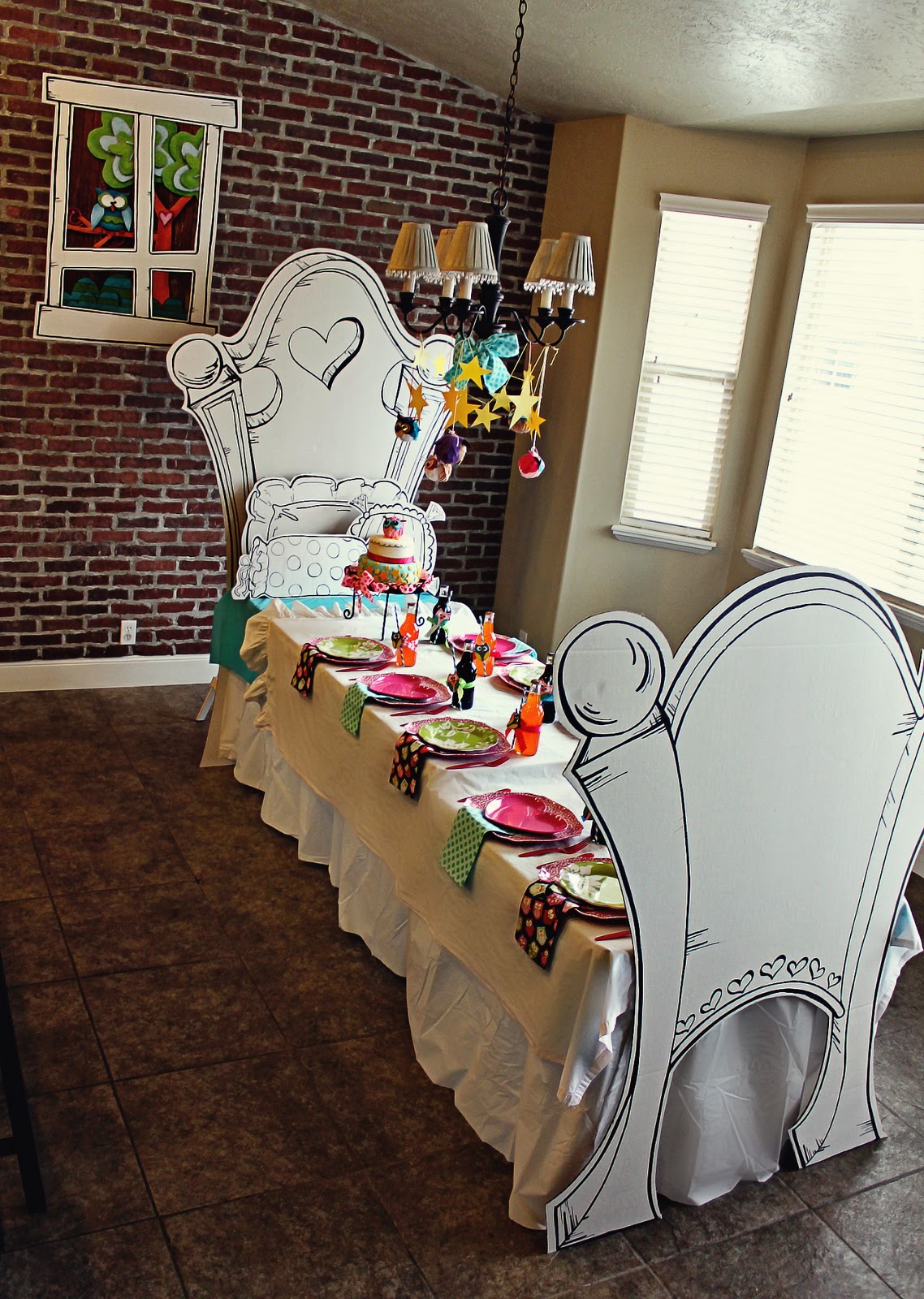 - A partir da sala terá que remover ou decorar itens que não coincidam com o assunto. Por exemplo, se você tiver um banquete de Cinderela, os pôsteres na parede com heróis de quadrinhos ou filmes modernos estragarão completamente o visual.