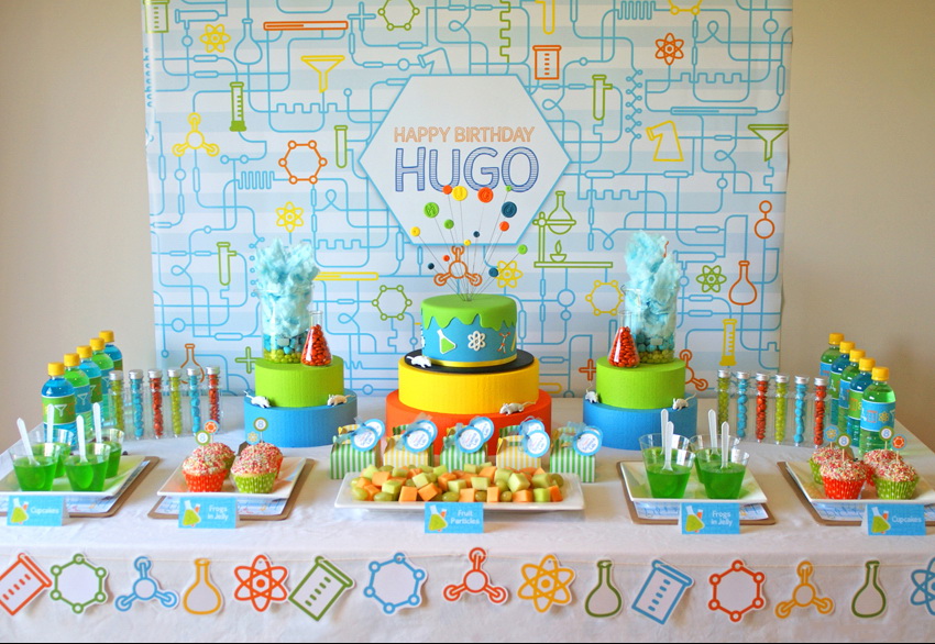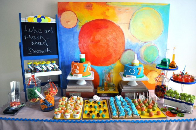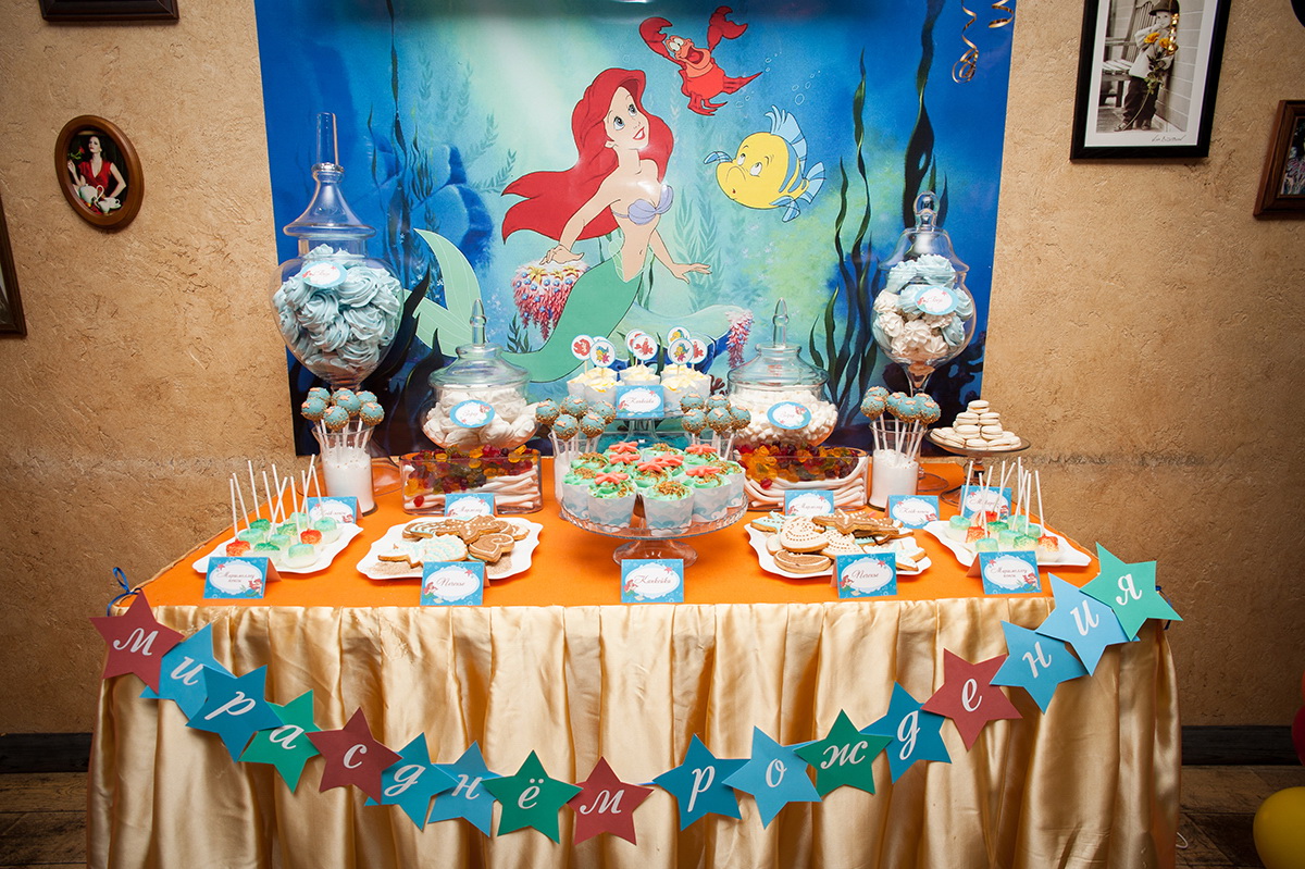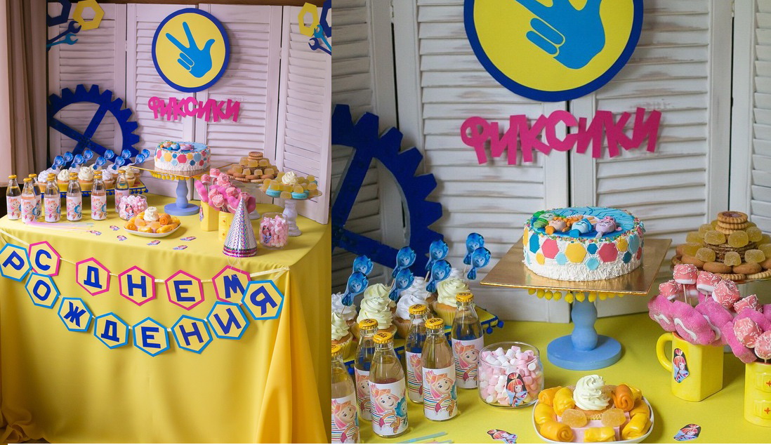 Faça uma mesa para crianças separada, que será doces, bebidas, frutas, será conveniente se as crianças no processo de jogos quiserem recarregar e comer. Decore a mesa com fotos temáticas, esquematize histórias em quadrinhos ou livros para colorir.