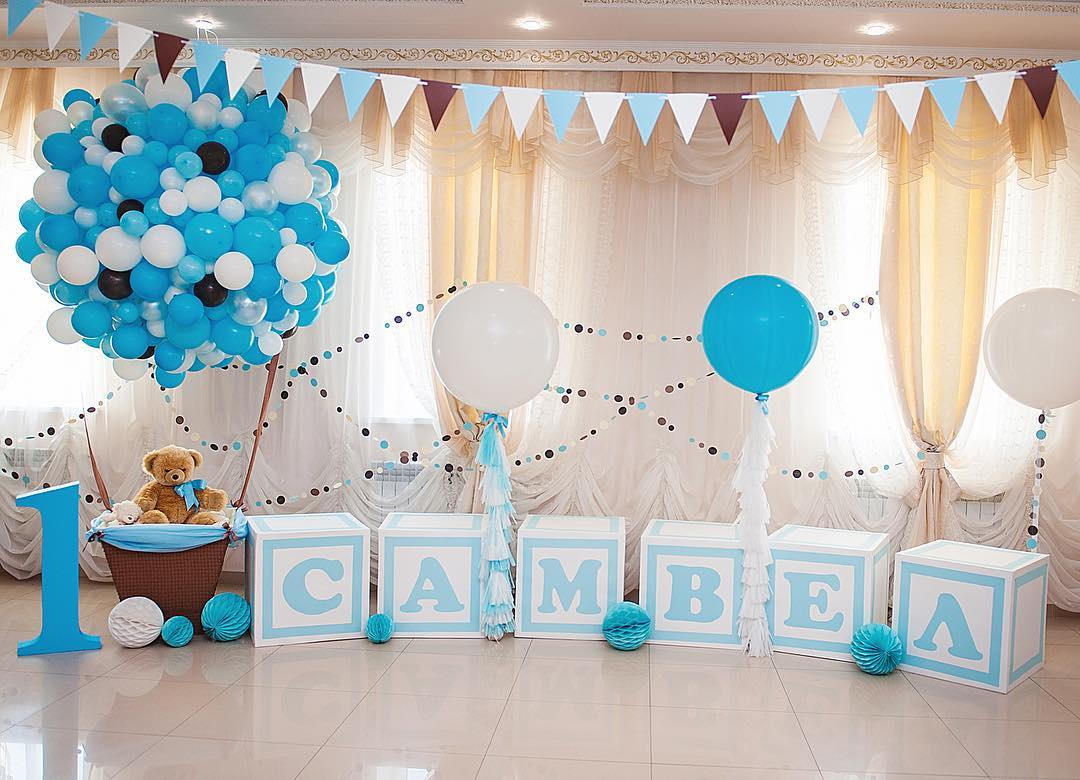 Esta parte terá que alocar a maior área. Durante a celebração para as crianças organizam concursos, e na maioria das vezes eles são bastante ativos. Quanto mais crianças presentes no festival, mais espaço será necessário para os jogos. Se o bebê for pequeno, organize essa área na sala de estar.