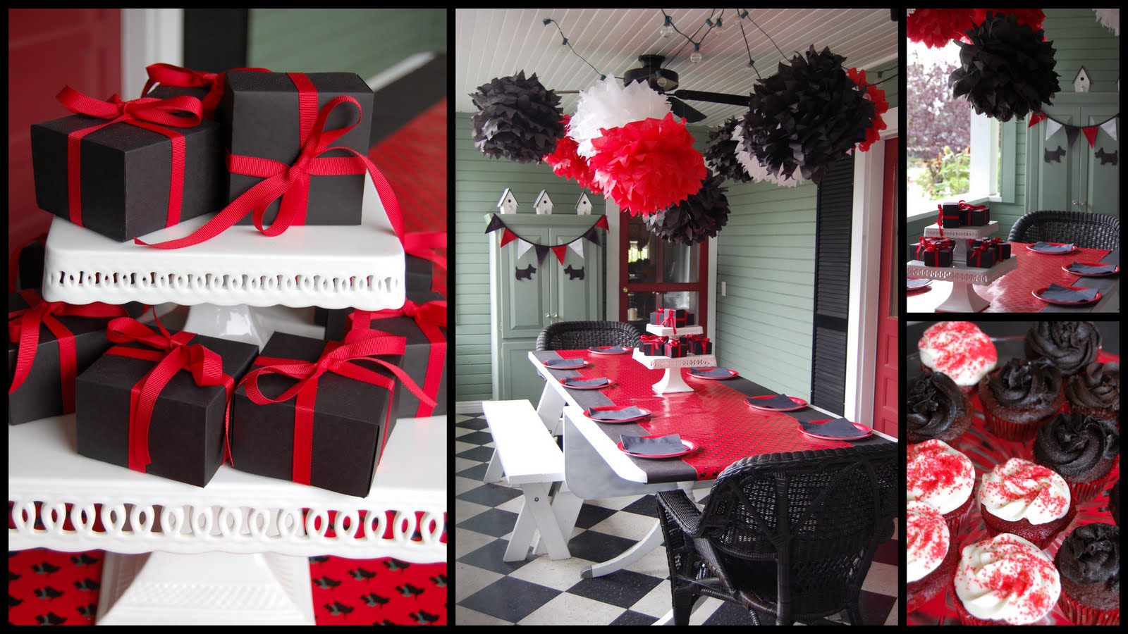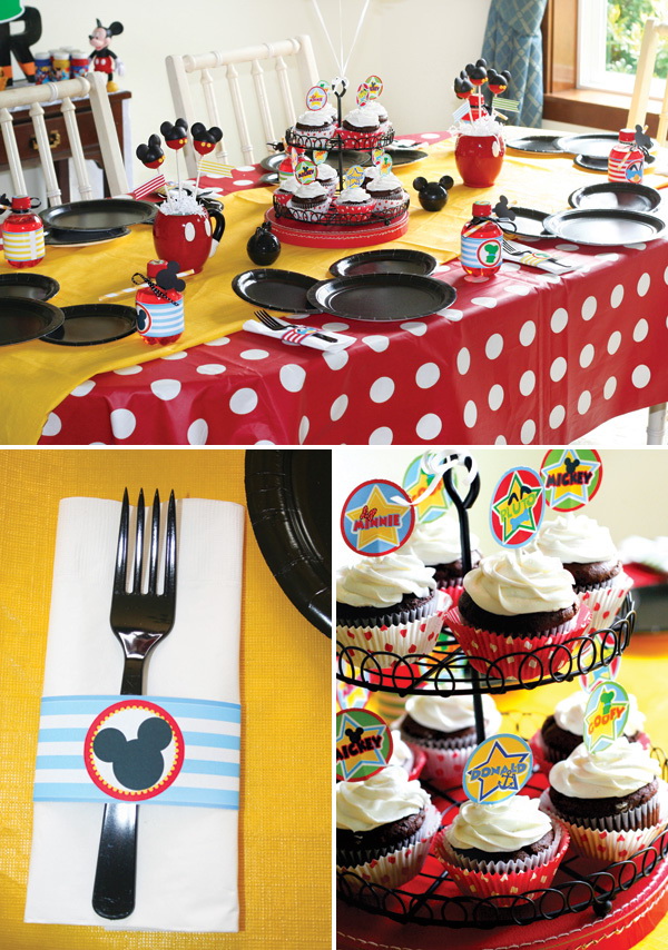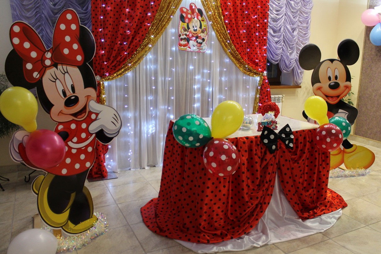 - Toalha de mesa em ervilhas pretas vermelhas irá lembrá-lo do Mickey Mouse.