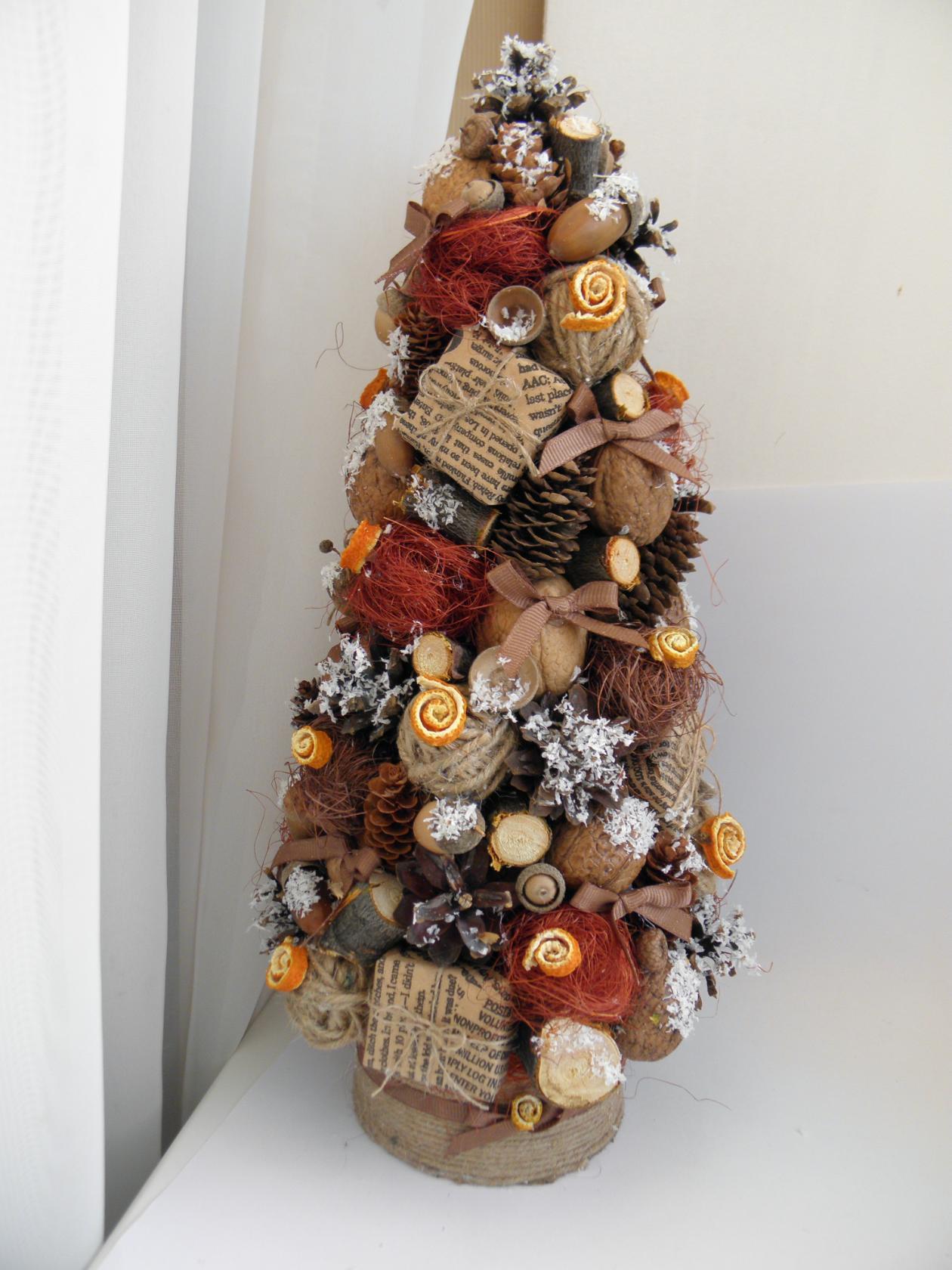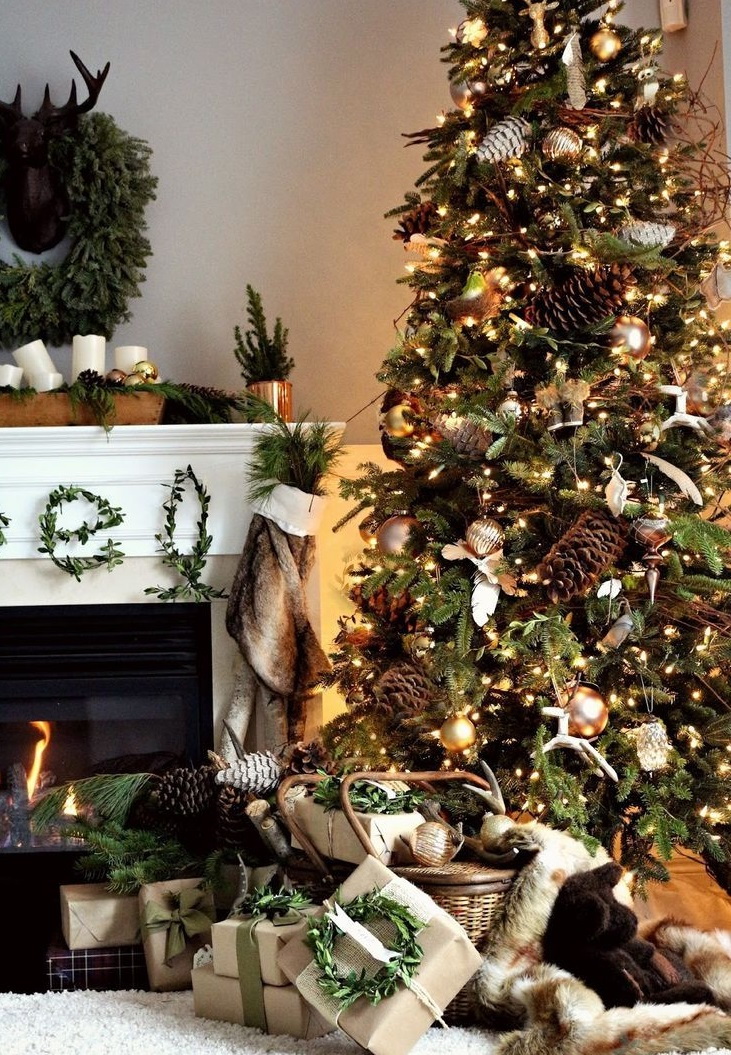 Neste caso, materiais de origem exclusivamente natural são instalados no pinheiro de Ano Novo. Alguns fazem sem a própria árvore de Natal. É o suficiente para levar materiais naturais e imitar madeira deles aderindo à simplicidade e paleta de cores calmas.