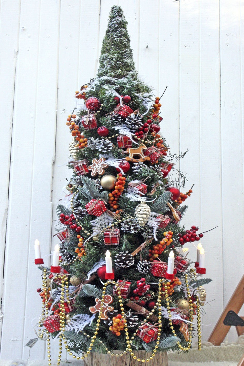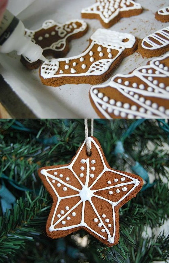 Frutos secos, conchas, galhos, bagas, figuras de massa e outros alimentos são usados como acessórios.