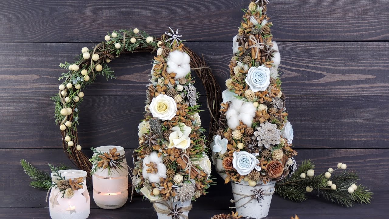 A parte inferior é decorada com enfeites e os restantes brinquedos, tecido branco pode ser usado para simular neve. Também aqui você pode colocar as figuras de Papai Noel e Snow Maiden, e ao lado da embalagem com presentes de Natal.