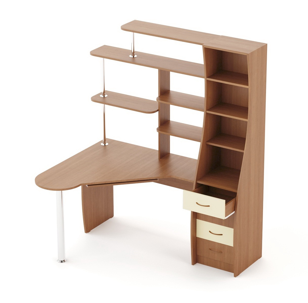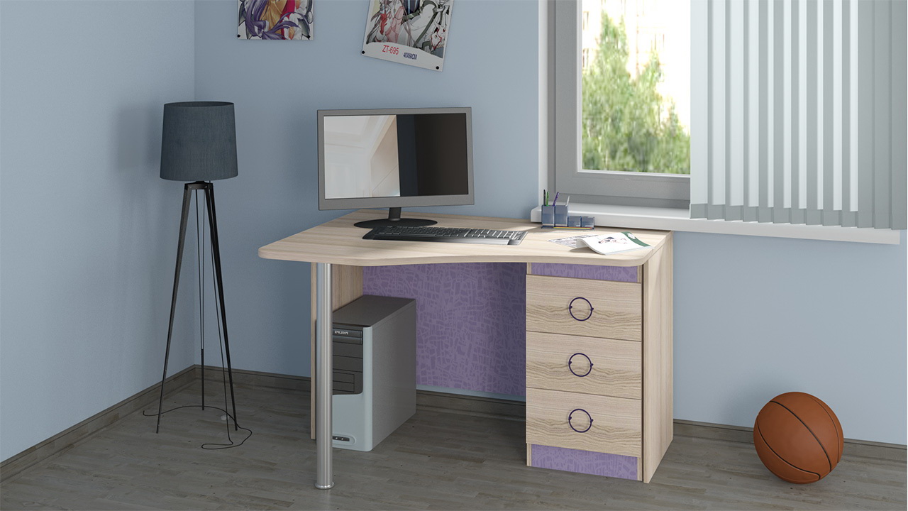 - Ângulo reto com arredondamento - mas este é um dos tipos mais populares. Ela difere apenas no fato de que na junção de duas mesas retangulares há um conveniente arredondamento, o que permite uma melhor posição no local de trabalho.