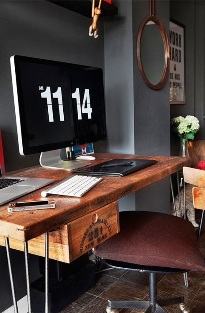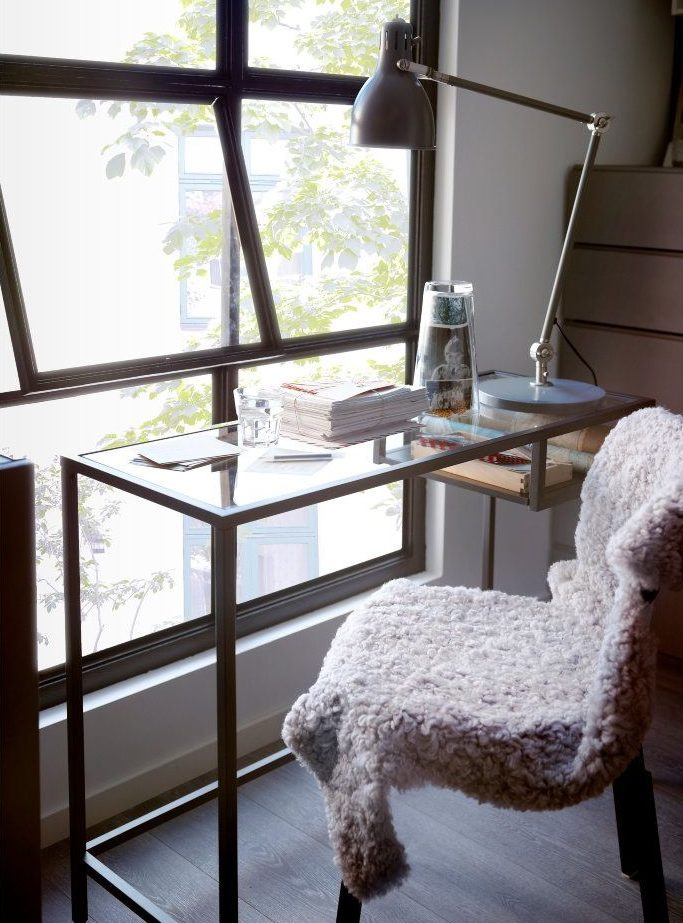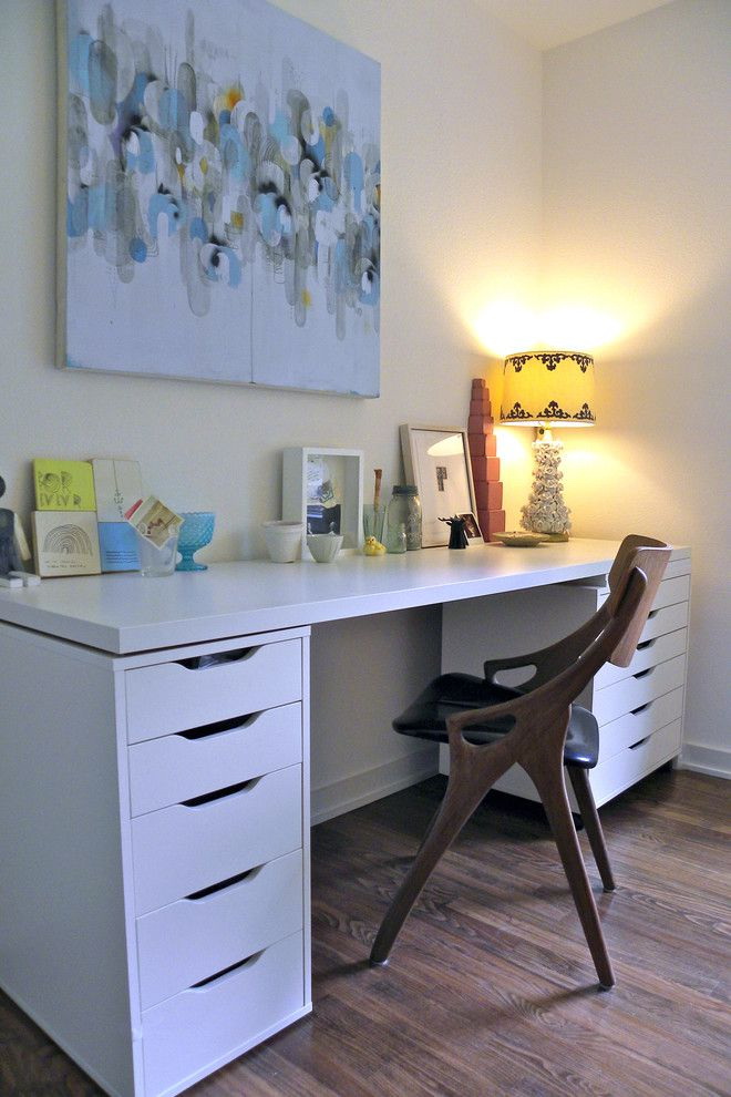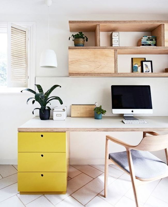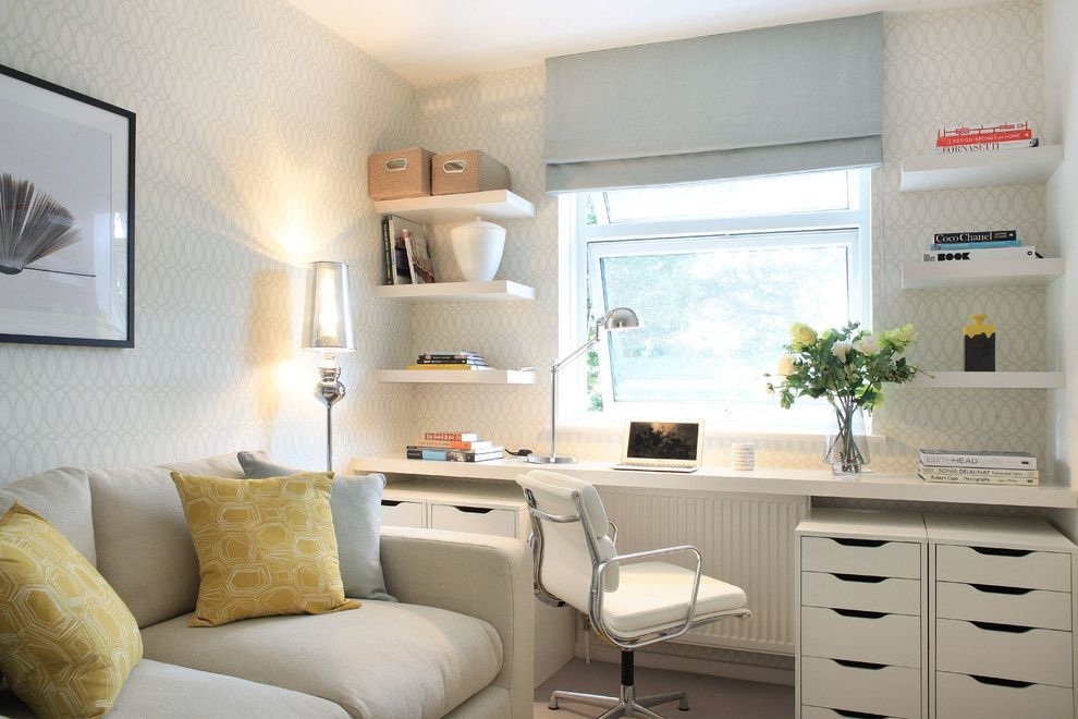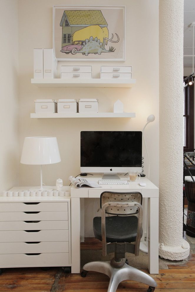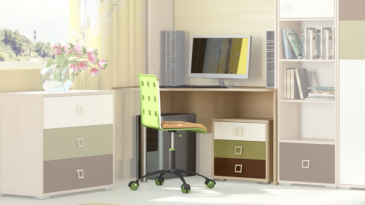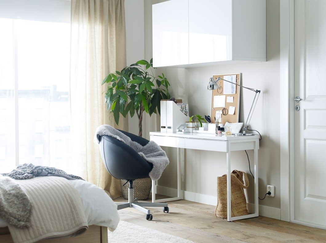 Opção para escritório ou escritório no apartamento, que também é adequado para o quarto do aluno e do aluno. A visão do computador não é adequada para nenhum estilo de interior, mas é a mais versátil em um apartamento moderno da cidade.