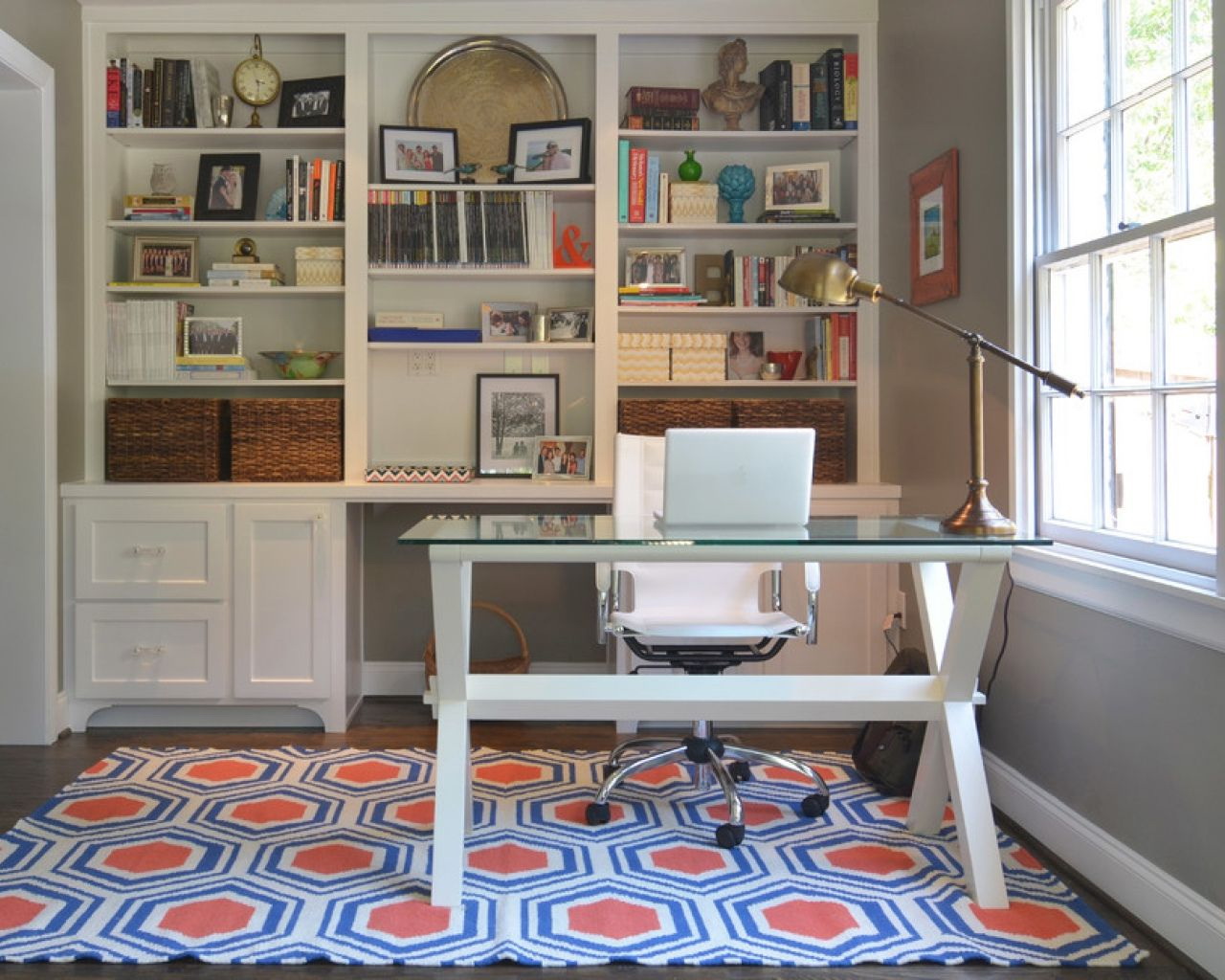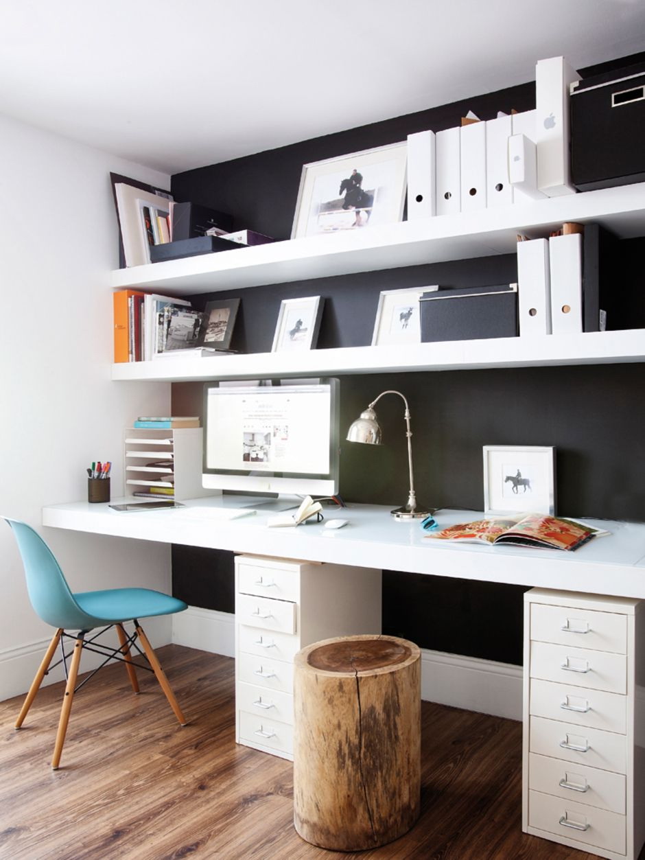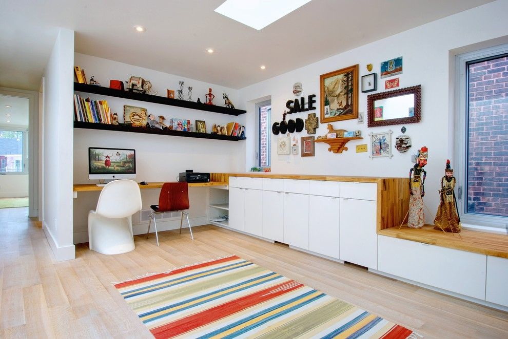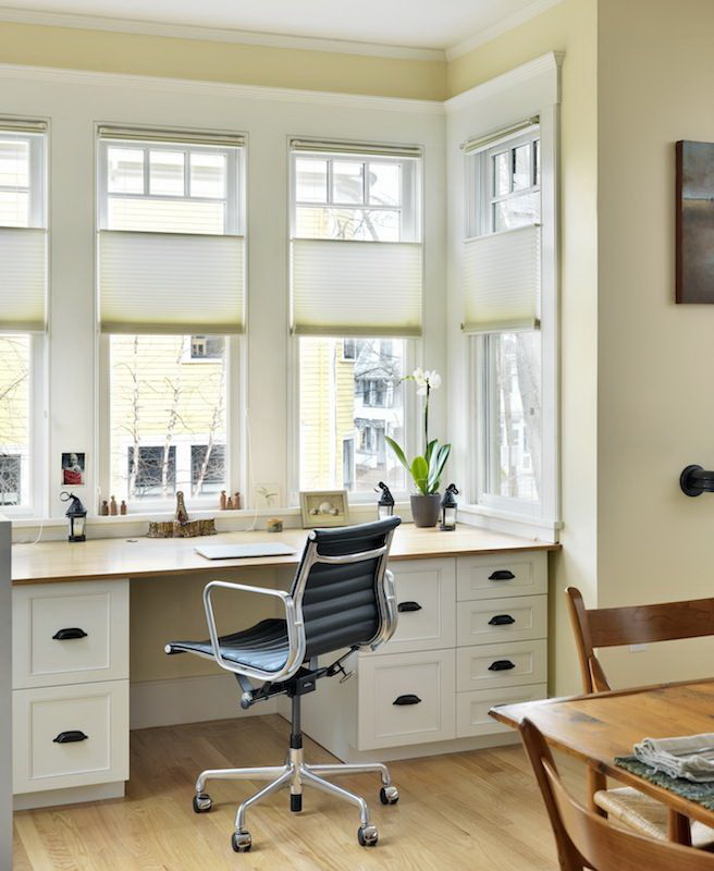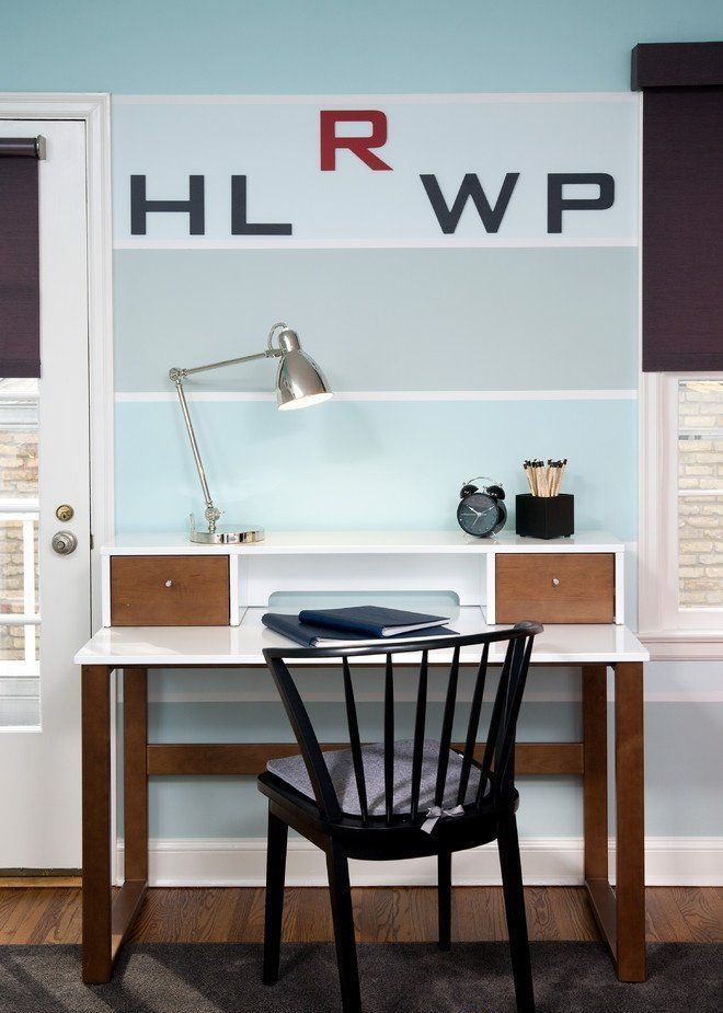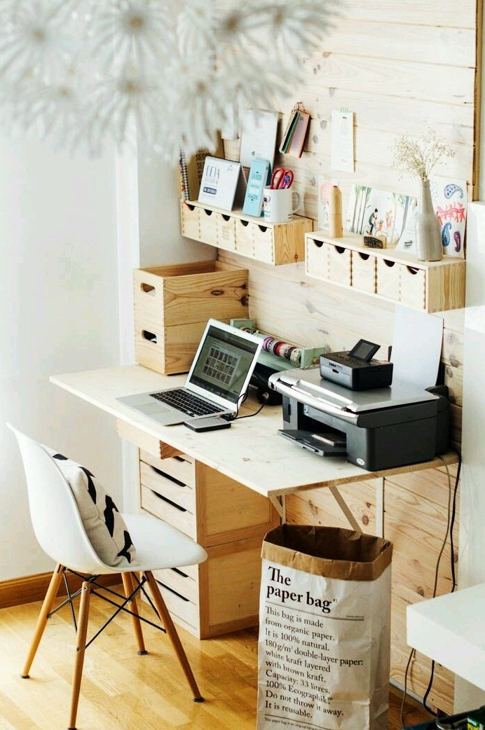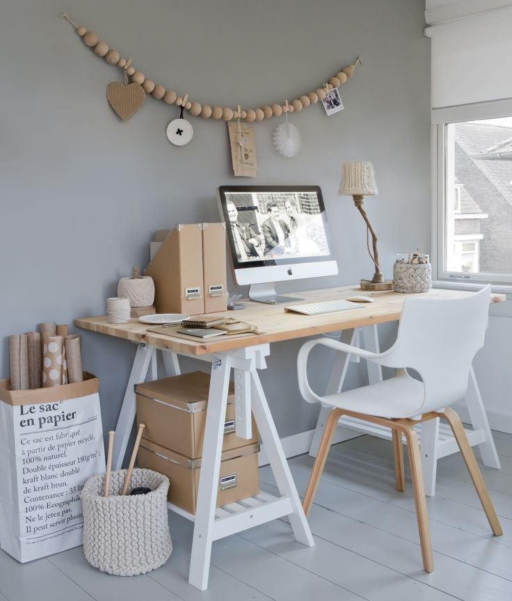 Opção para escritório ou escritório no apartamento, que também é adequado para o quarto do aluno e do aluno. A visão do computador não é adequada para nenhum estilo de interior, mas é a mais versátil em um apartamento moderno da cidade.
