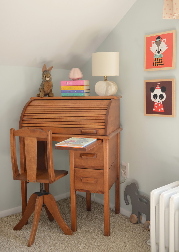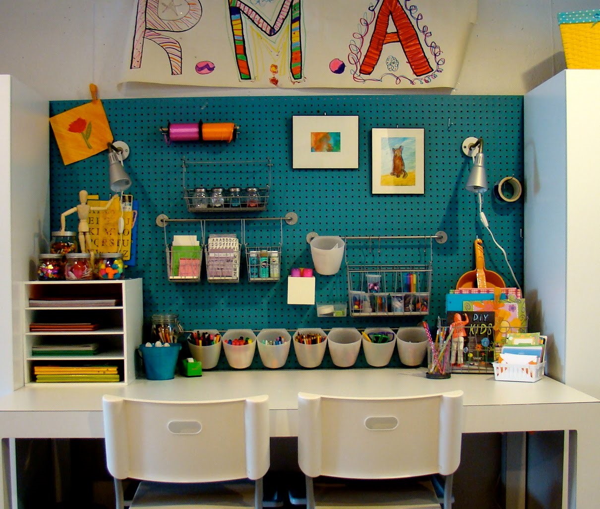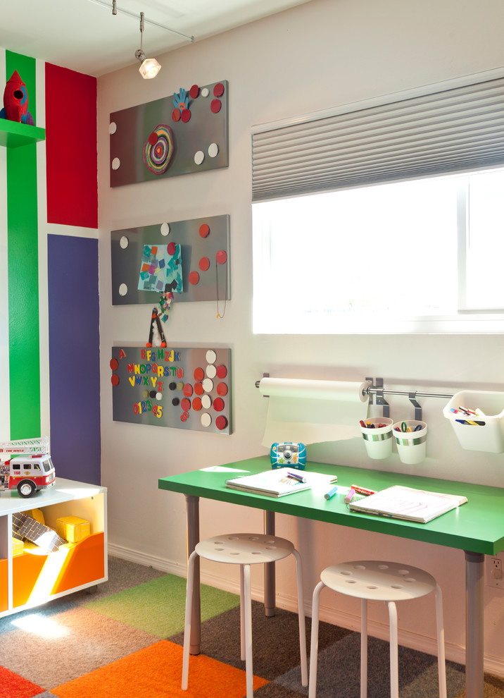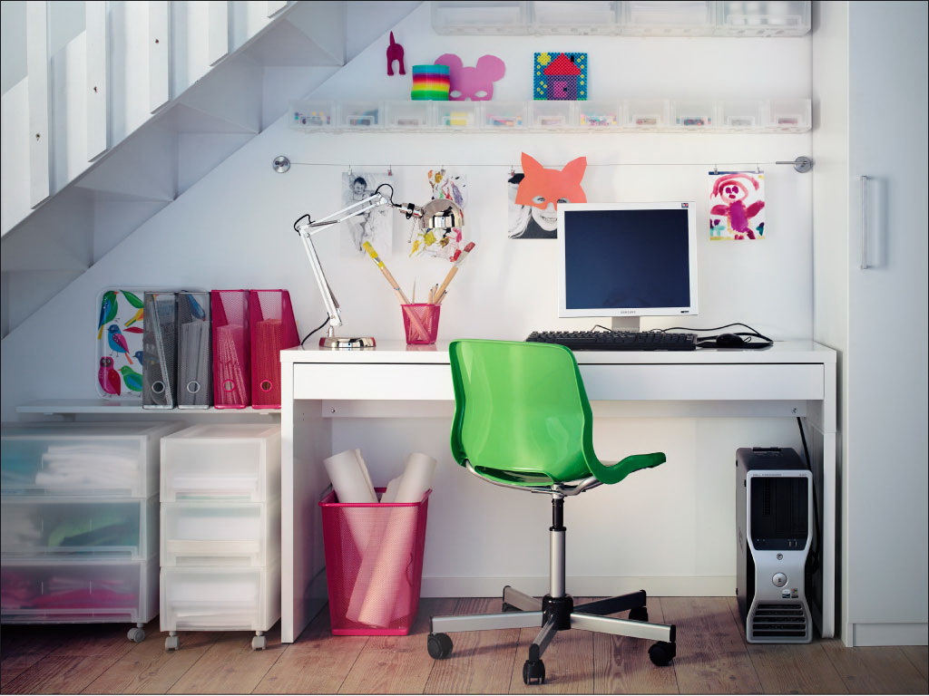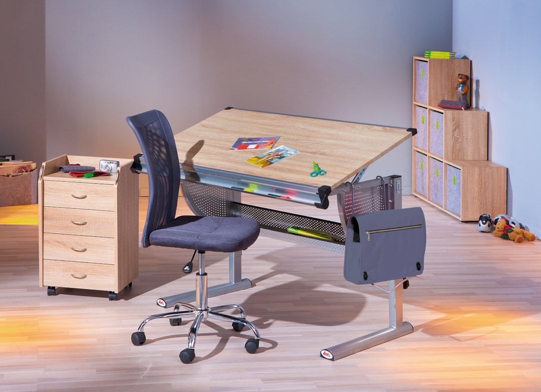 - O tampo da mesa deve ser largo o suficiente para que a criança possa colocar o escritório de que precisa sem precisar ir longe a cada vez. By the way, as crianças gostam de deixar as coisas inacabadas e, consequentemente, ferramentas, então deve haver muito espaço.