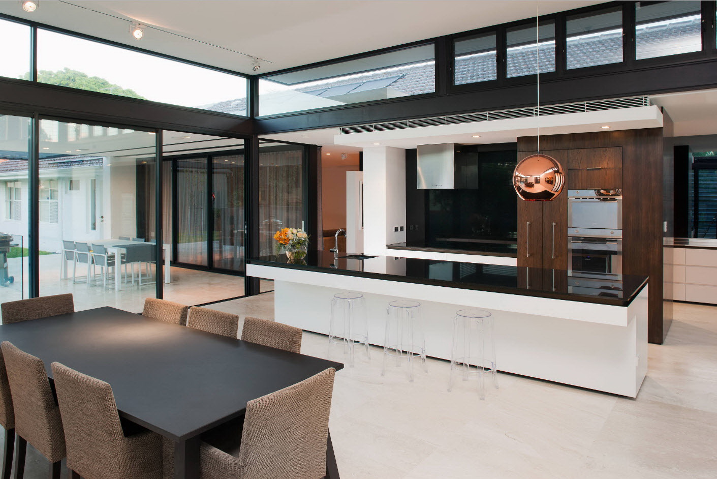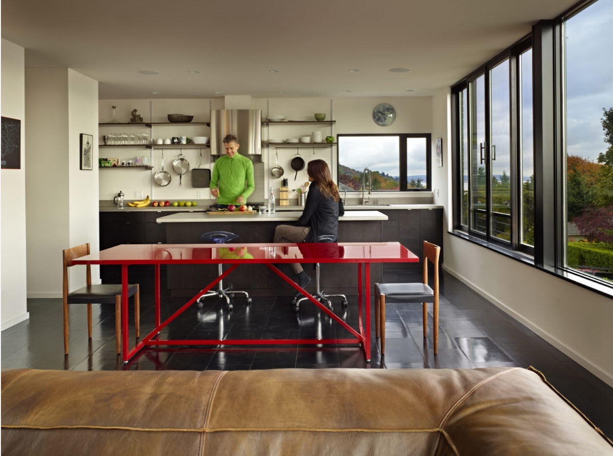 Moderno. Loft e oi-tech - estilos populares para o design de cozinhas e salas de jantar. Eles vieram à tona há muito tempo graças a um interior minimalista e elegante. Sua ergonomia destacou perfeitamente foto.