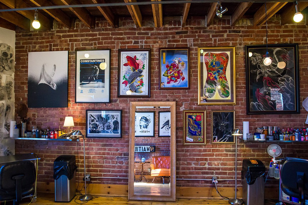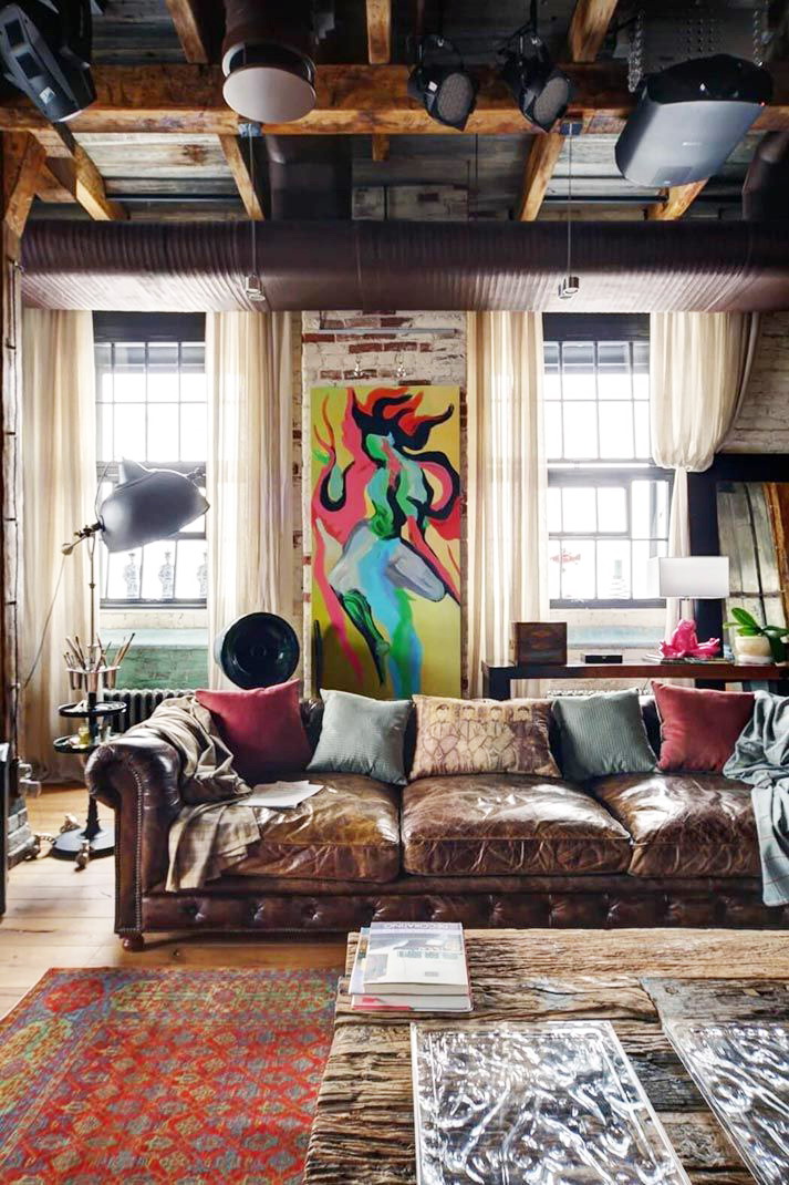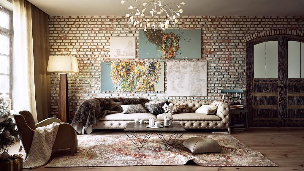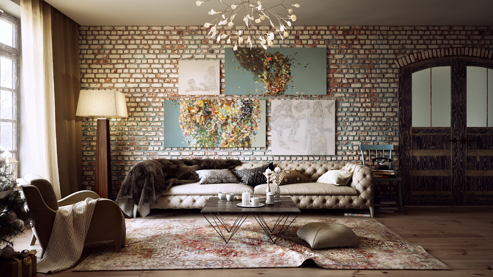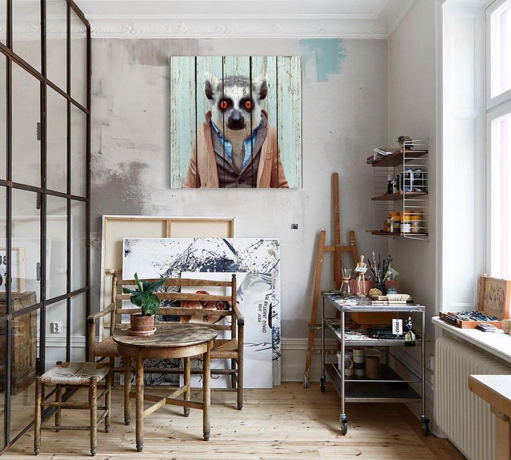 - Combinação harmoniosa de pinturas de diferentes formas e direções, como cartazes e naturezas-mortas.
