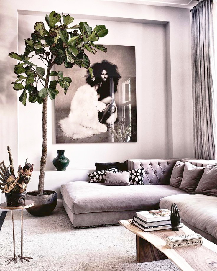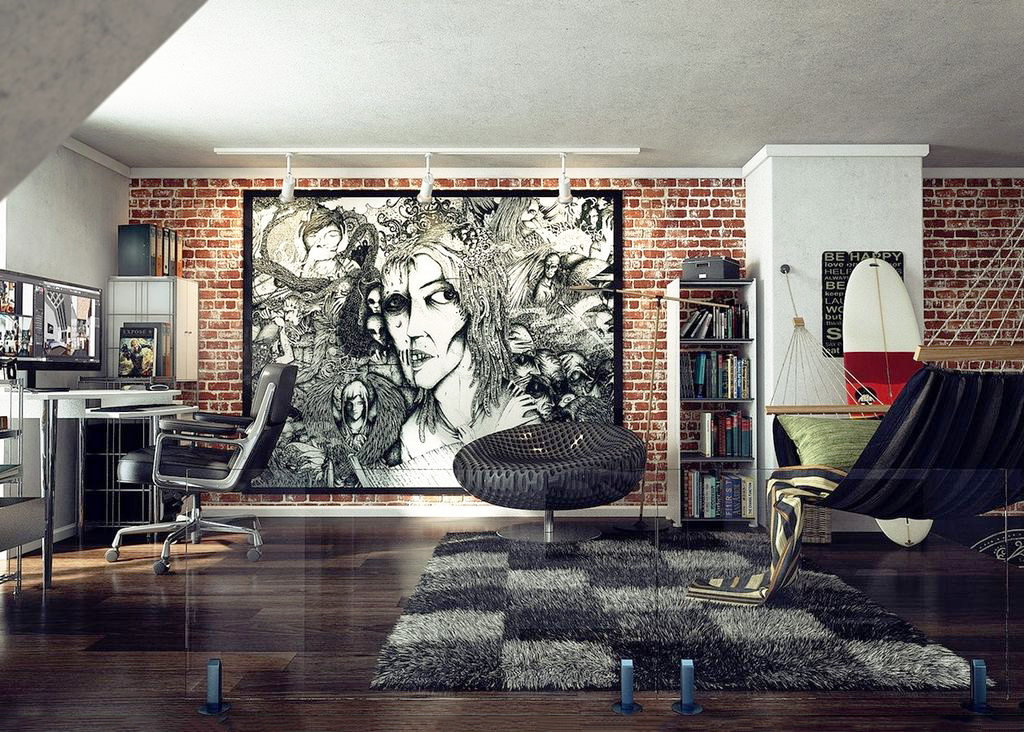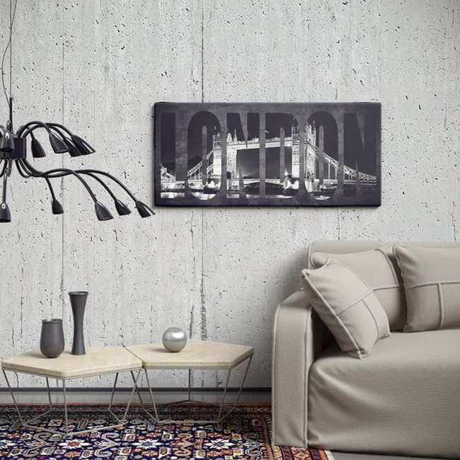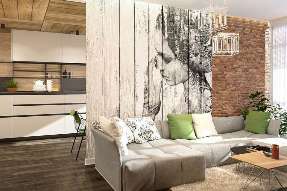 Foto-imagem ajudará a colocar acentos corretamente, se necessário, pode até mudar completamente o estilo da sala.. Imagens corretas ajudarão a expandi-lo visualmente. A coisa mais notável é que eles são baratos, então você pode fazer uma substituição a qualquer momento.