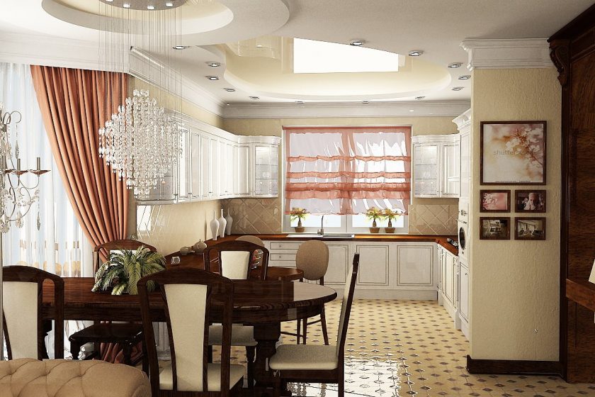 Em geral, a cozinha pode ser decorada com as seguintes opções: