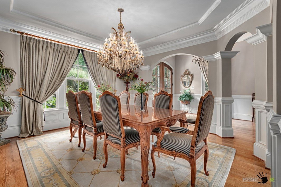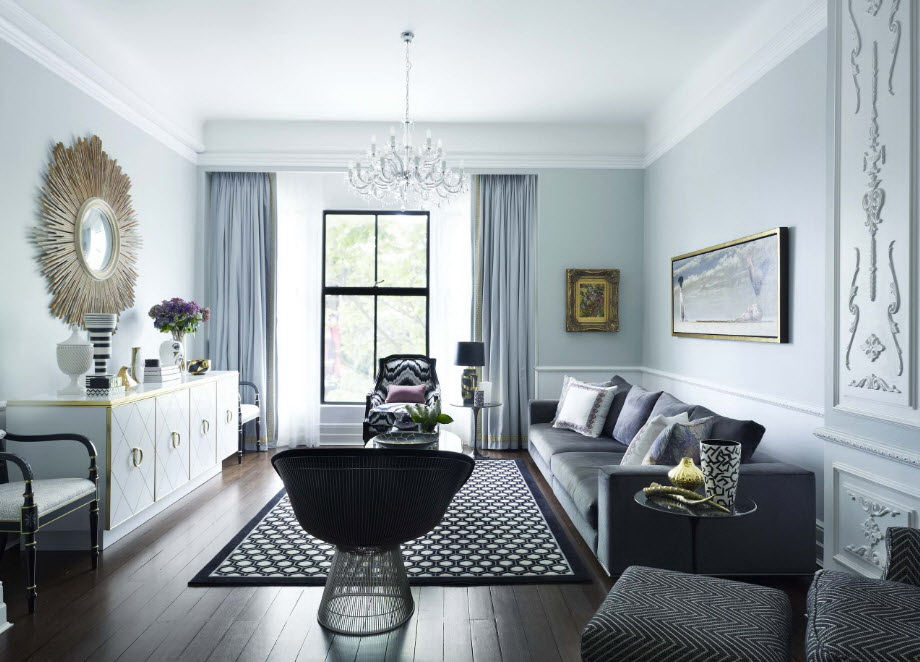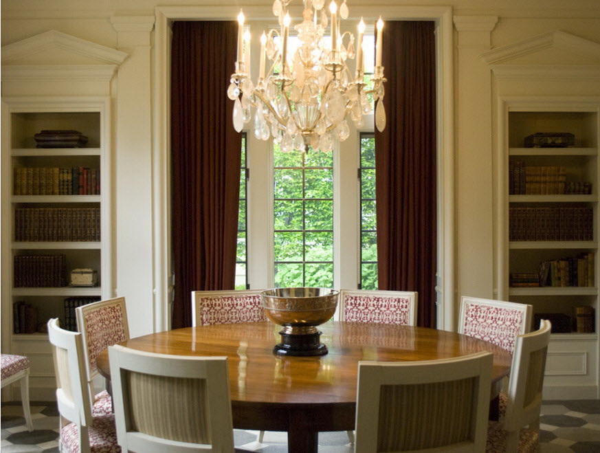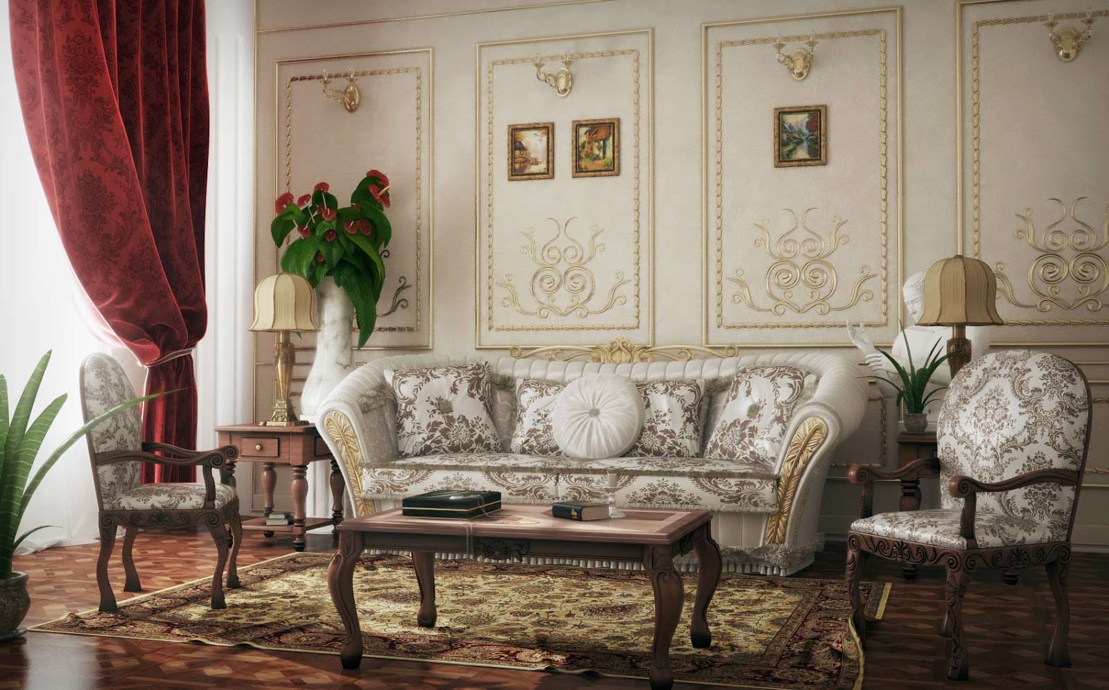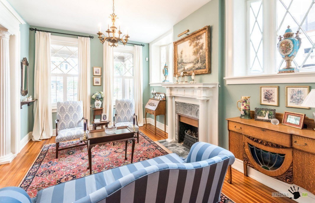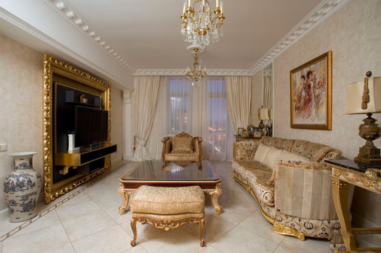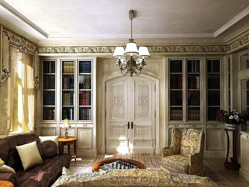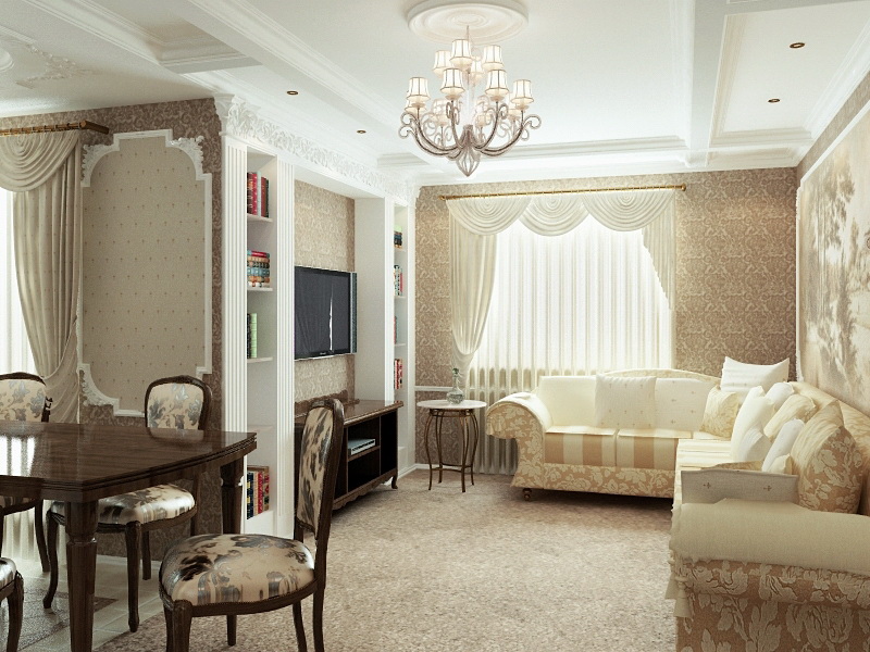 Não há necessidade de usar cada um desses elementos em sua renovação, mas alguns deles ainda precisam estar em ordem para completar a imagem do interior em um estilo clássico. O suficiente para usar no interior de móveis de madeira com estofados, cortinas de veludo e estuque, para que todos entendam que este é um clássico.