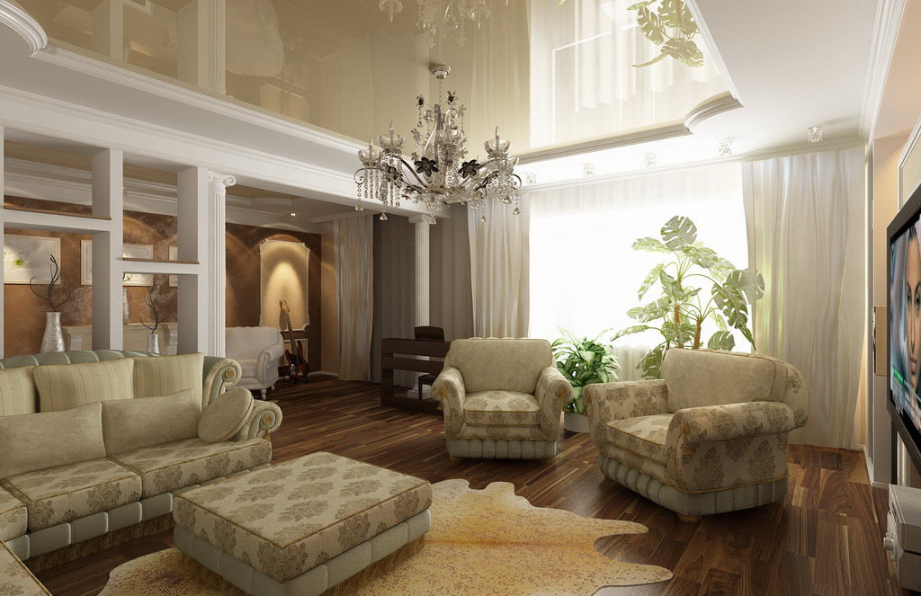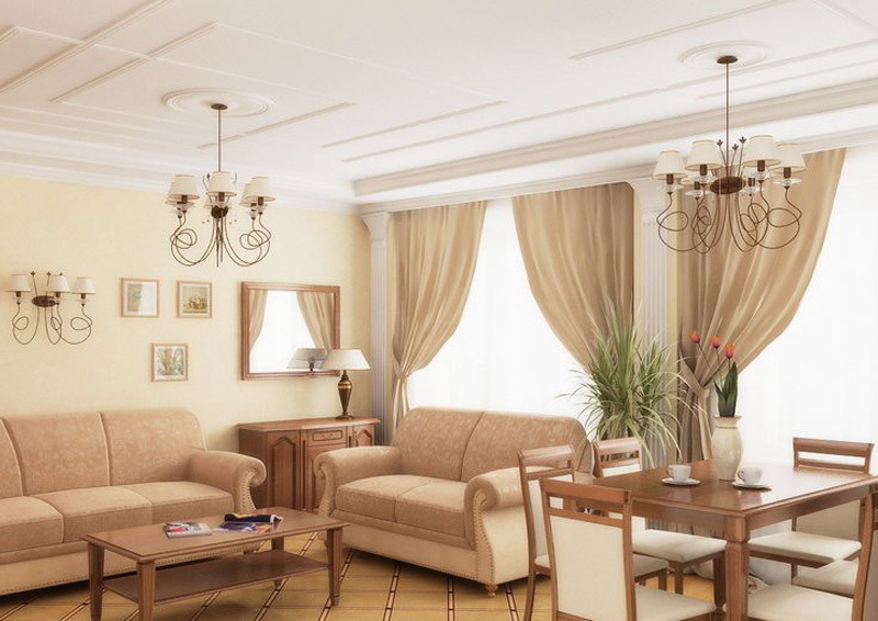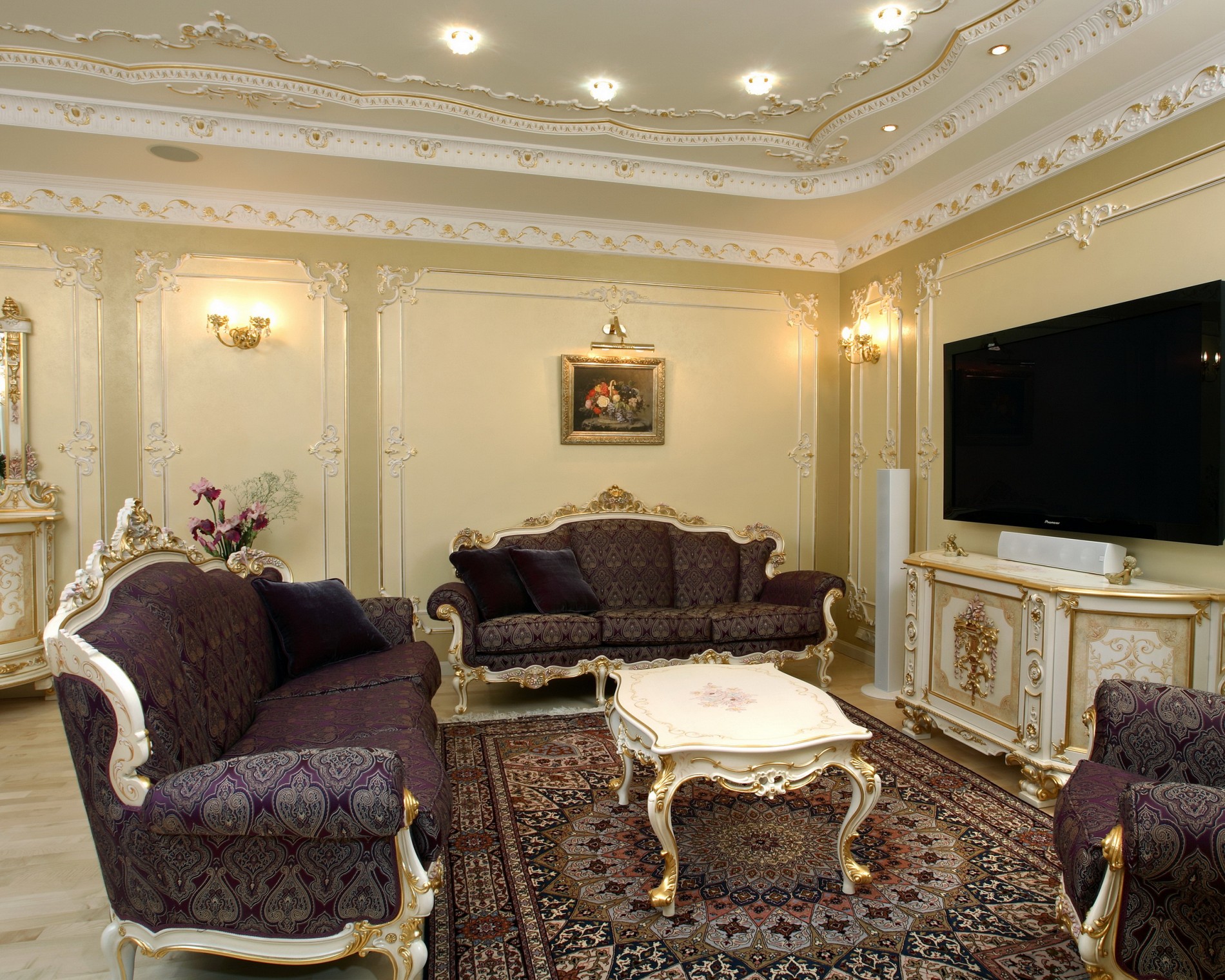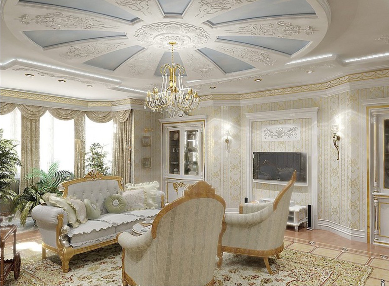 As duas últimas opções serão as mais apropriadas, porque deixam o mundo moderno melhor, rendendo à decoração vintage e envelhecida. Estucador decorativo é uma idéia de design de teto mais barato que pode expressar a individualidade do interior da sua sala de estar sem grandes investimentos. É melhor não brincar com cores, escolhendo algo de tons de branco.