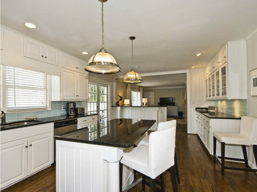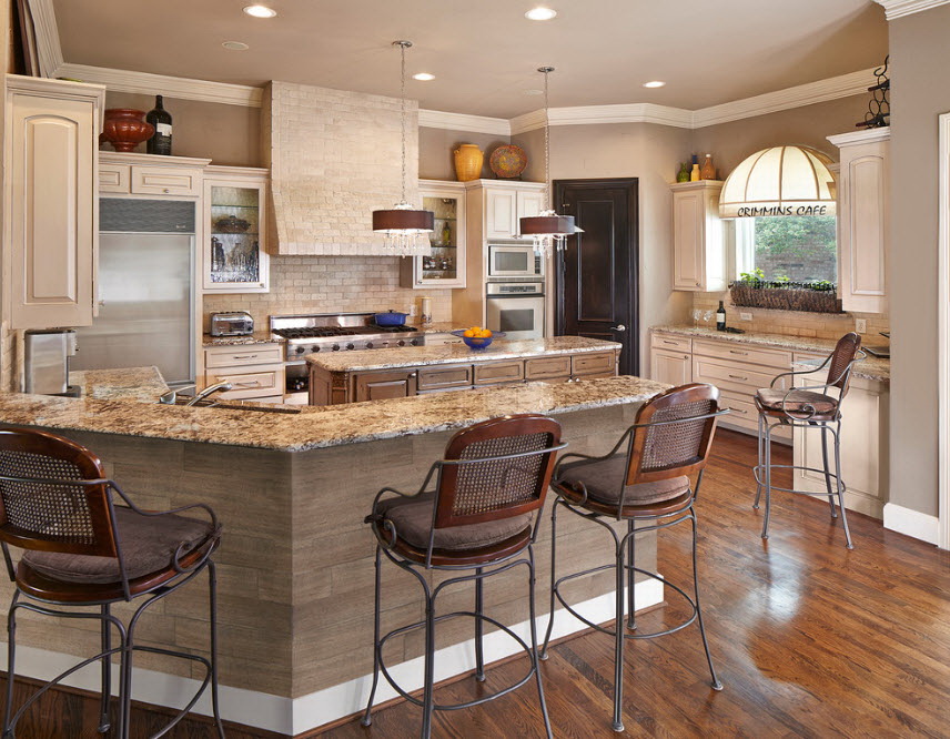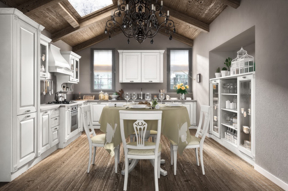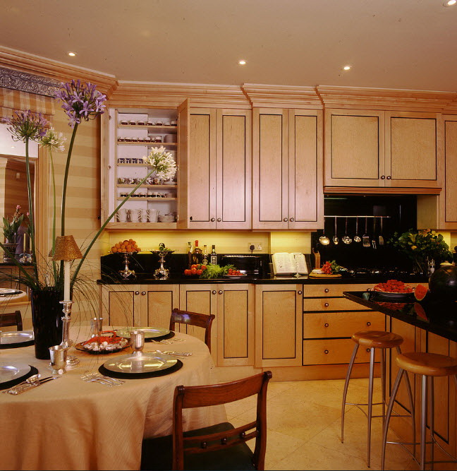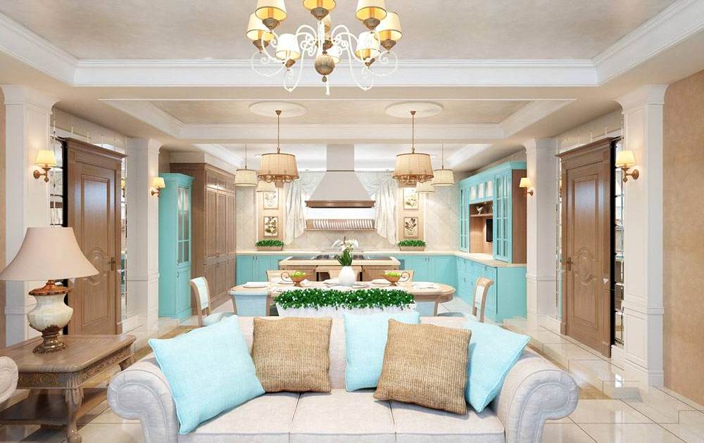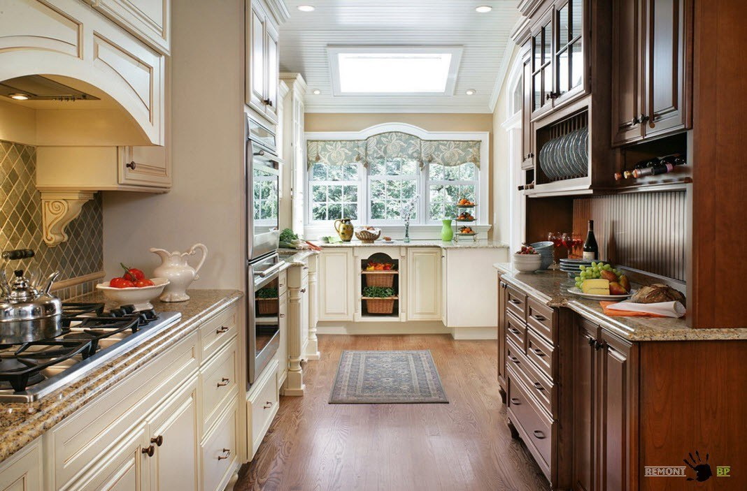 Em apartamentos com tamanhos não muito grandes, muitas pessoas combinam um quarto de hóspedes com uma cozinha para ganhar mais espaço. O zoneamento entre salas geralmente é feito balcão de bartrabalhando bancadas, mesa de jantar ou armário, mas qual opção deve escolher um estilo clássico? As nomeações dos quartos são diferentes, e a cozinha não precisa ser feita nos clássicos, o que ajudará a separar competentemente ambas as zonas umas das outras.