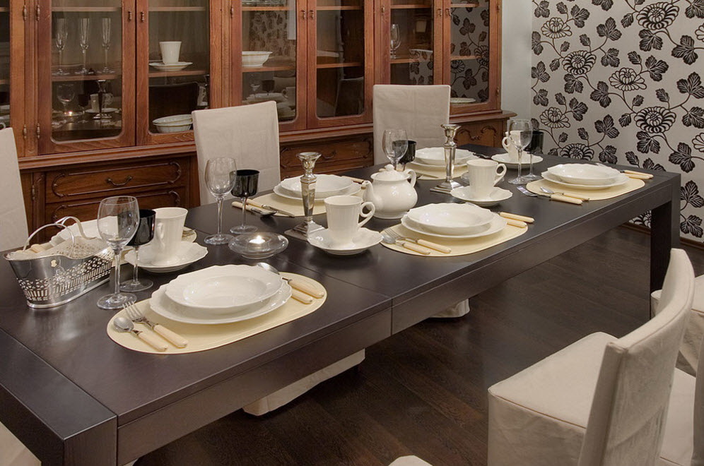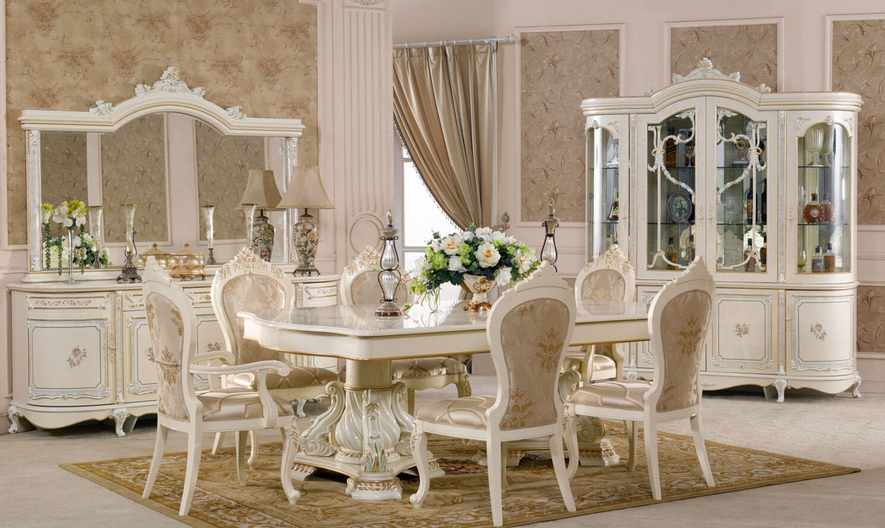 O principal parâmetro na escolha de mobiliário deve ser o material de que é feito, porque o clássico reconhece apenas a madeira natural de espécies valiosas. É na árvore e na confiabilidade dos materiais naturais que a ênfase deve ser colocada na seleção da decoração apropriada do couro, tecidos naturais e elementos forjados. Além das formas corretas e materiais naturais, o mobiliário deve ser distinguido pelo seu envelhecimento vintage ou artificial.