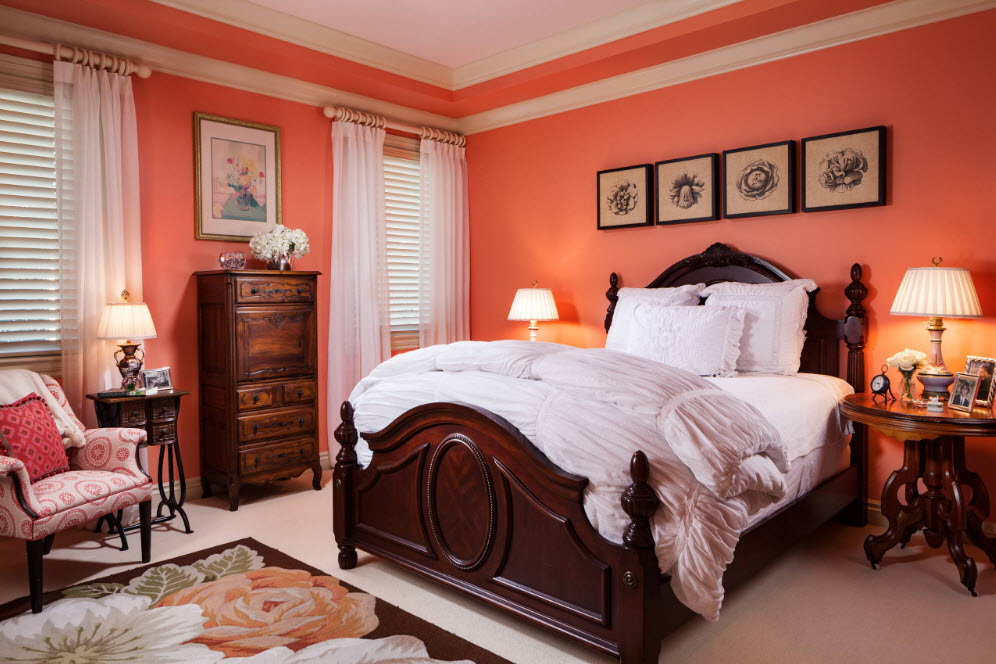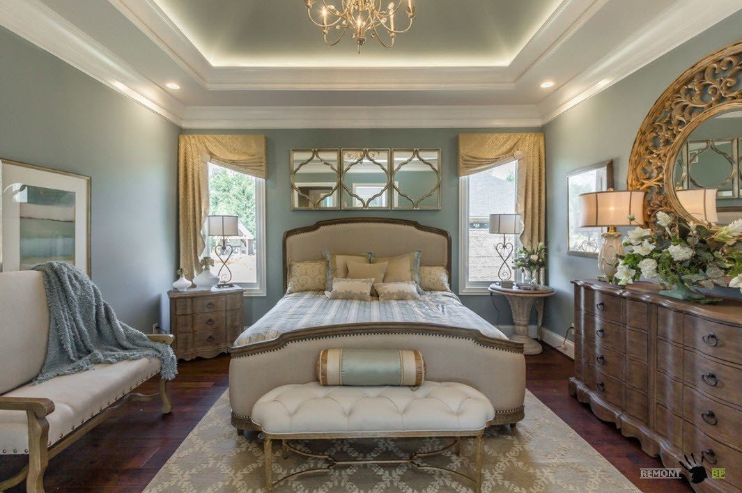 Aqui, também, terá que aderir aos cânones do estilo clássico, e se já foi dito sobre armários e cadeiras, a cama ainda não foi desmontada. No clássico, deve ser bastante pesado, massivo e luxuoso, lembrando o leito de imperadores e condes. Uma alta altura, um colchão largo e macio, uma parte traseira esculpida e estofada na cor das poltronas, um dossel são melhores ferramentas do estilo clássico.