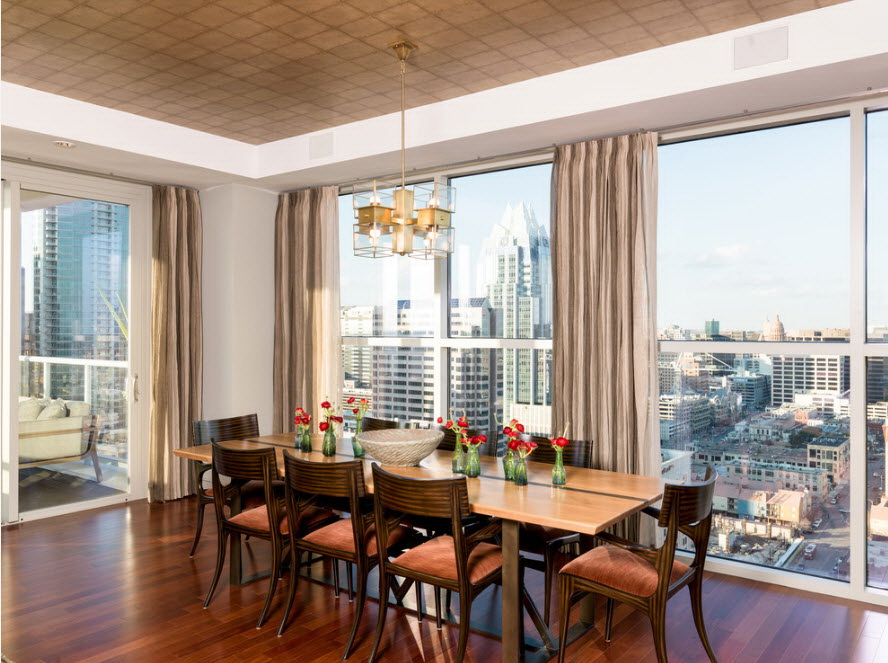 Em estilos alta tecnologia, moderno, pop art e outros raramente pensam em como ser decorado tectoapenas escolhendo organicamente apto luminárias. No caso dos clássicos, você terá que sofrer, fazendo uma obra de arte fora do teto, assim como qualquer outro elemento decorativo no interior. Você pode deixar um teto plano, apenas branquear, mas então você deve adicionar padrões de estuque ou ouro.