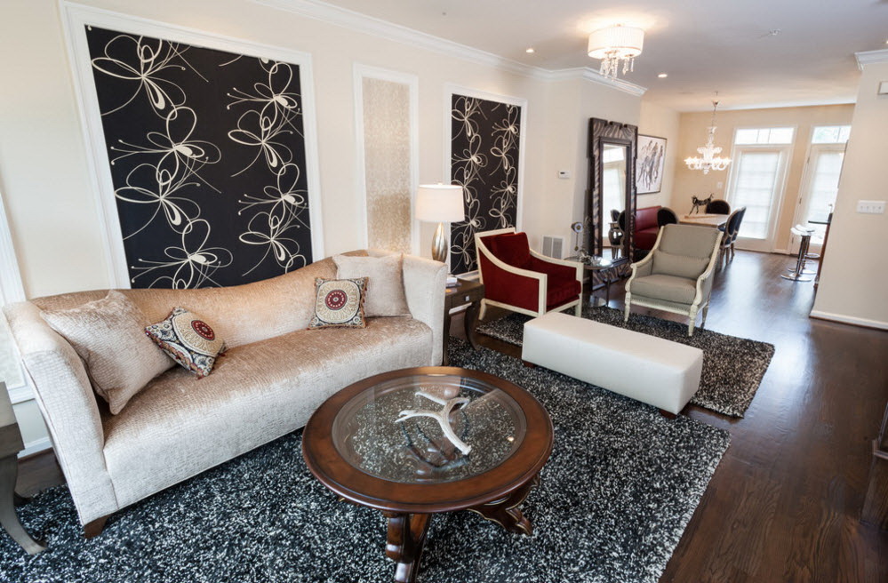 Isso permite não colocar muita ênfase no piso, deixando o foco principal no mobiliário e na decoração. Em relação às paredes, o carpete deve ser contrastado para que a ilusão visual “box-room” não seja criada.