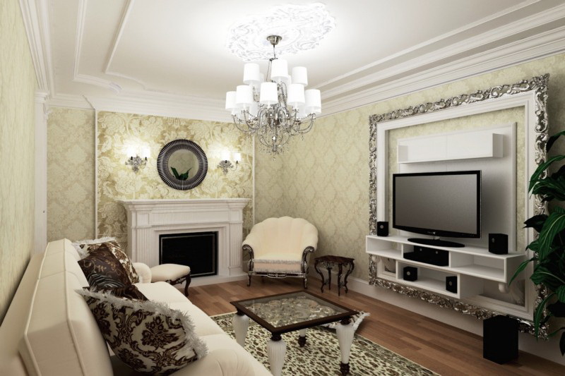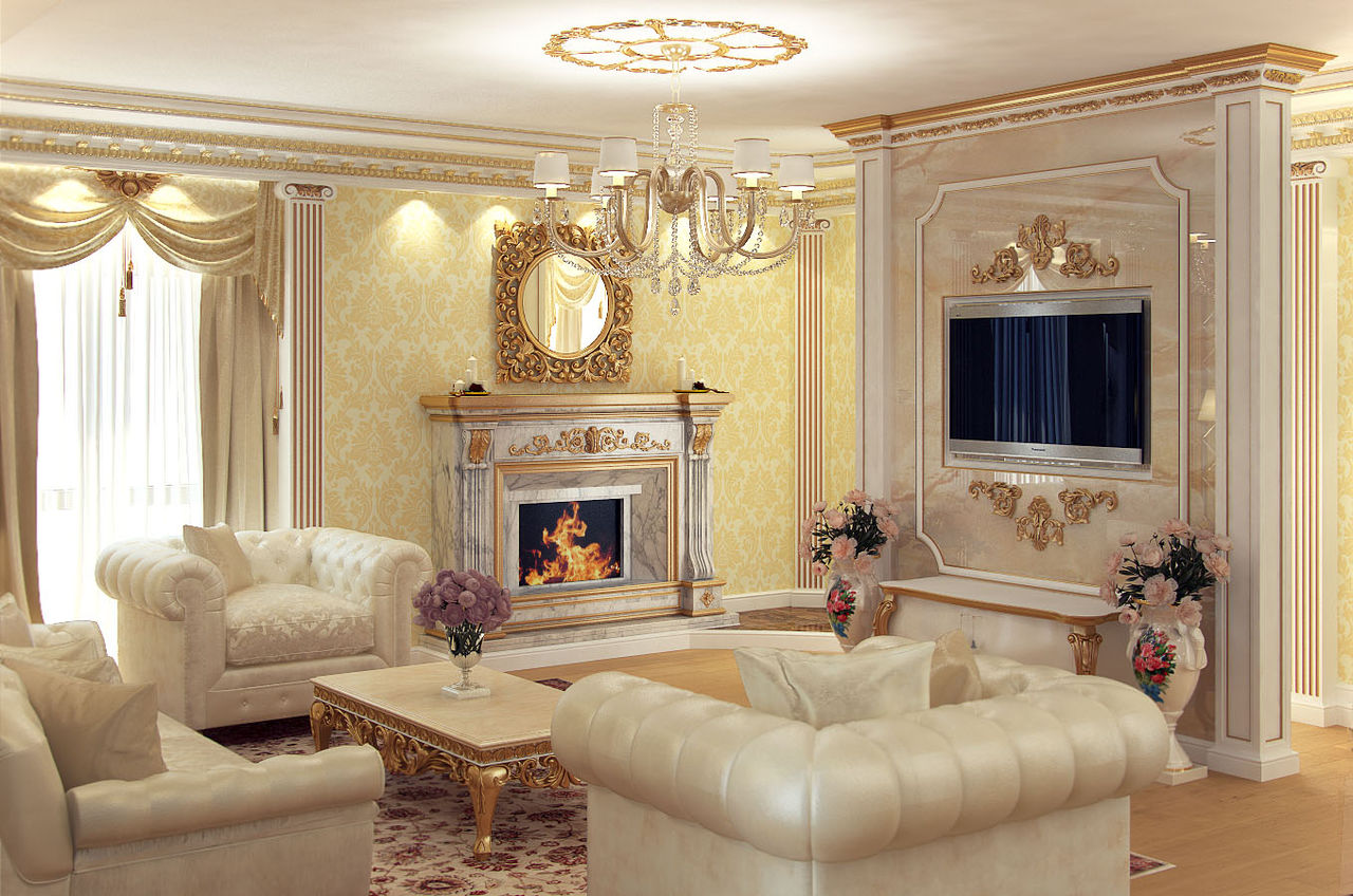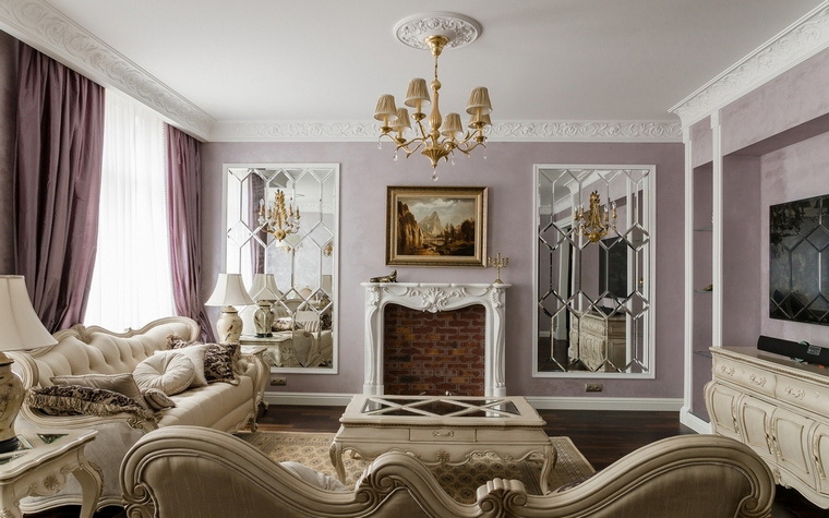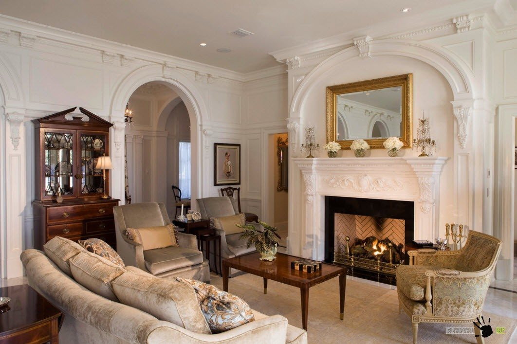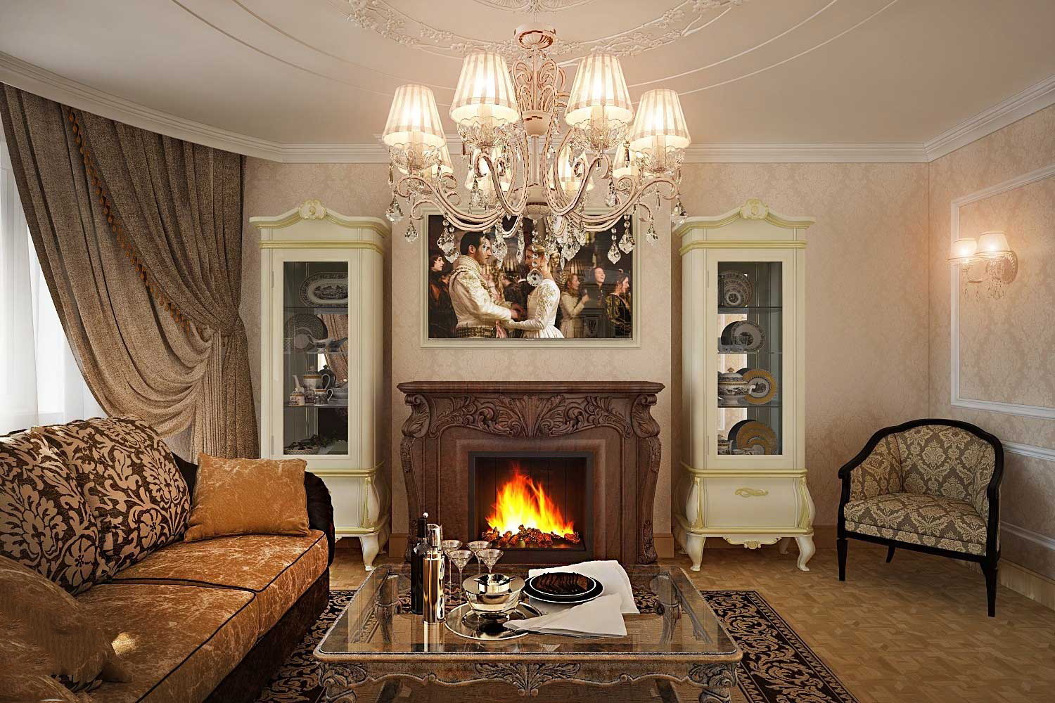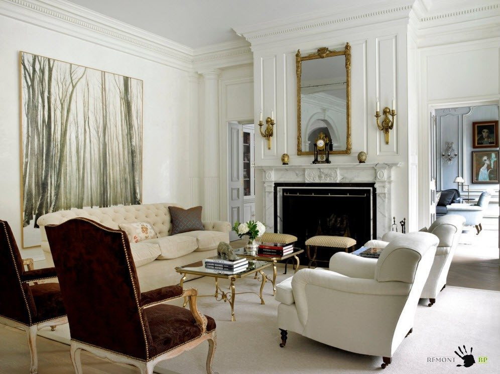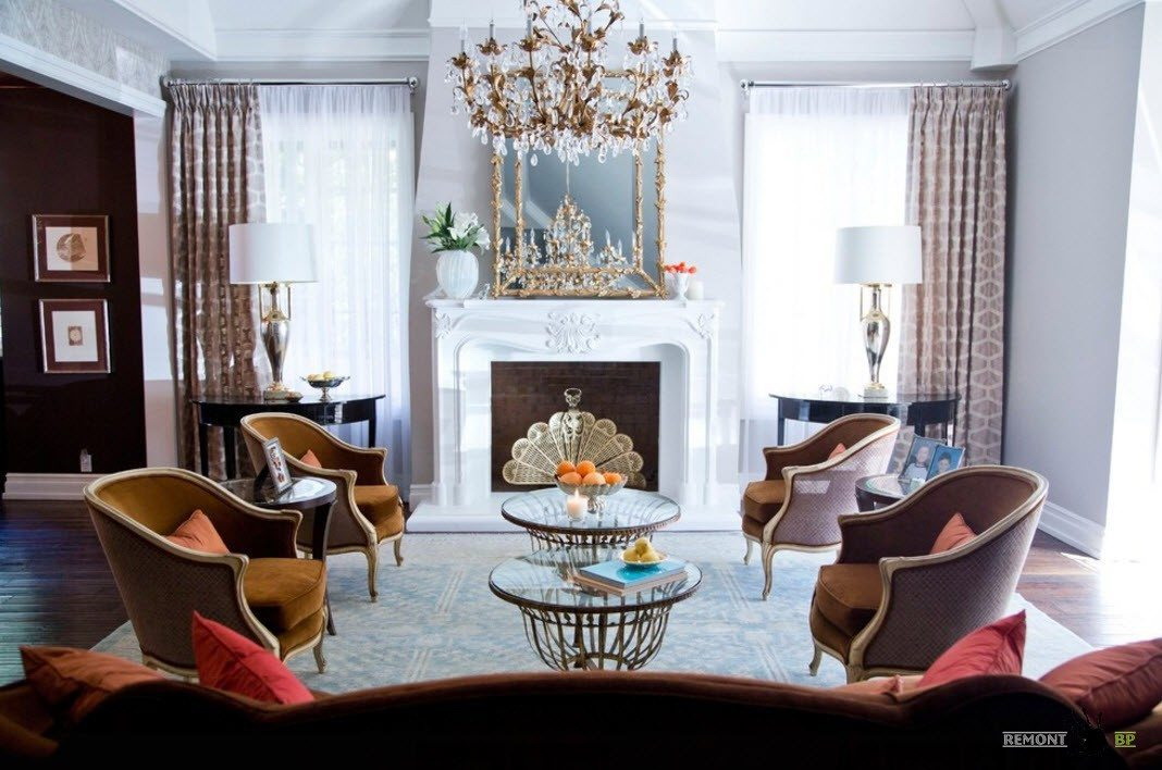 Organizar a sala de estar no clássico é fácil, mas muito caro. Este estilo é muitas vezes escolhido por pessoas ricas que podem gastar uma grande quantidade em móveis de design de materiais naturais e acabamentos caros com folha de ouro.No entanto, é possível criar um milagre, não só em uma casa particular, mas também em um apartamento da cidade, e até mesmo uma lareira vai caber lá. Tenha paciência e experiência de designers para fazer em sua casa um reparo de qualidade, agradando seus olhos.