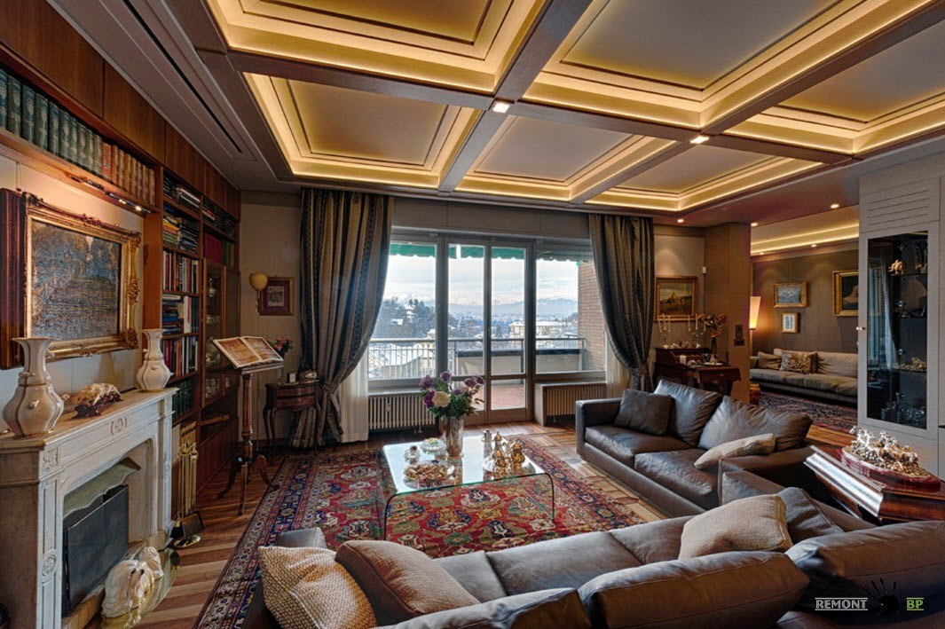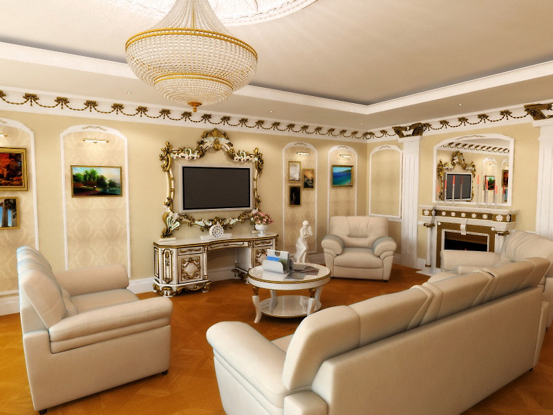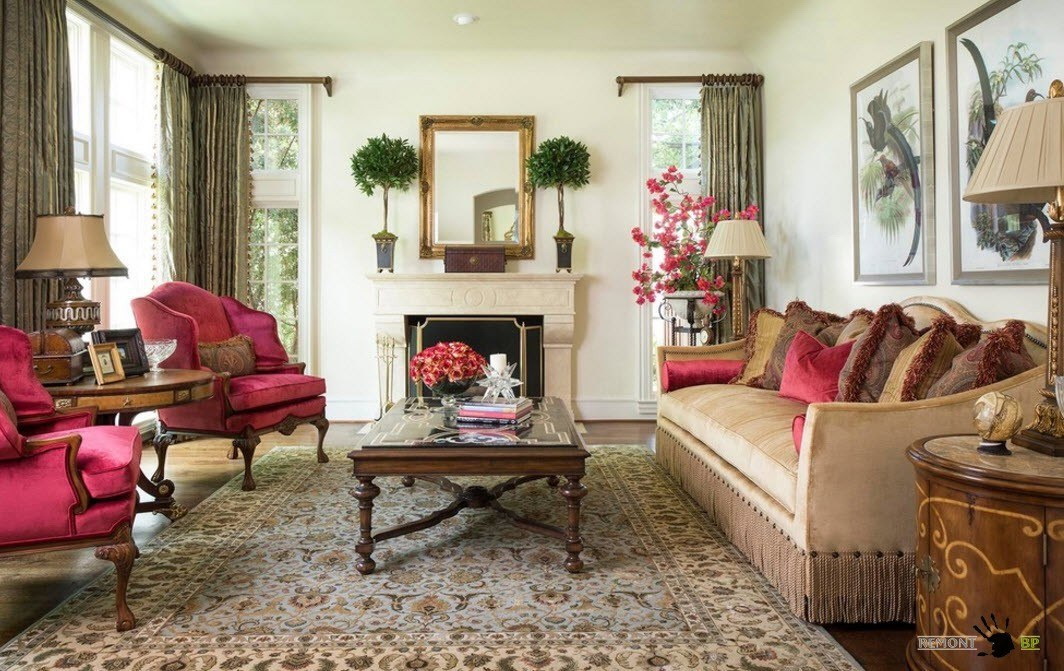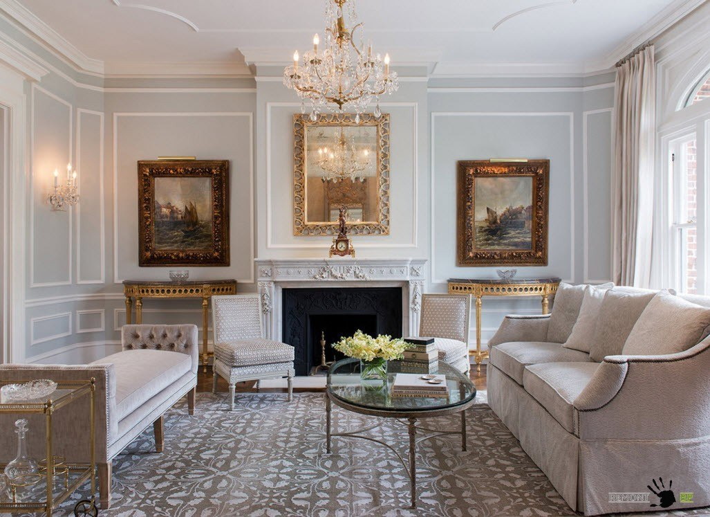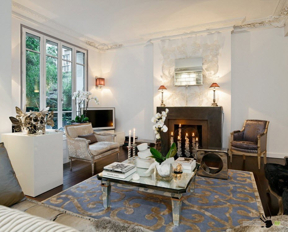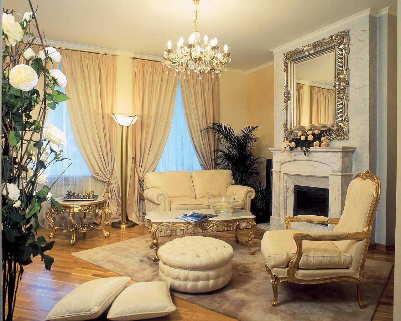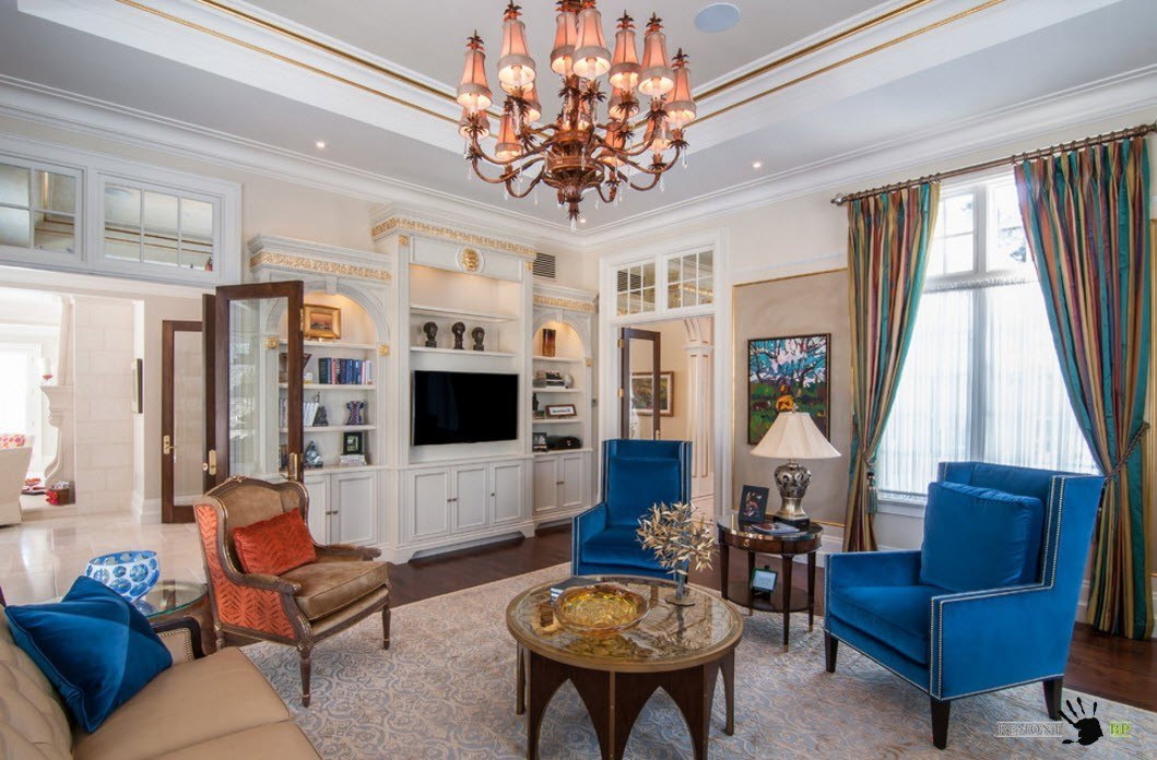 Organizar a sala de estar no clássico é fácil, mas muito caro. Este estilo é muitas vezes escolhido por pessoas ricas que podem gastar uma grande quantidade em móveis de design de materiais naturais e acabamentos caros com folha de ouro.No entanto, é possível criar um milagre, não só em uma casa particular, mas também em um apartamento da cidade, e até mesmo uma lareira vai caber lá. Tenha paciência e experiência de designers para fazer em sua casa um reparo de qualidade, agradando seus olhos.