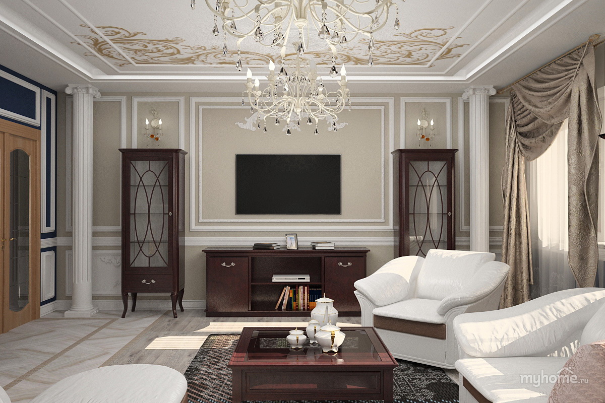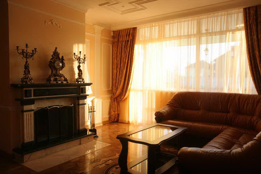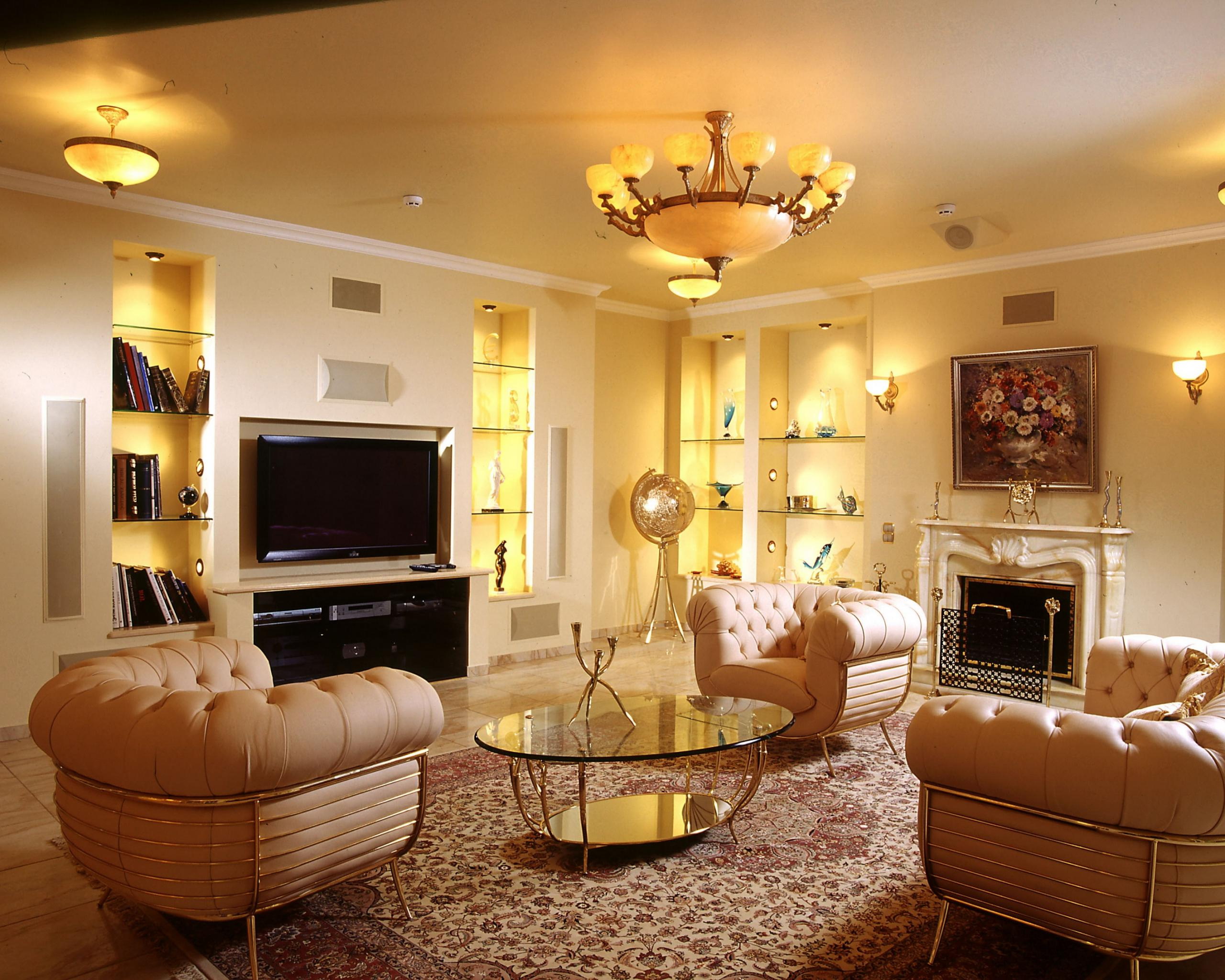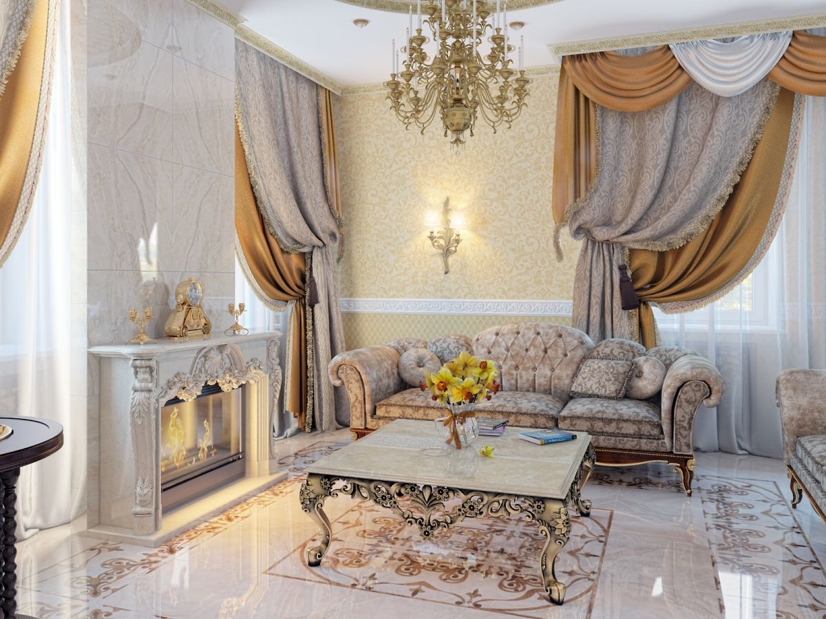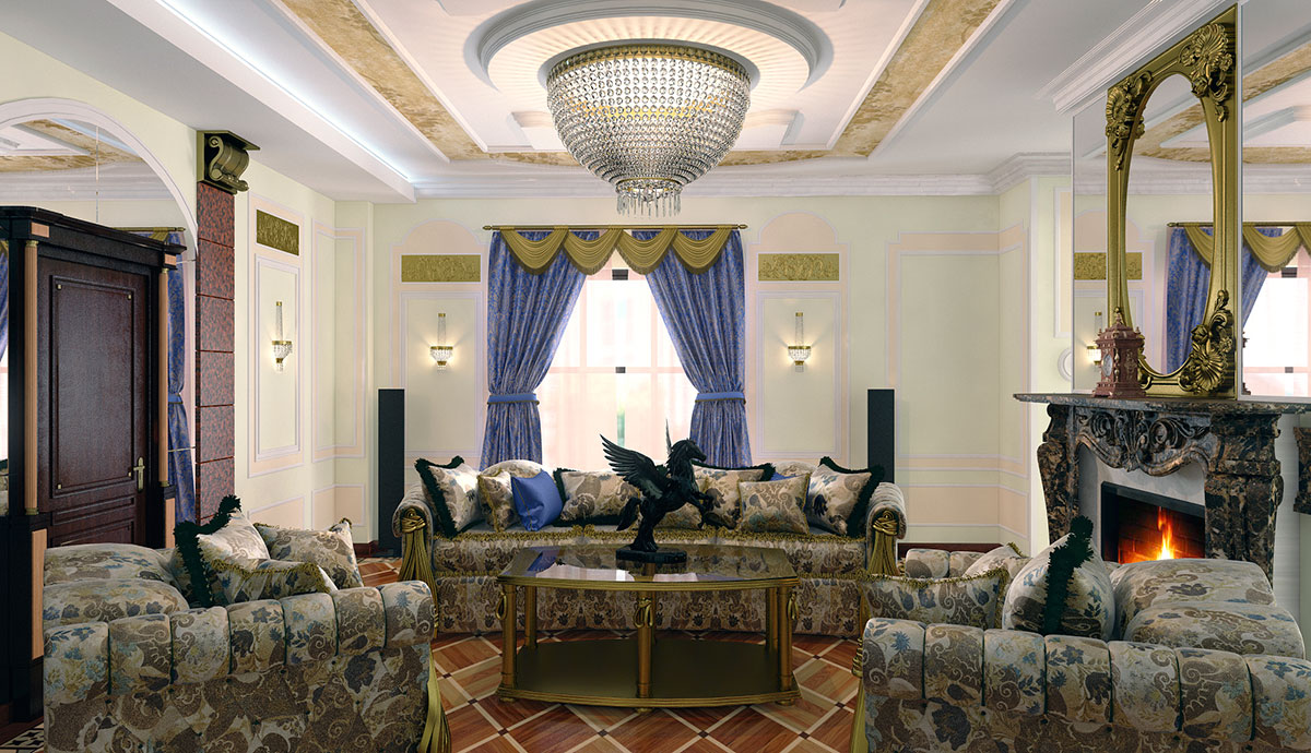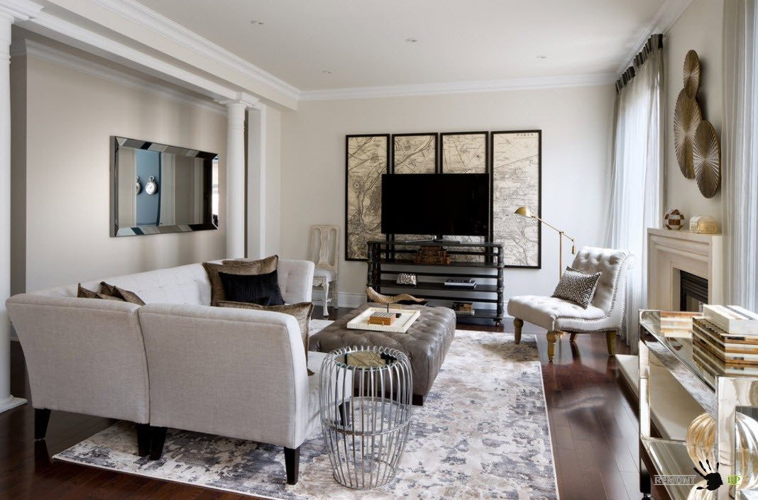 Organizar a sala de estar no clássico é fácil, mas muito caro. Este estilo é muitas vezes escolhido por pessoas ricas que podem gastar uma grande quantidade em móveis de design de materiais naturais e acabamentos caros com folha de ouro.No entanto, é possível criar um milagre, não só em uma casa particular, mas também em um apartamento da cidade, e até mesmo uma lareira vai caber lá. Tenha paciência e experiência de designers para fazer em sua casa um reparo de qualidade, agradando seus olhos.