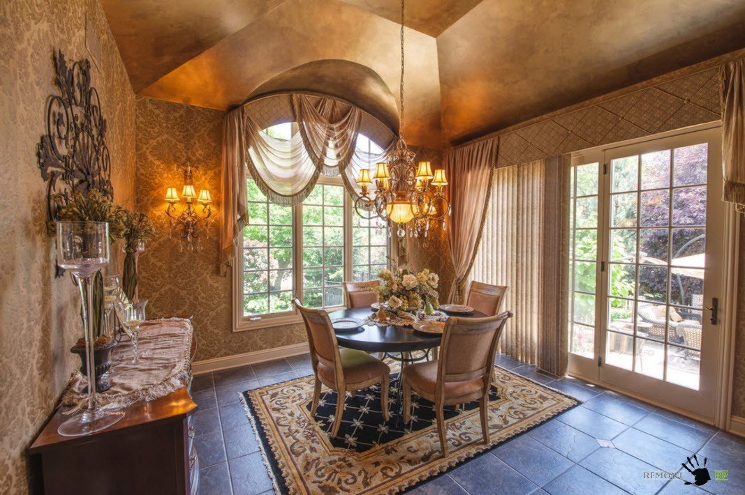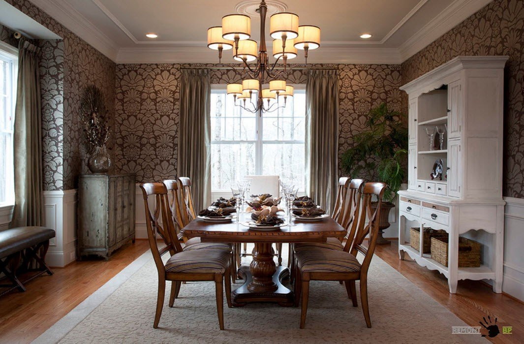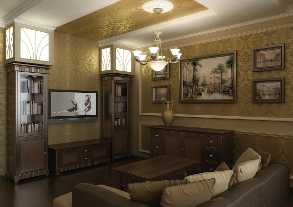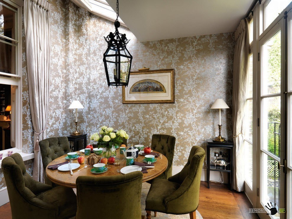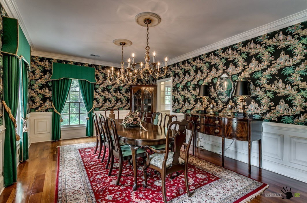 Como já mencionado, uma das características do estilo clássico é papel de parede têxtil, mas agora não só eles podem ser escolhidos por você para manter o estilo. Existem várias opções de papel de parede, que podem aparecer se você selecionar corretamente o design.