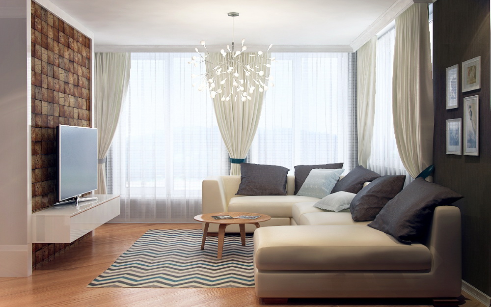 Escolha um modelo contrastante: o tapete com tons frios encaixa perfeitamente na sala com tons claros predominantes. Muito depende da quantidade de luz na sala também, então tente colocar o modelo em cores bege na sala escura.