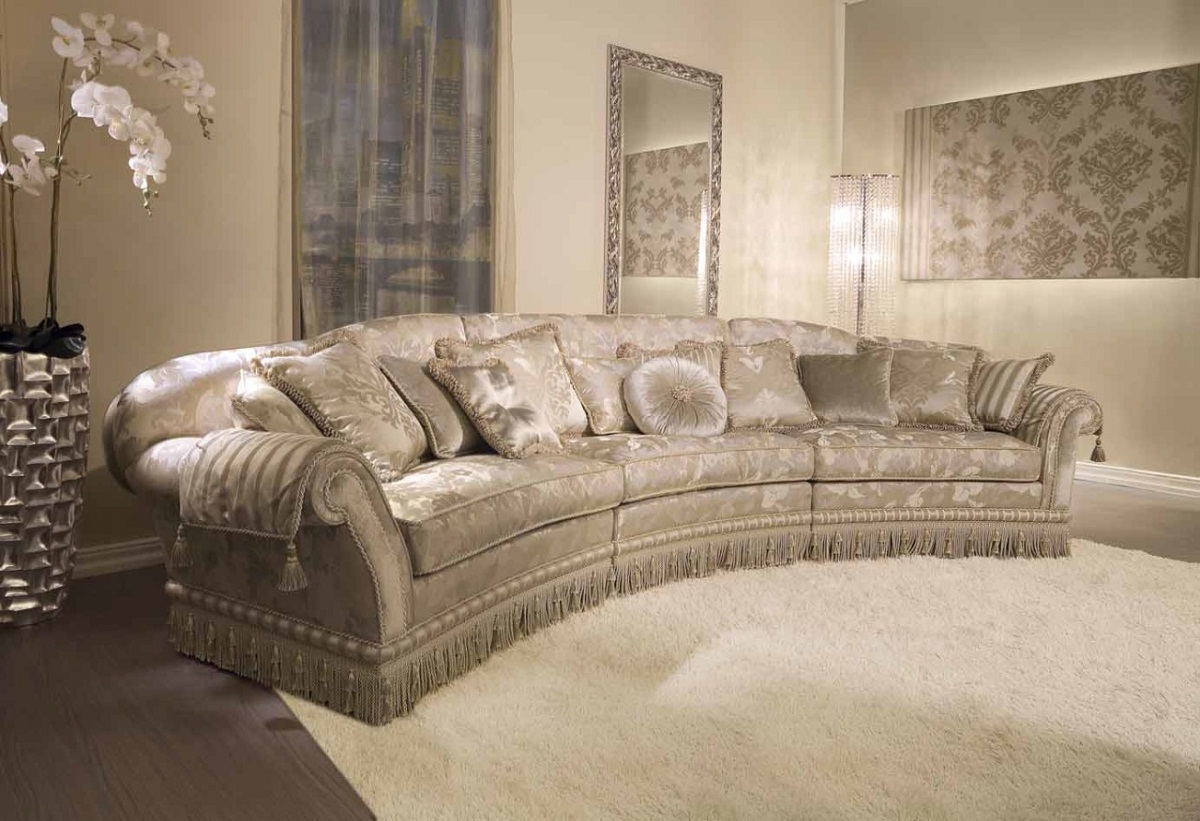 O sofá não é apenas a decoração principal de qualquer sala, mas também o detalhe principal do interior de qualquer sala de estar. Em um estilo clássico, o sofá deve parecer chique e de bom gosto, estofado em tecidos caros, enfeitados com materiais naturais e "fixados" em pernas entalhadas. Seu design deve ser arredondado, mas deve ter linhas suaves e claras, como em todos os detalhes, desde as pernas até os apoios de braços.