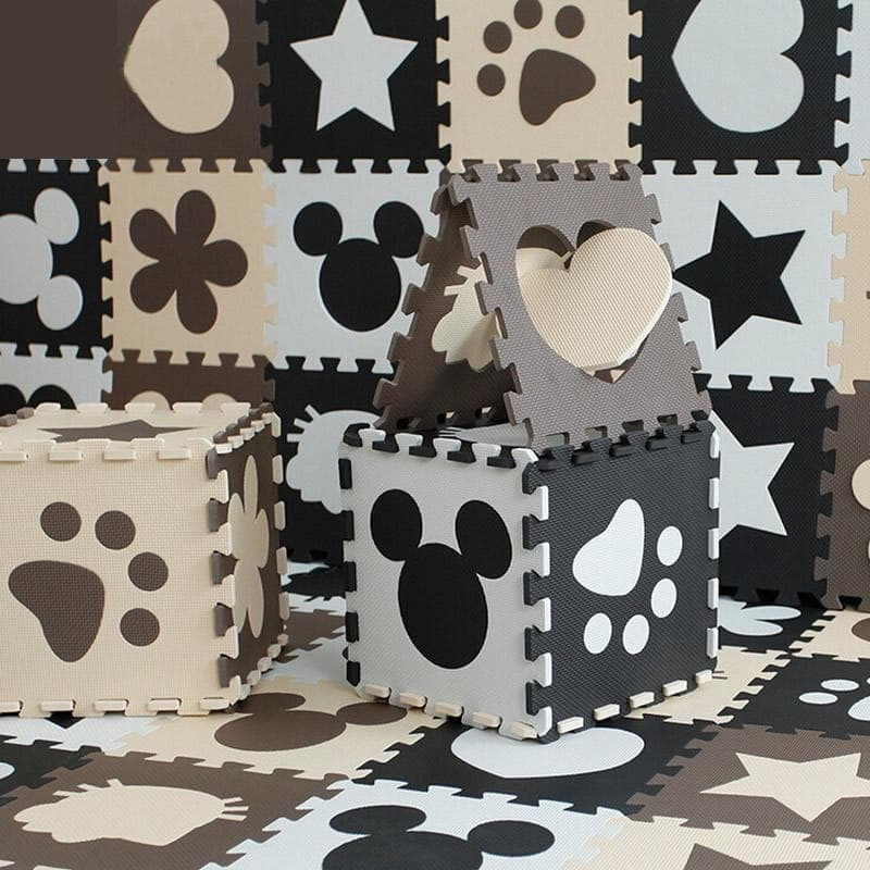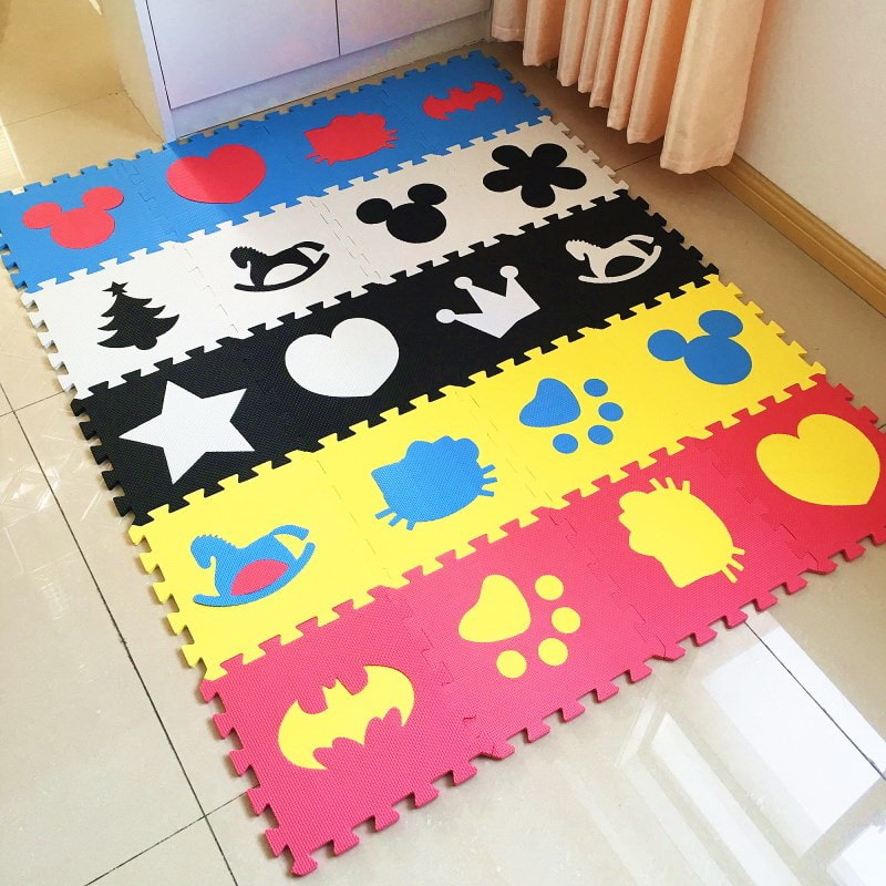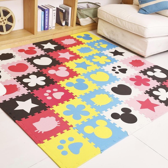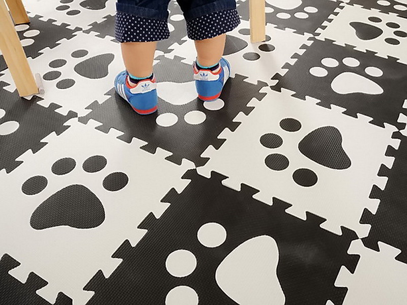 - Padrão. Além do isolamento térmico, o tapete com padrões ensinará e atrairá crianças, cumprindo um papel educacional e divertido. O tema da imagem é escolhido de acordo com os interesses, idade das crianças.