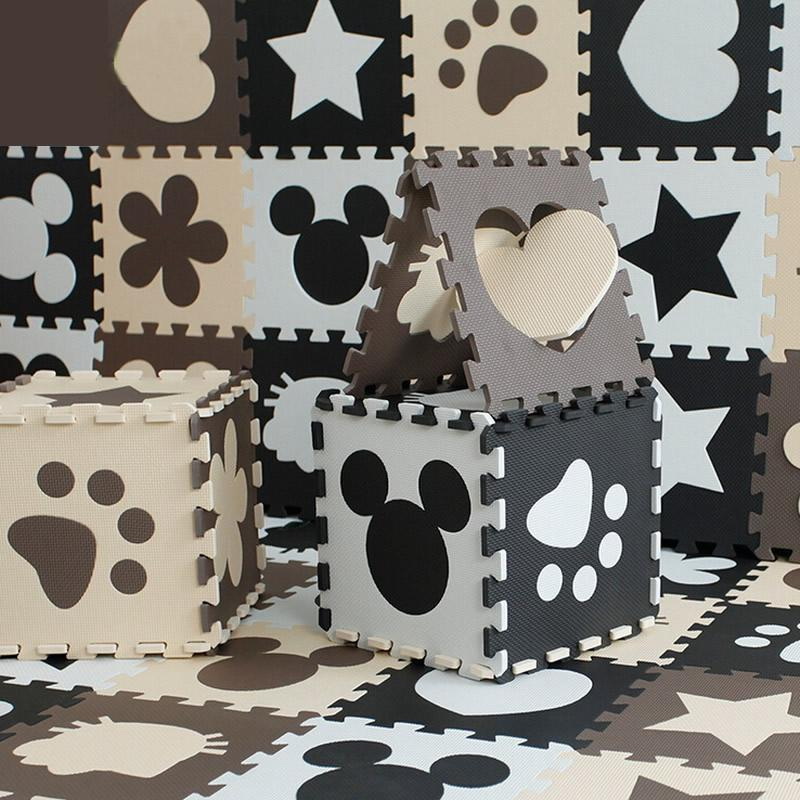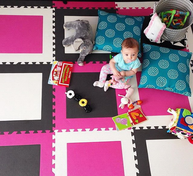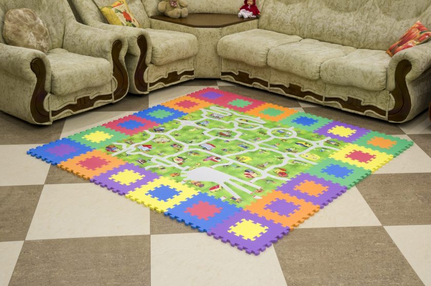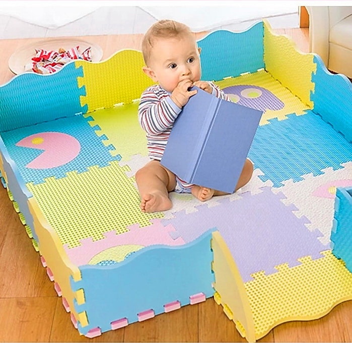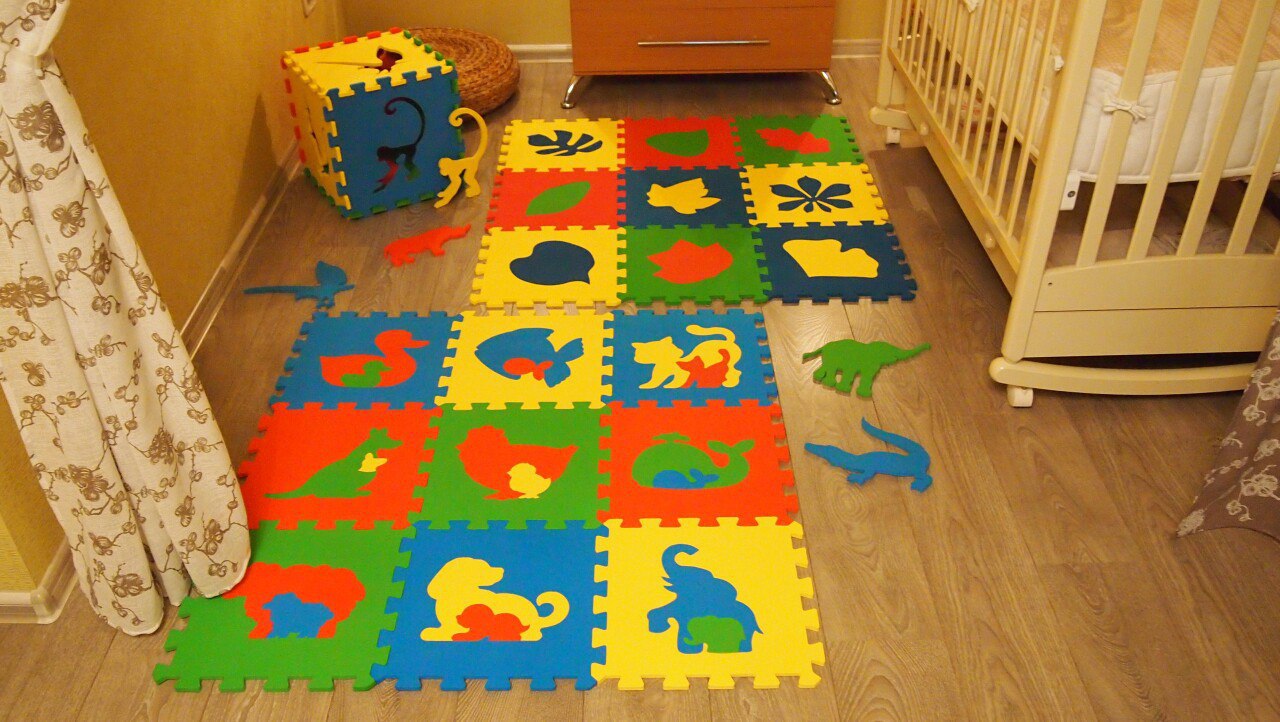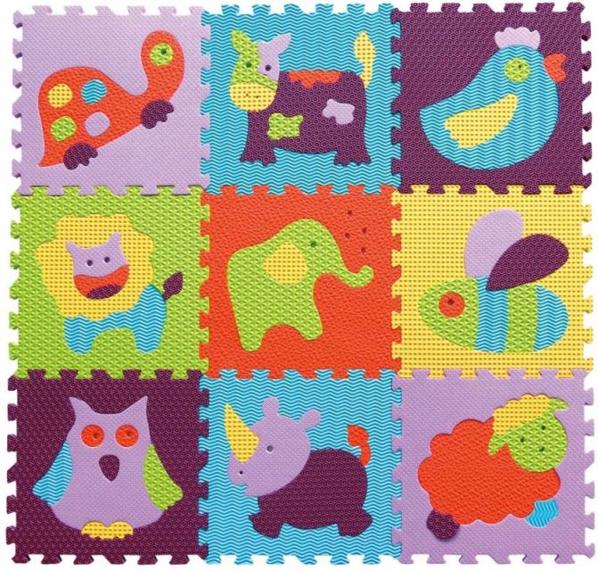 - Para crianças menores de um ano, pequenos tapetes de vários quebra-cabeças grandes são usados. Estes são produtos densos hipoalergênicos com uma superfície macia que protege os bebês contra o aparecimento de contusões e escoriações durante o rastreamento. Tapetes devem ter uma cor brilhante, completa com detalhes adicionais para a construção dos lados. Isso impedirá que as crianças rastejem para fora da área de jogo.
