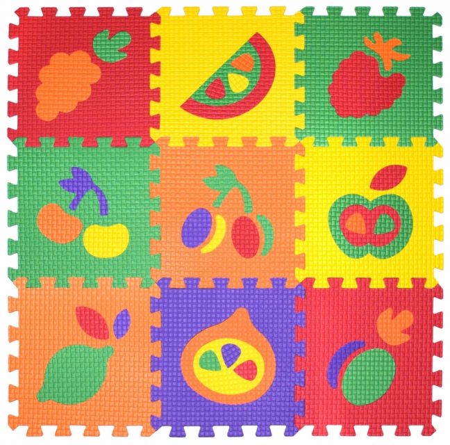 - Puzzles educacionais e educativos de EVA suave para crianças com mais de dois anos. No papel de elementos podem ser formas geométricas, os contornos de animais, letras ou números. A criança deve inseri-los nos orifícios apropriados, recolhendo parcial ou completamente o tapete. Isso permite que você desenvolva a percepção visual sobre o princípio de aprender cartões e fotos especiais.As crianças poderão ver desenhos, sentir formas tridimensionais.