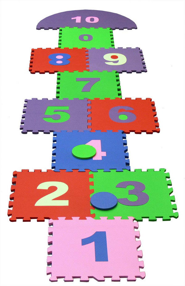 - O jogo "clássicos". As crianças mais velhas podem jogar clássicos da amarelinha. Por exemplo, você pode pular de um animal em particular ou quebra-cabeças de uma cor selecionada. Apenas o jogo deve ser instalado em uma base antiderrapante.
