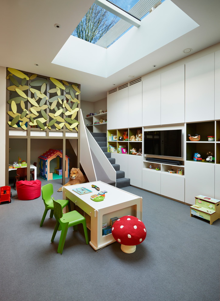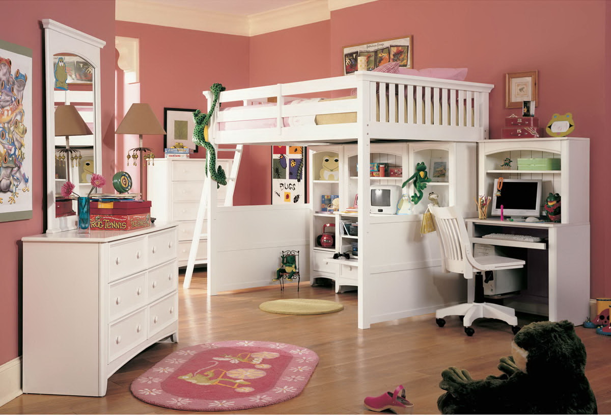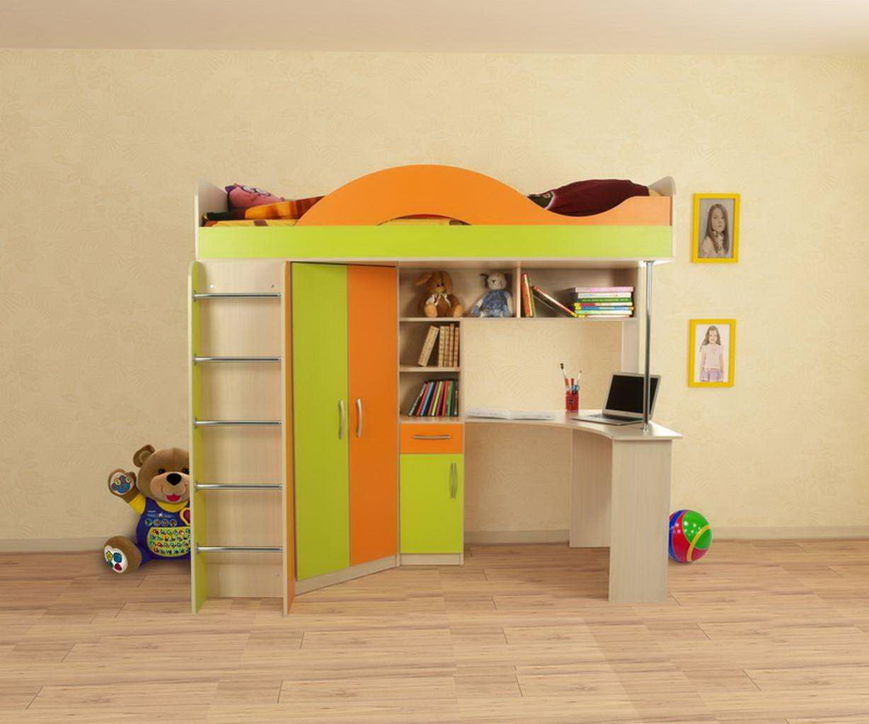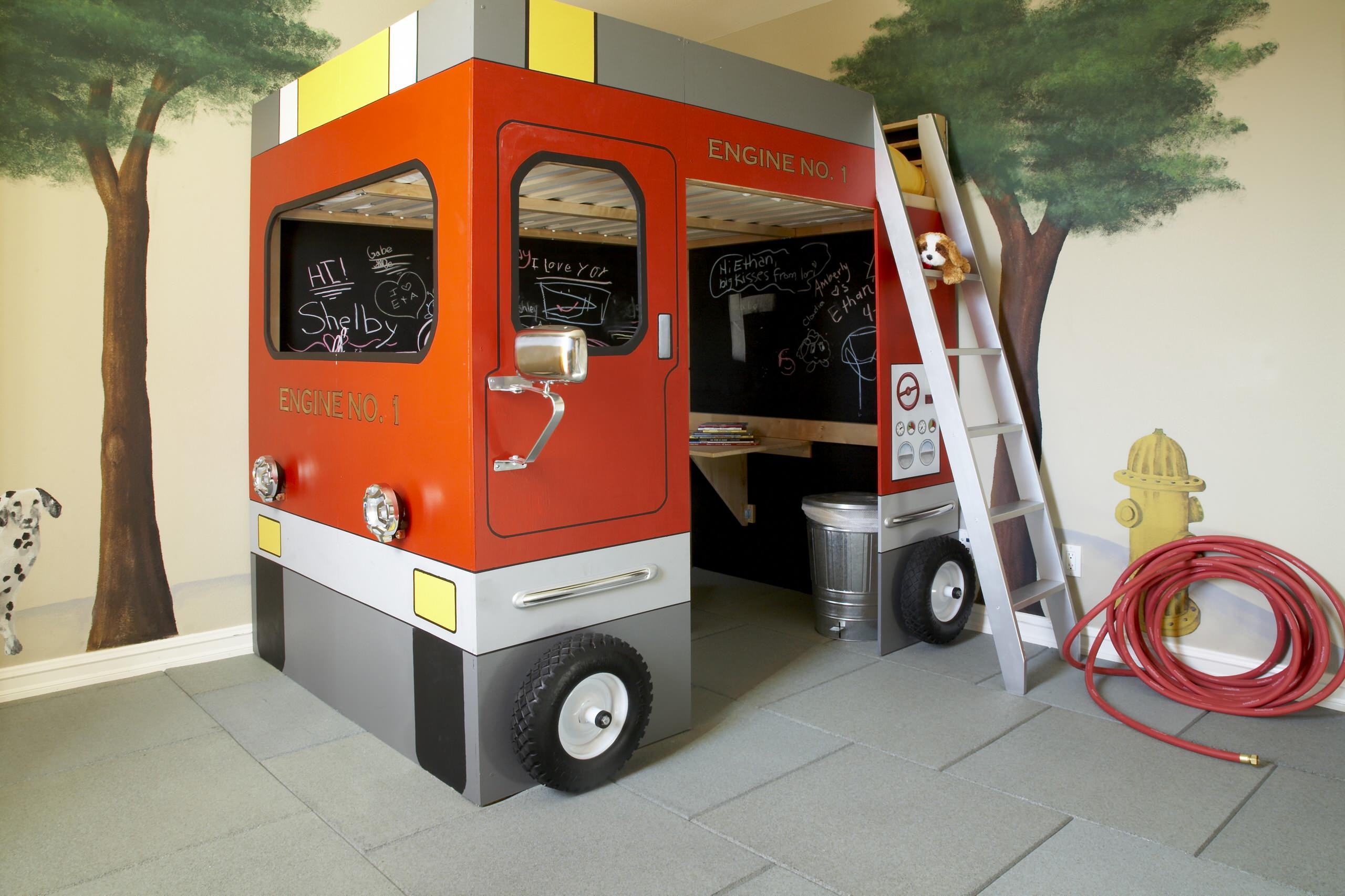 Mobiliário para crianças pode ter um design clássico ou uma forma estilizada na forma de um carro, um carro de bombeiros, uma locomotiva, um navio, uma cabana de pirata, um castelo ou uma casa. Para as meninas, as camas são feitas com uma cabeceira colorida feita de couro ecológico, tecido ou madeira esculpida.