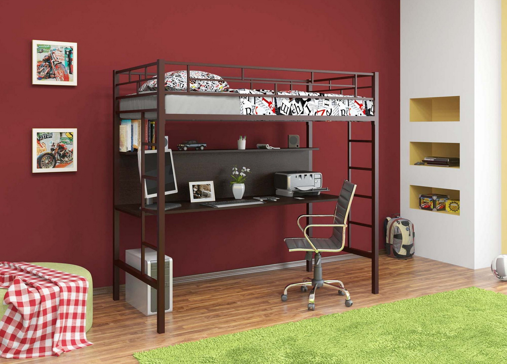 Este tipo de mobiliário certamente parece muito elegante. Além disso, a cama do sotão com uma área de trabalho é bastante espaçosa - ocupando um mínimo de espaço livre, podendo até substituir o mezanino.
