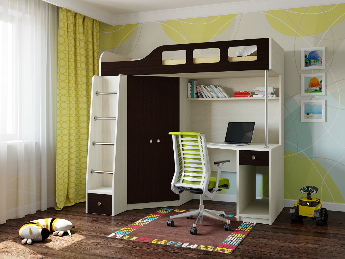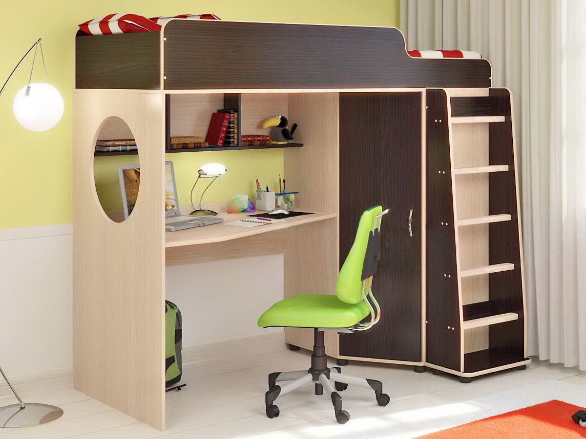 - vertical: localizado ao lado ou no final; considerados mais traumáticos, mas ocupam um mínimo de espaço; tal mobília é melhor comprar somente para estudantes mais velhos;
