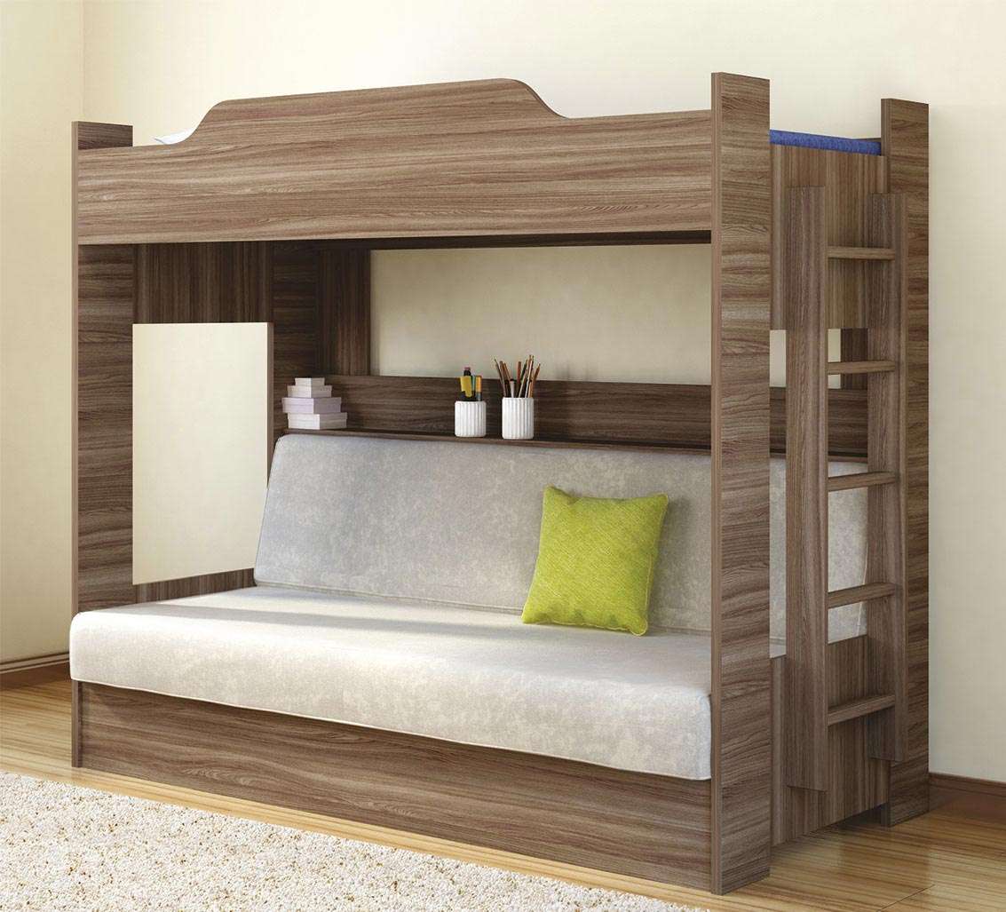 Esta versão de beliche é mais adequada para adolescentes ou adultos. Para a conveniência da aproximação, tais modelos são feitos altos, com uma escada no lado. Um sofá ou sofá pode ser imediatamente incluído no pacote ou espaço para instalação é deixado para eles, de modo que sob a camada superior você pode endireitar até a sua altura total.