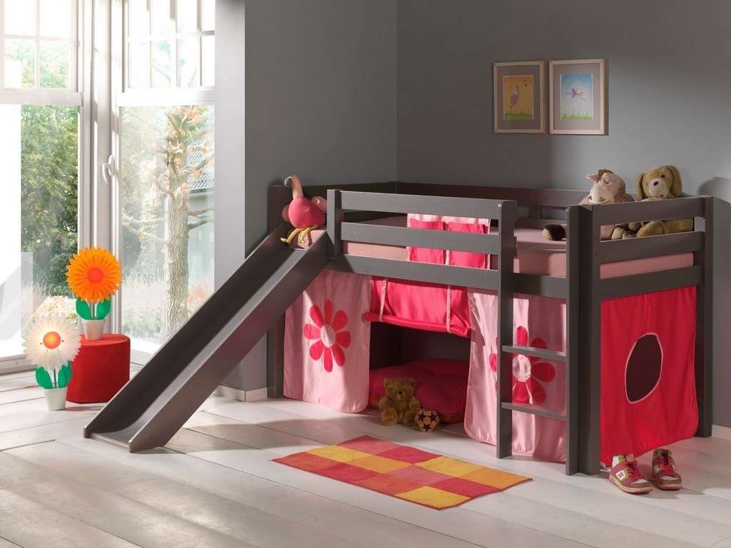 As opções com a colina equipada são populares - um sótão de cama neste caso torna-se o complexo "andando" inteiro. Interessante e modelos com paredes de escalada - neste caso, a função de entretenimento é combinada com esportes.