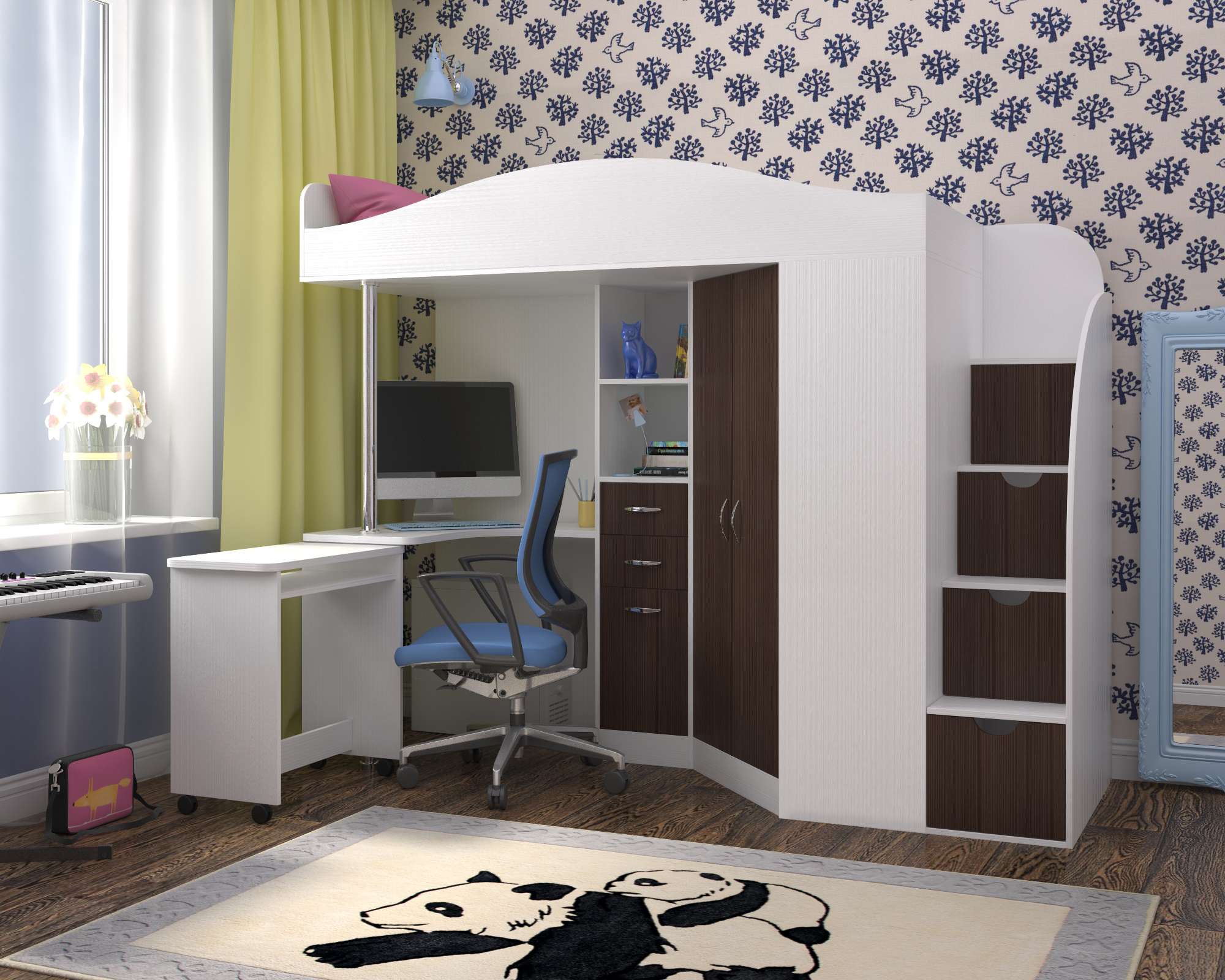 Diferenças entre mobiliário de loft adulto e infantil são apenas em tamanho e decoração. Projetos individuais ou duplos para adultos têm dimensões grandes, são mais duráveis e estão equipados com uma estrutura reforçada.