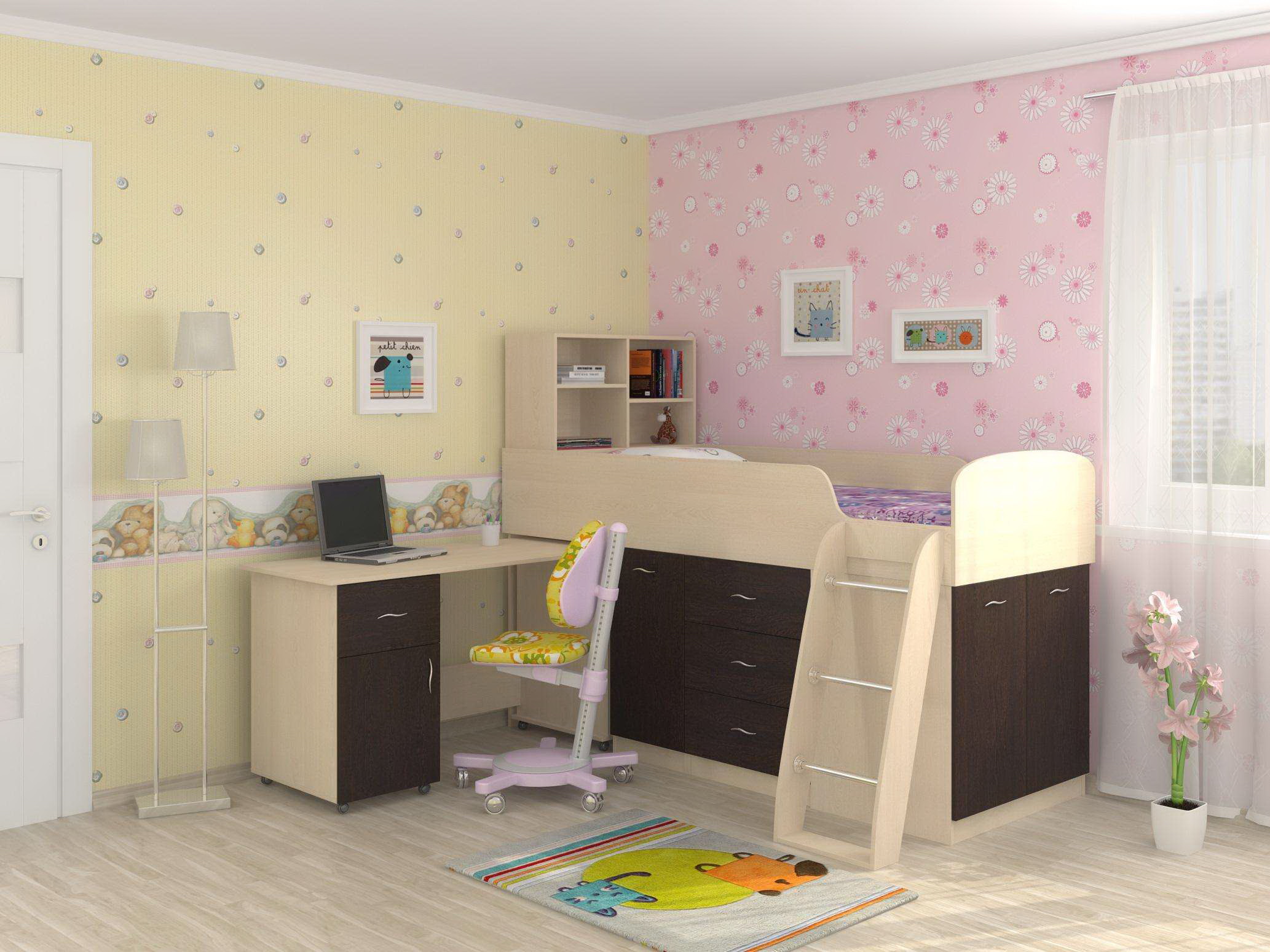 - permite que você divida racionalmente o espaço: em uma pequena área perto da parede, você pode equipar uma área de trabalho, uma zona de jogo ou um camarim espaçoso;