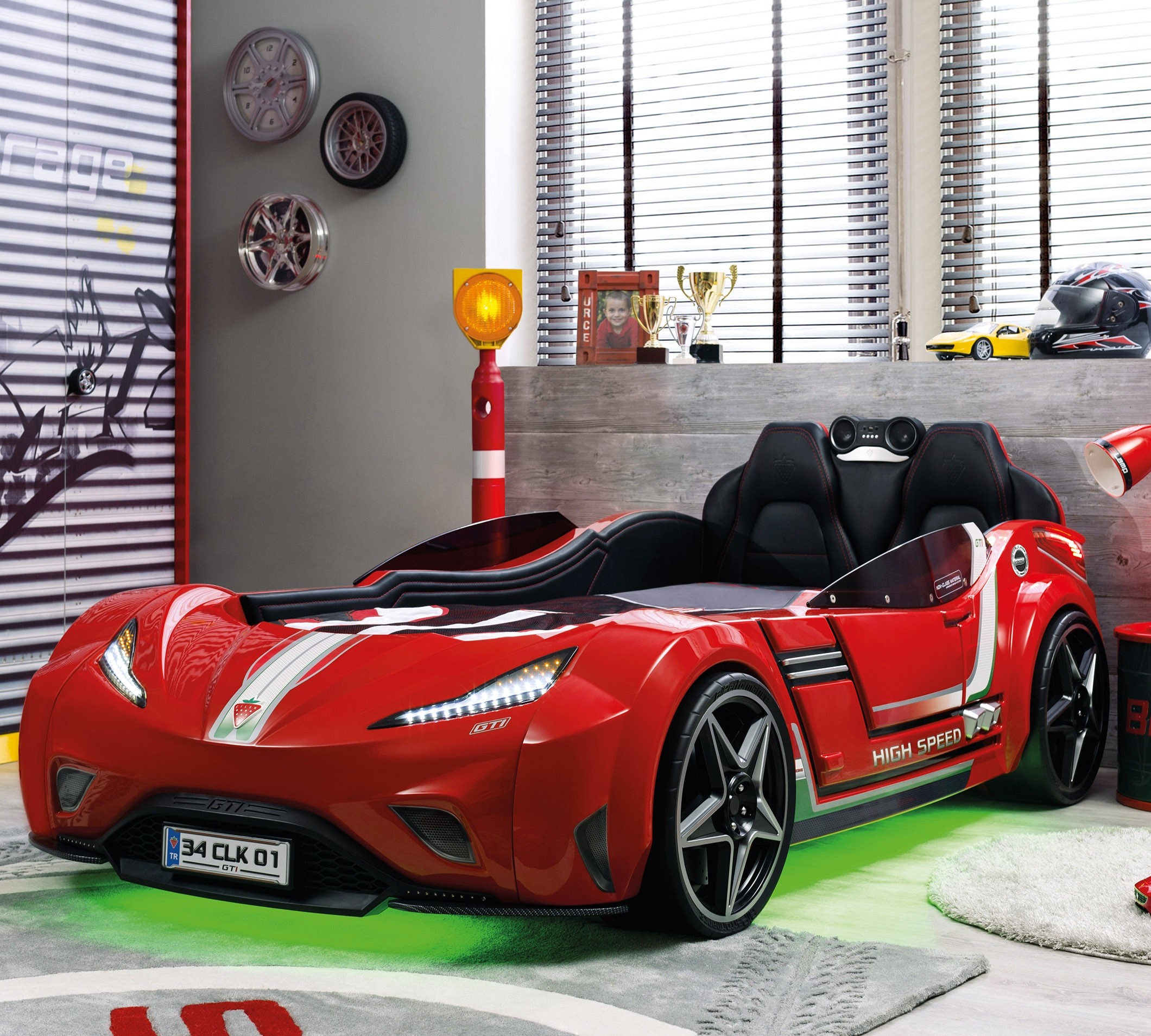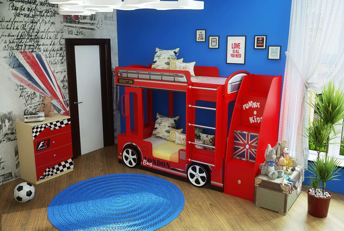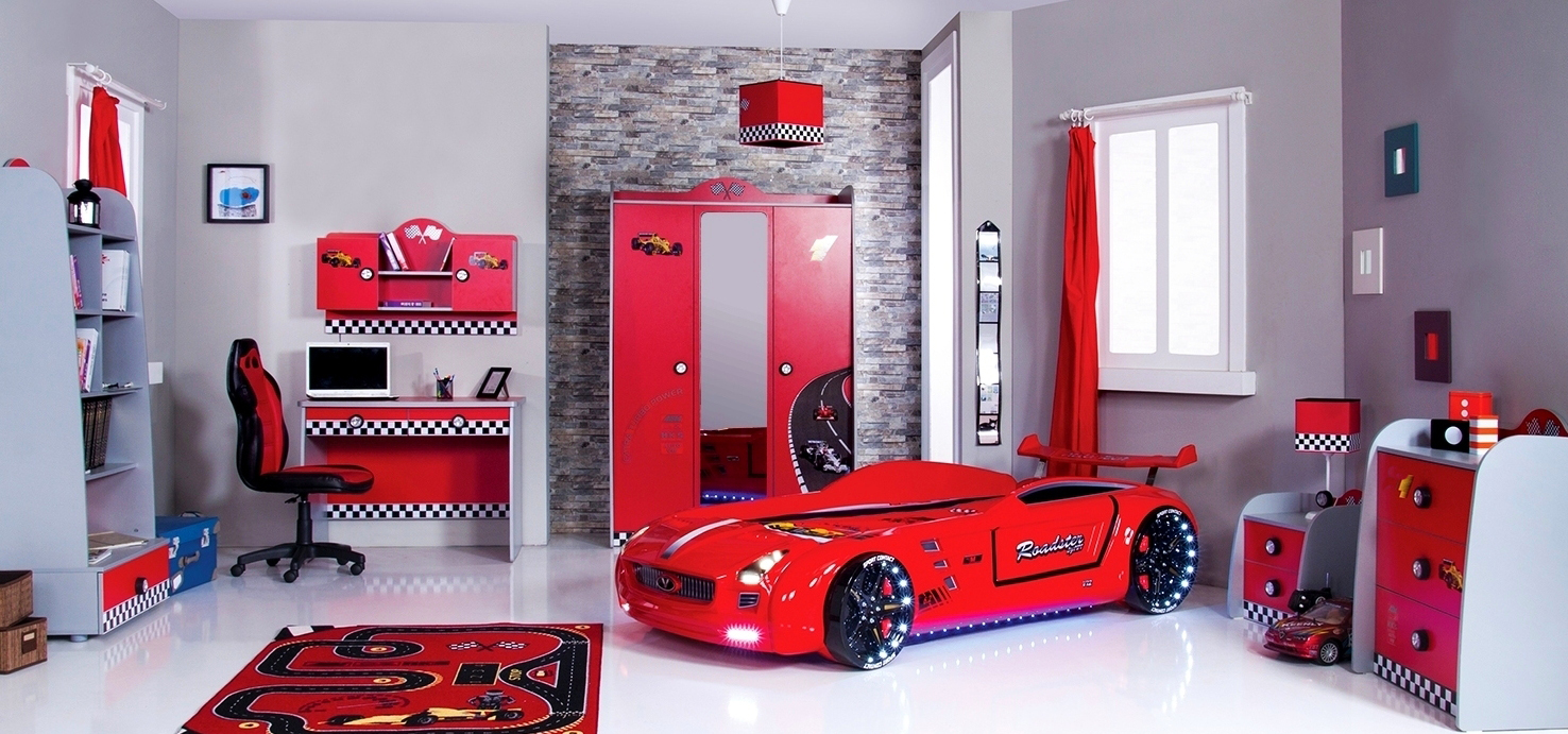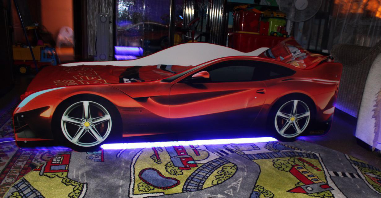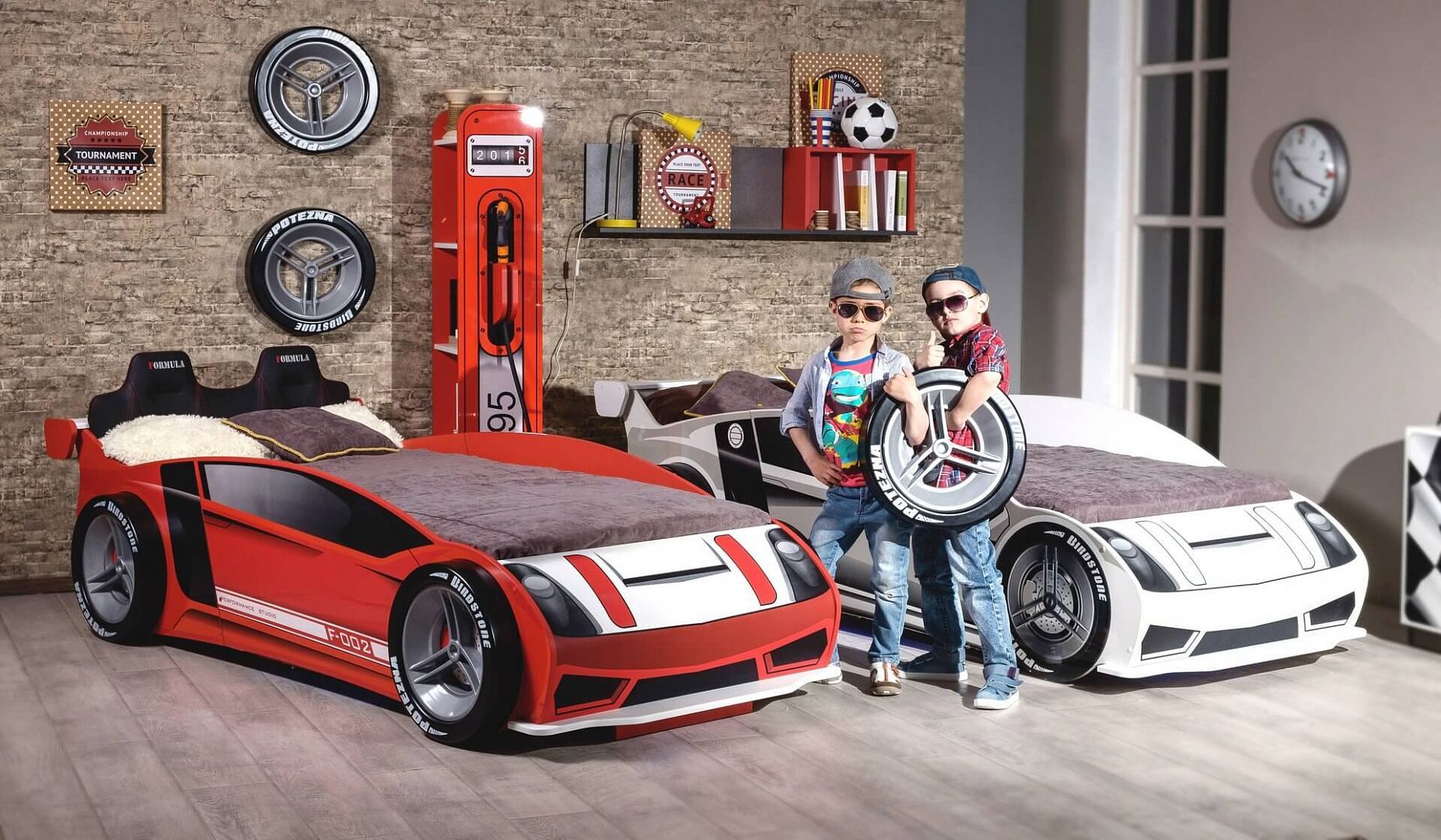A mobília em forma de carro é universal, caberá em qualquer estilo da sala. Além disso, vai dar um toque brilhante e interessante para o quartopor assim dizer, atualize a situação.