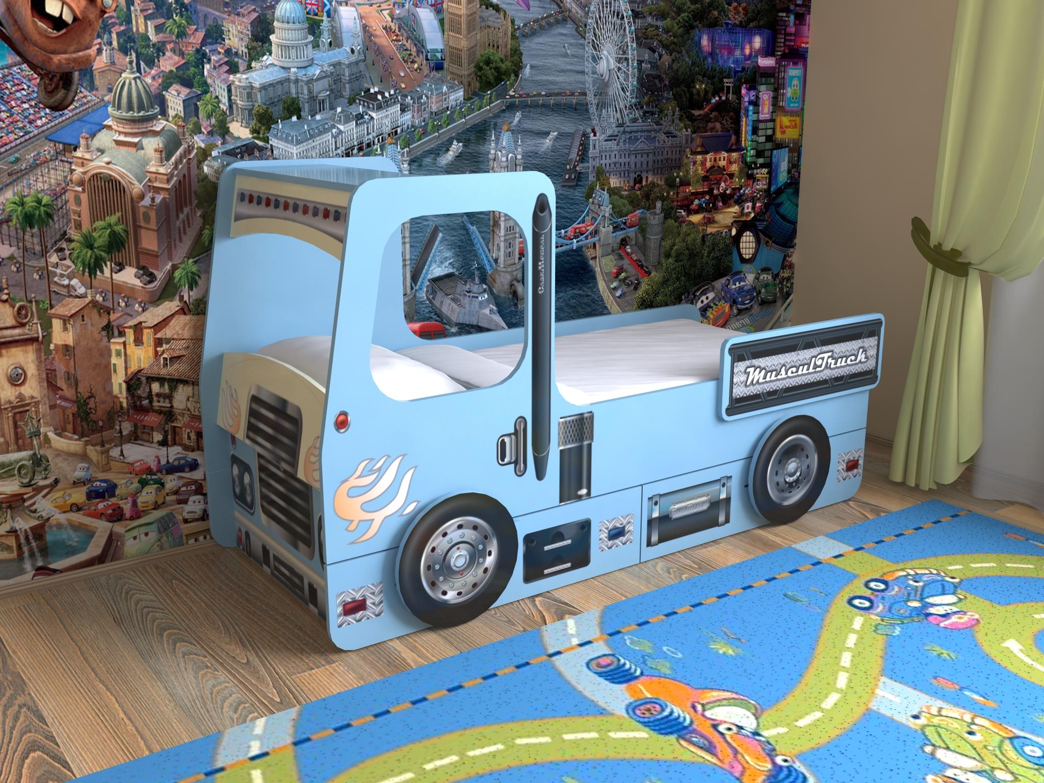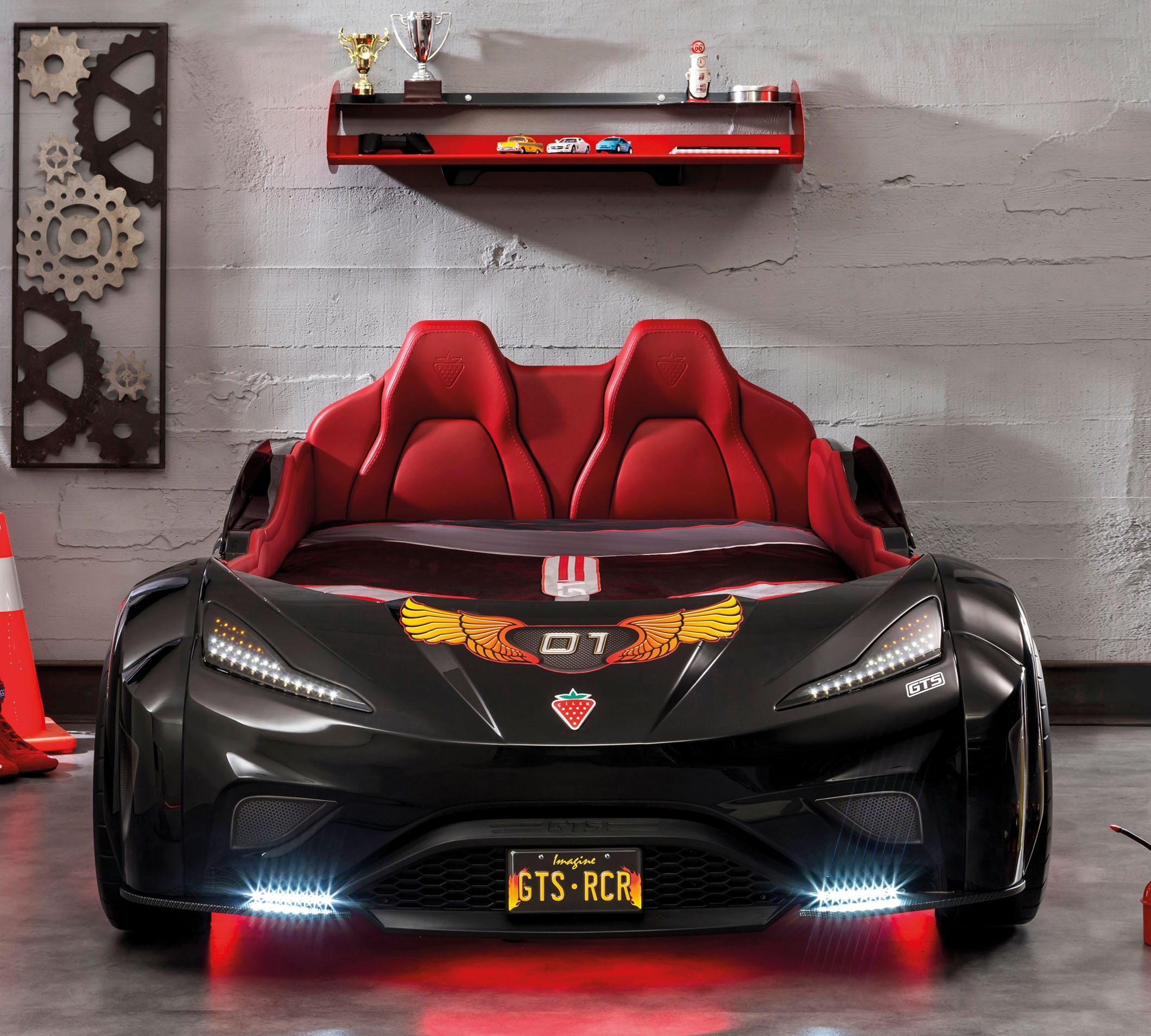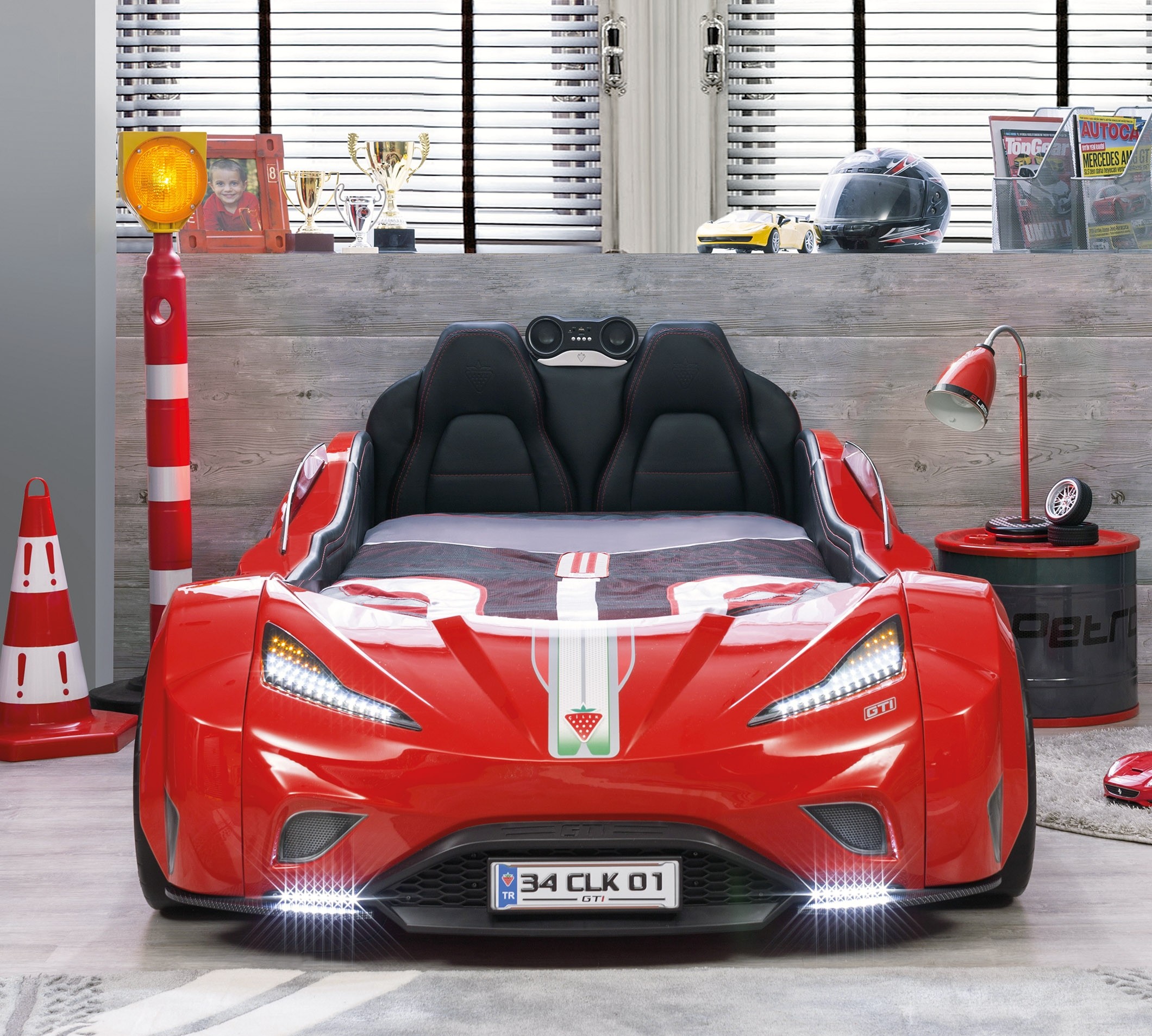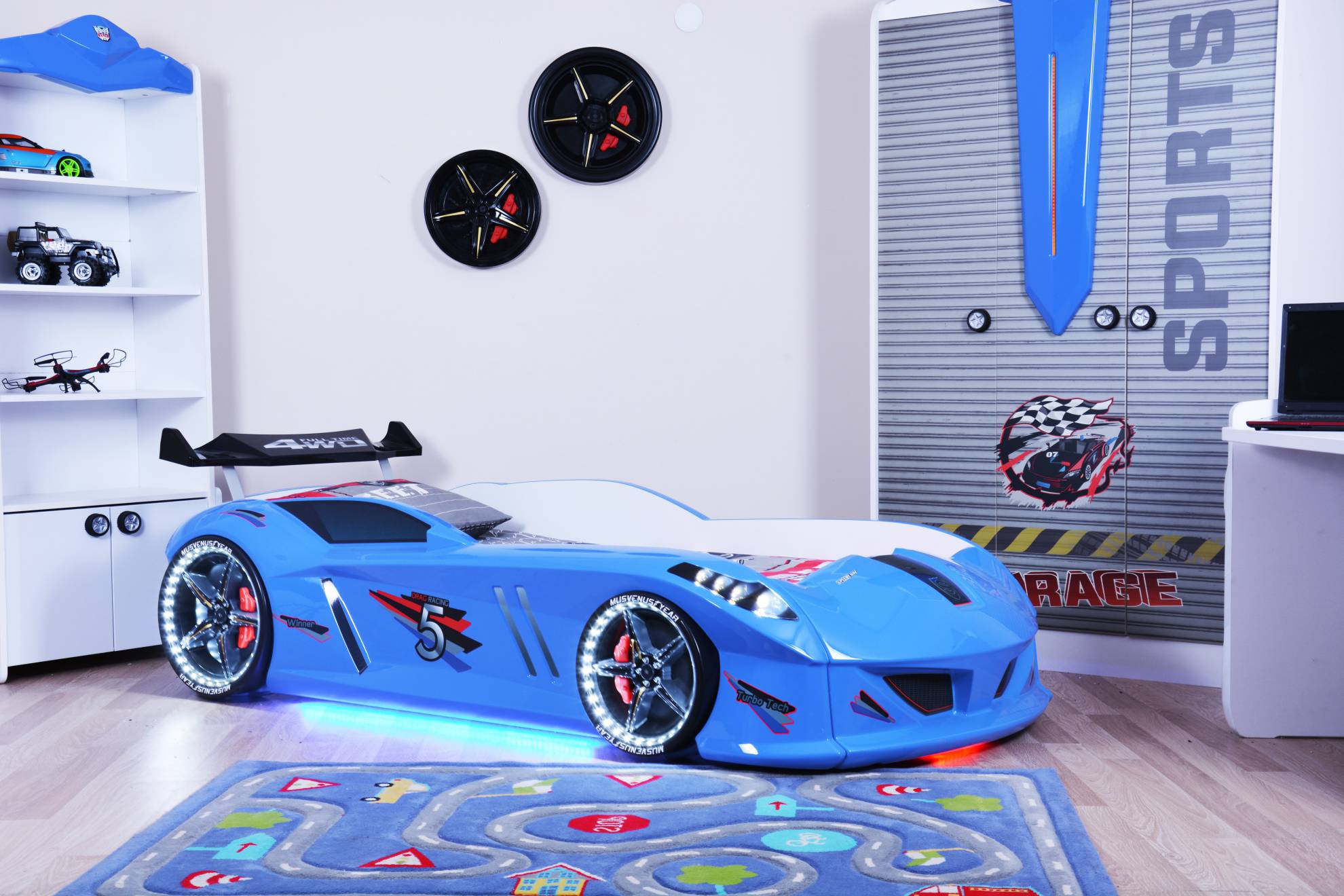 A mobília em forma de carro é universal, caberá em qualquer estilo da sala. Além disso, vai dar um toque brilhante e interessante para o quartopor assim dizer, atualize a situação.