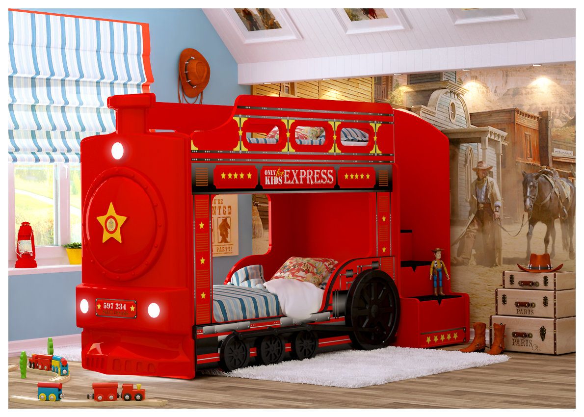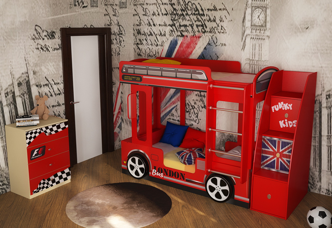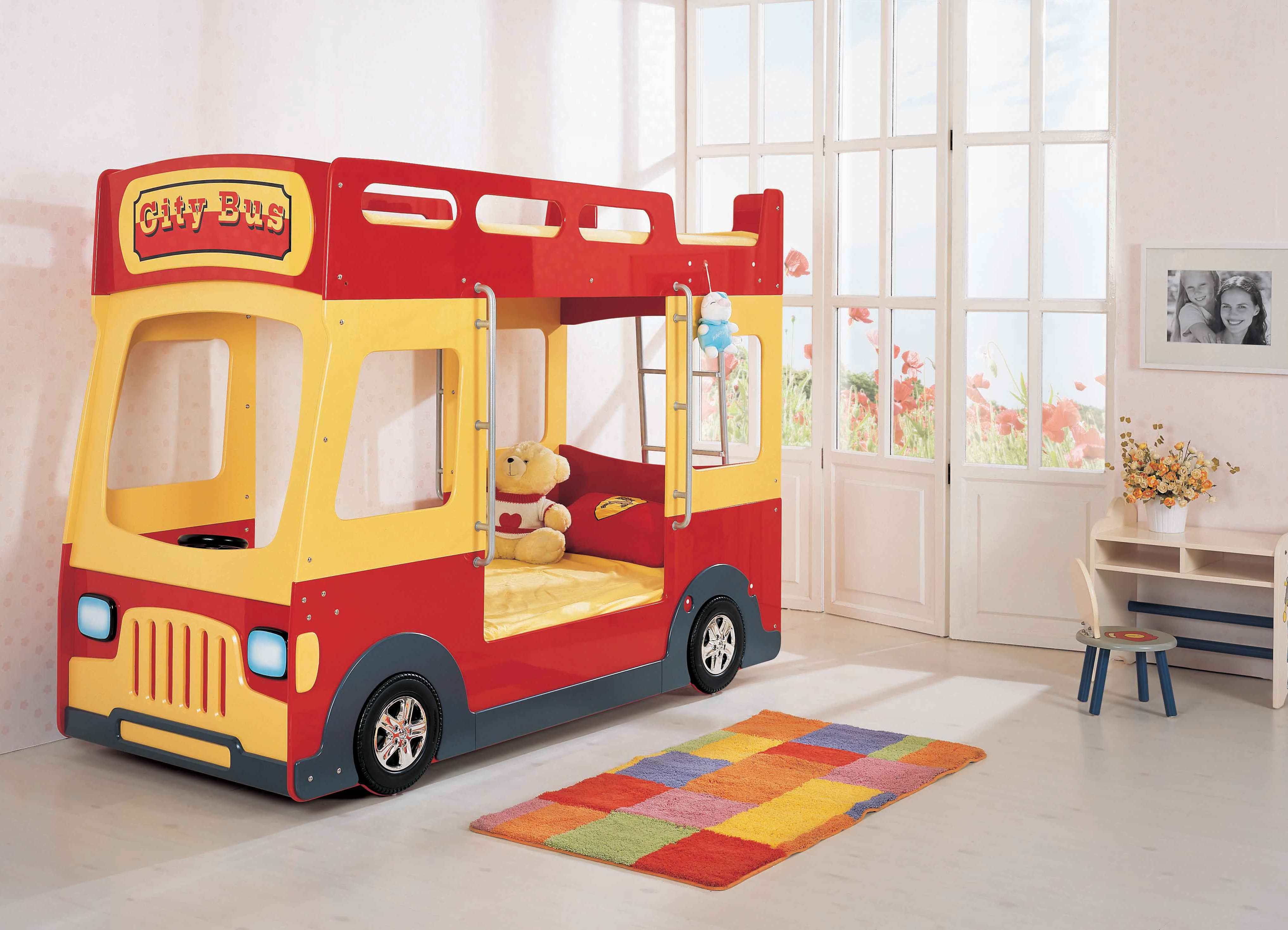 Se a família tem dois filhos com mais de 5 anos, você pode comprar beliches, na forma do mesmo ônibus ou outro carro. Adolescentes preferem cópias de carros reais. Por exemplo, Audi, Mercedes. Você pode agradar o bebê com uma máquina como no desenho animado "Carros".