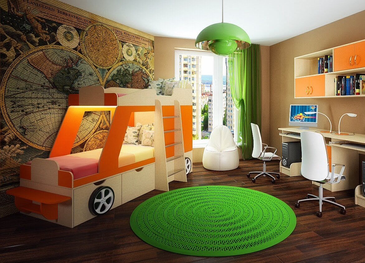 Design bem sucedido será, se você por favor o bebê e pegar um modelo de sucesso da máquina. Além da própria cama-máquina, a sala deve ter outros itens, detalhes, estilizados para este modelo. Por exemplo, uma imagem, desenhos ou brinquedos, quando a configuração é concluída sobre o mesmo assunto, a meta será alcançada.