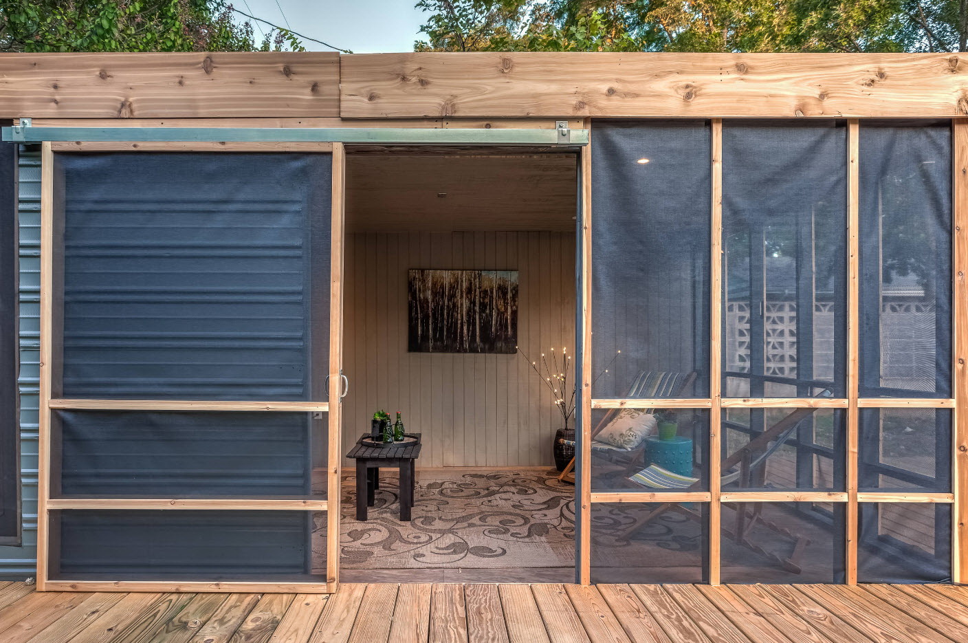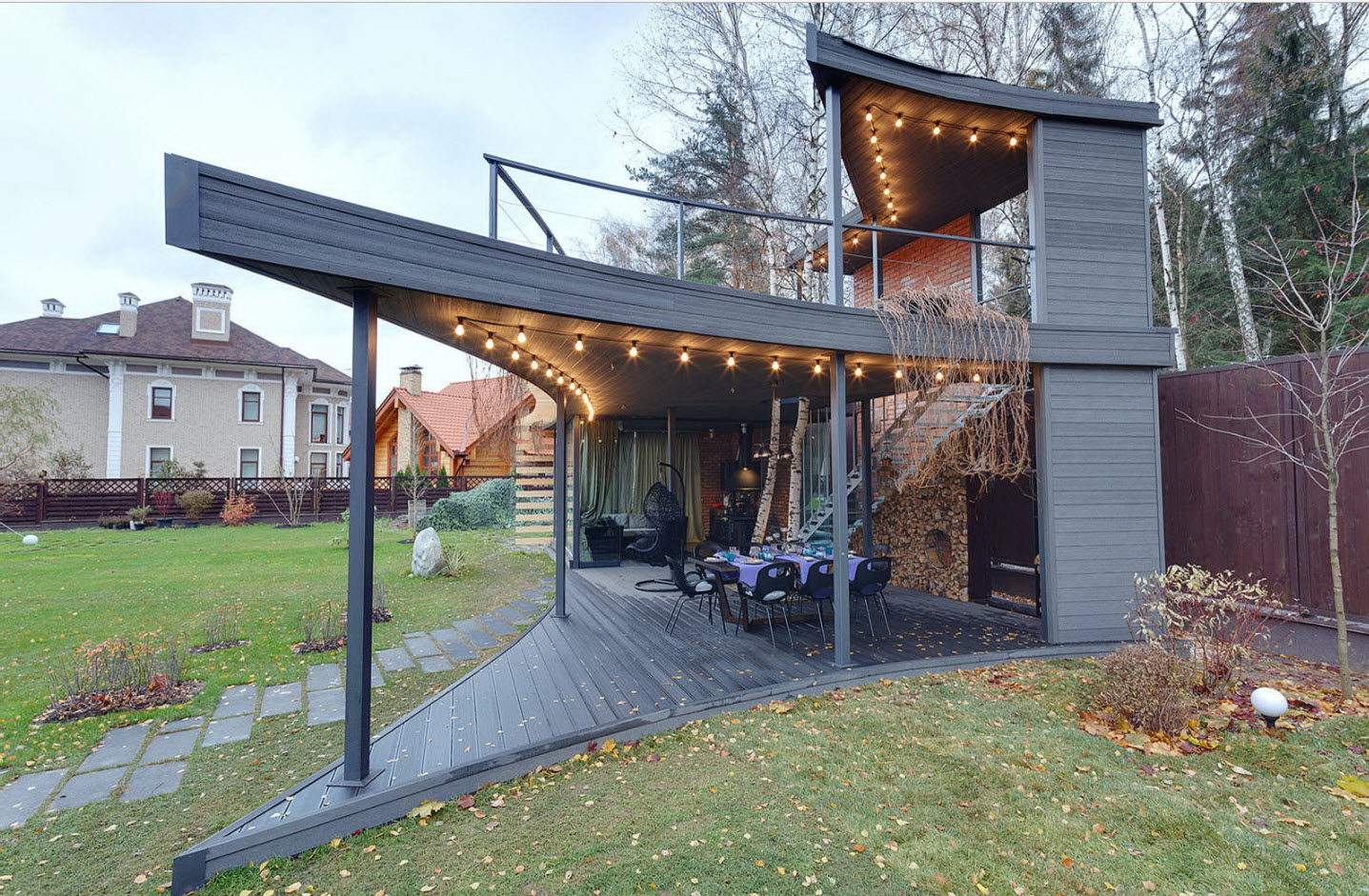 - O inverno é uma época de milagres, então porque não decorar a extensão guirlandas, lanternas, outros detalhes brilhantes.