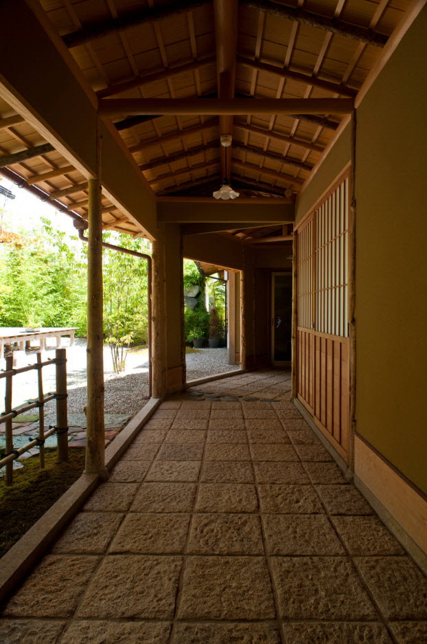 Características distintivas - a presença de formas corretas, linhas contidas. A extensão tem a aparência de uma pequena construção discreta, para o revestimento de pedras naturais e cerâmicas. Para decoração de figuras usadas, vasos de flores.