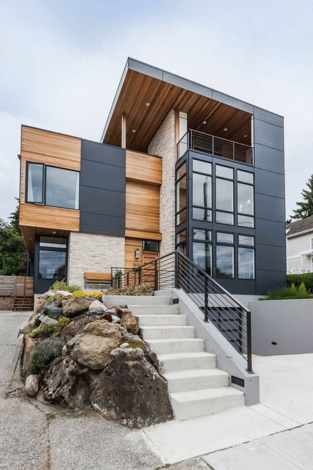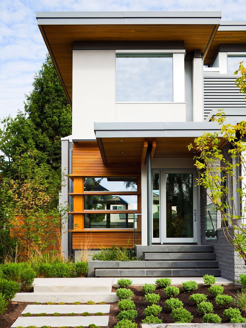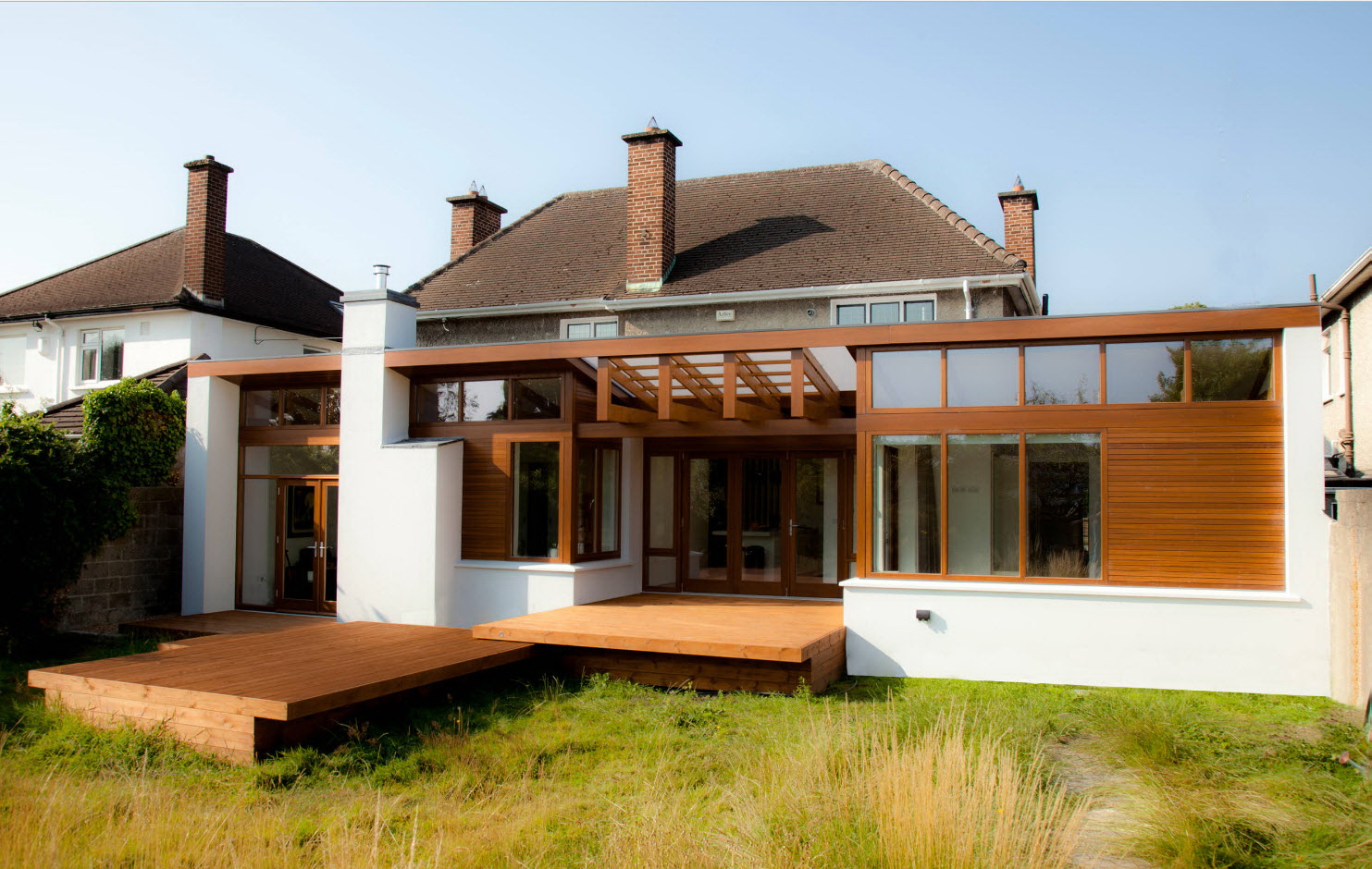Para os fãs de decisões corajosas, como a combinação de uma extensão de madeira e tijolo/ pedra fachada - adequado se a casa tem qualquer elemento de madeira - persianas, varanda.